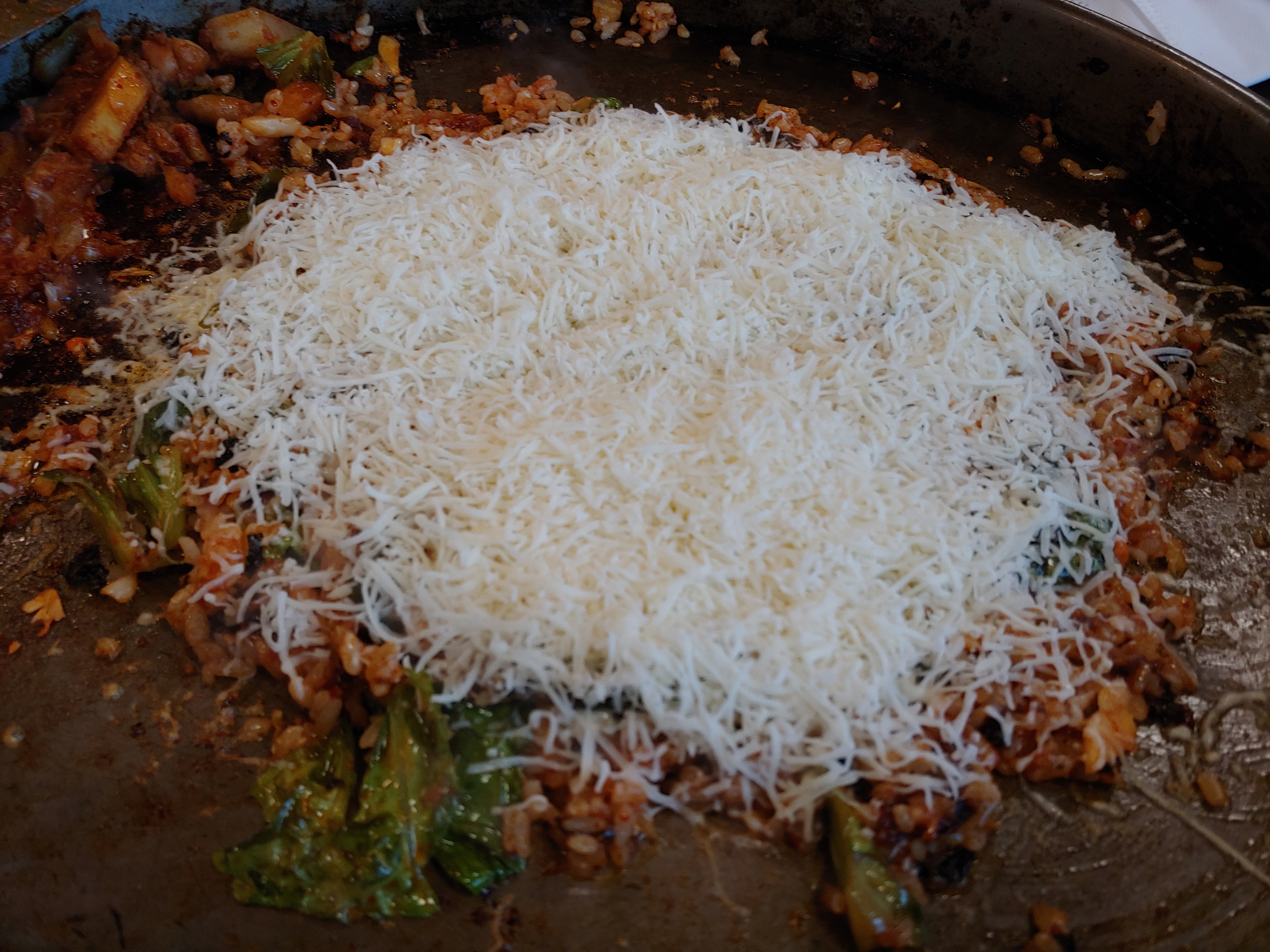 1인분 볶음밥(2,000원)에 치즈(3,000원)를 주문했는데, 볶음밥 위에 눈송이 같은 치즈를 뿌려줍니다.