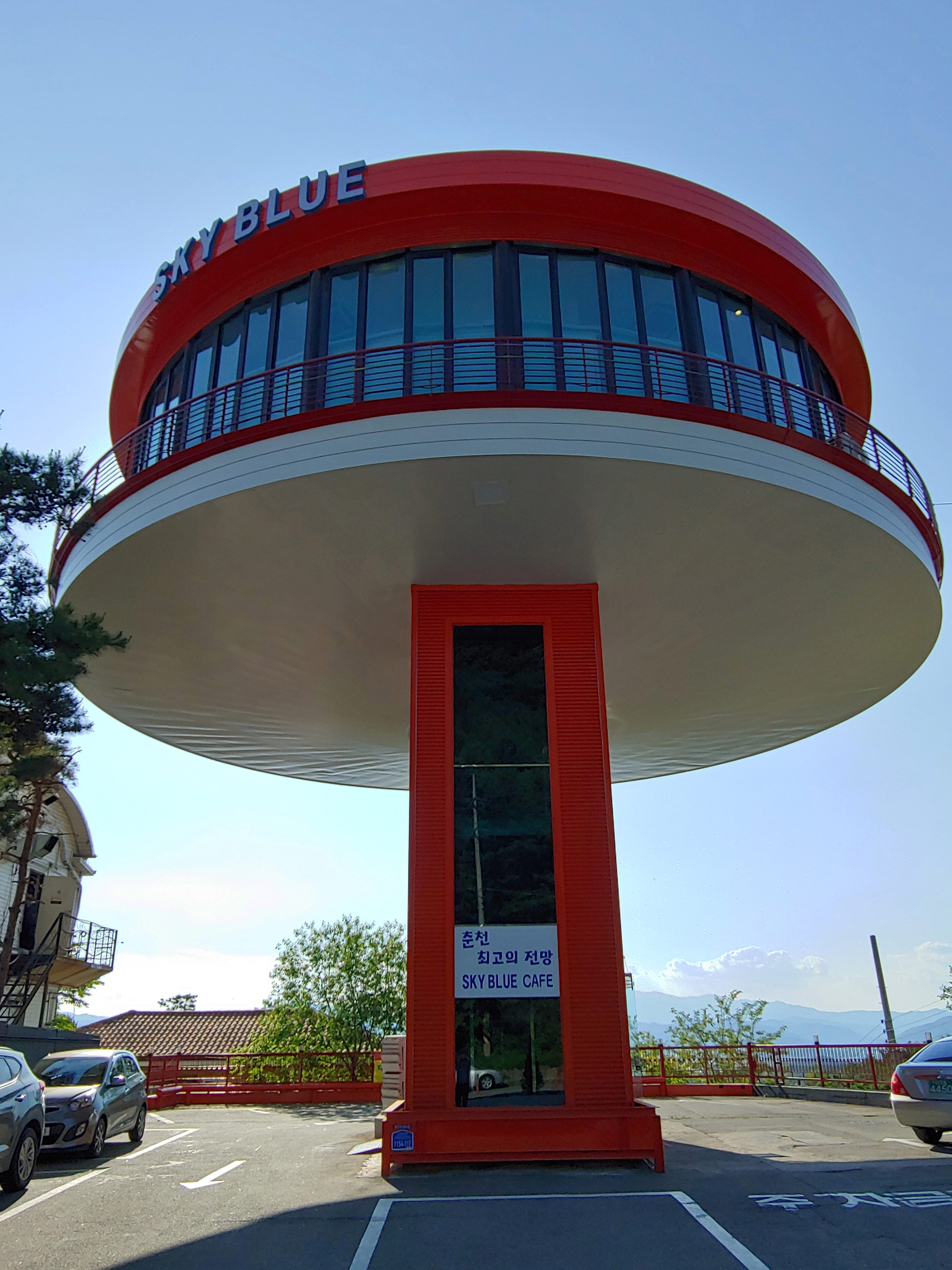 복층으로 되어 있고, 원형의 건물로 창가 쪽에 테이블이 놓여 있어서 전망을 보며 차를 마실 수 있습니다.