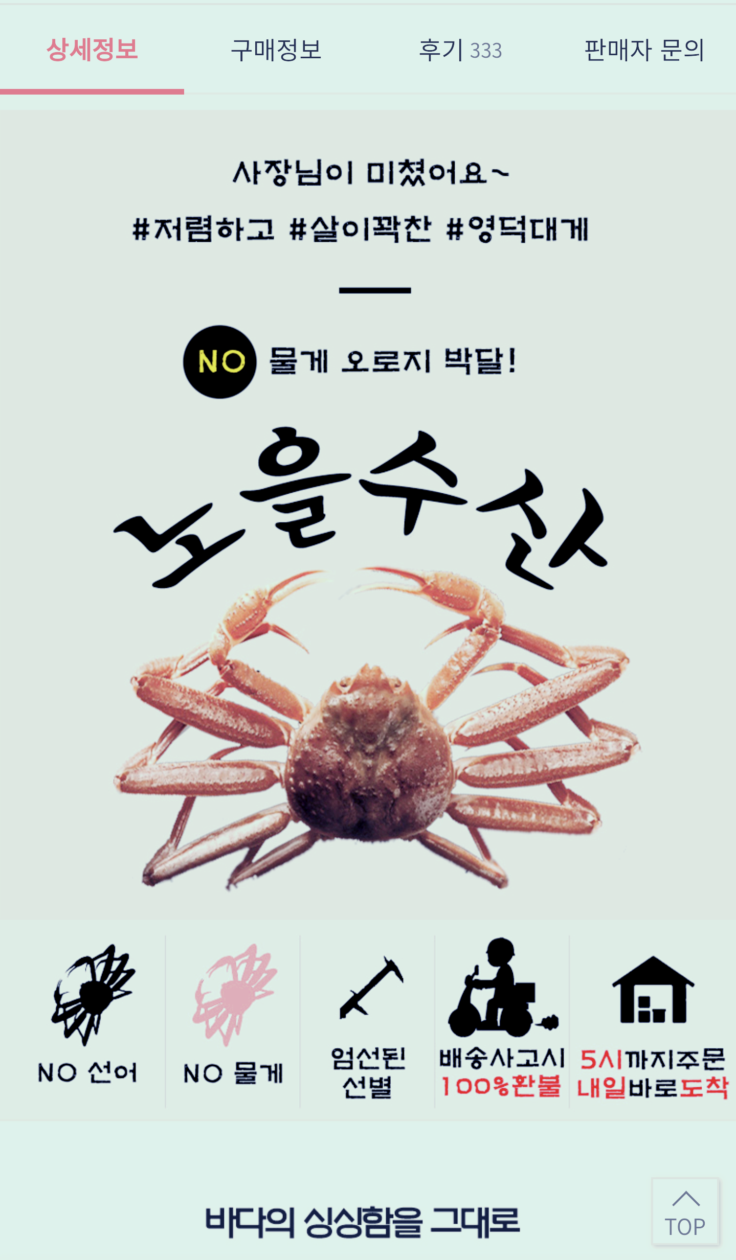 저렴하고 살이 꽉 찬 영덕대게 전문점이라고 홍보하는 업체네요.