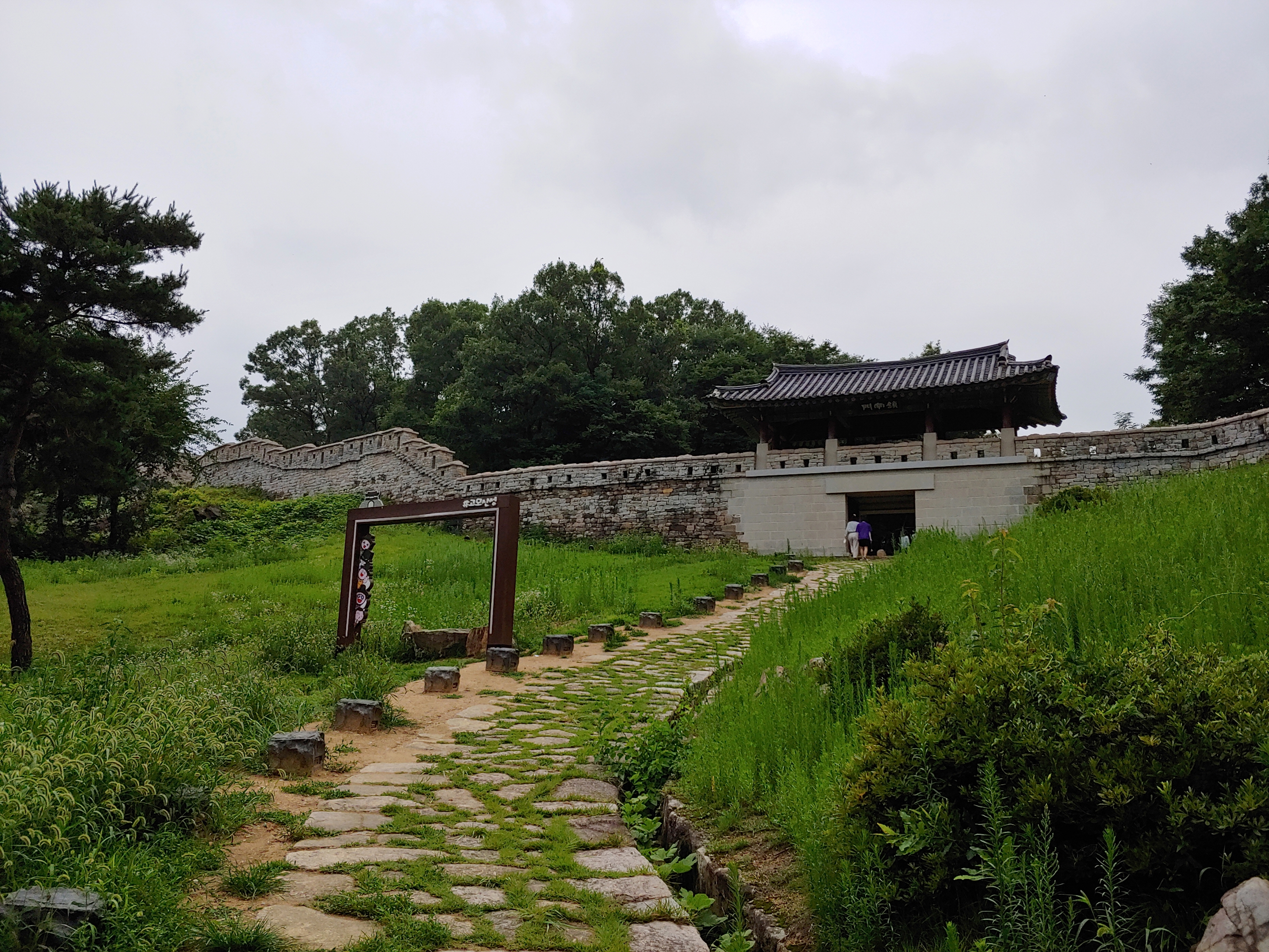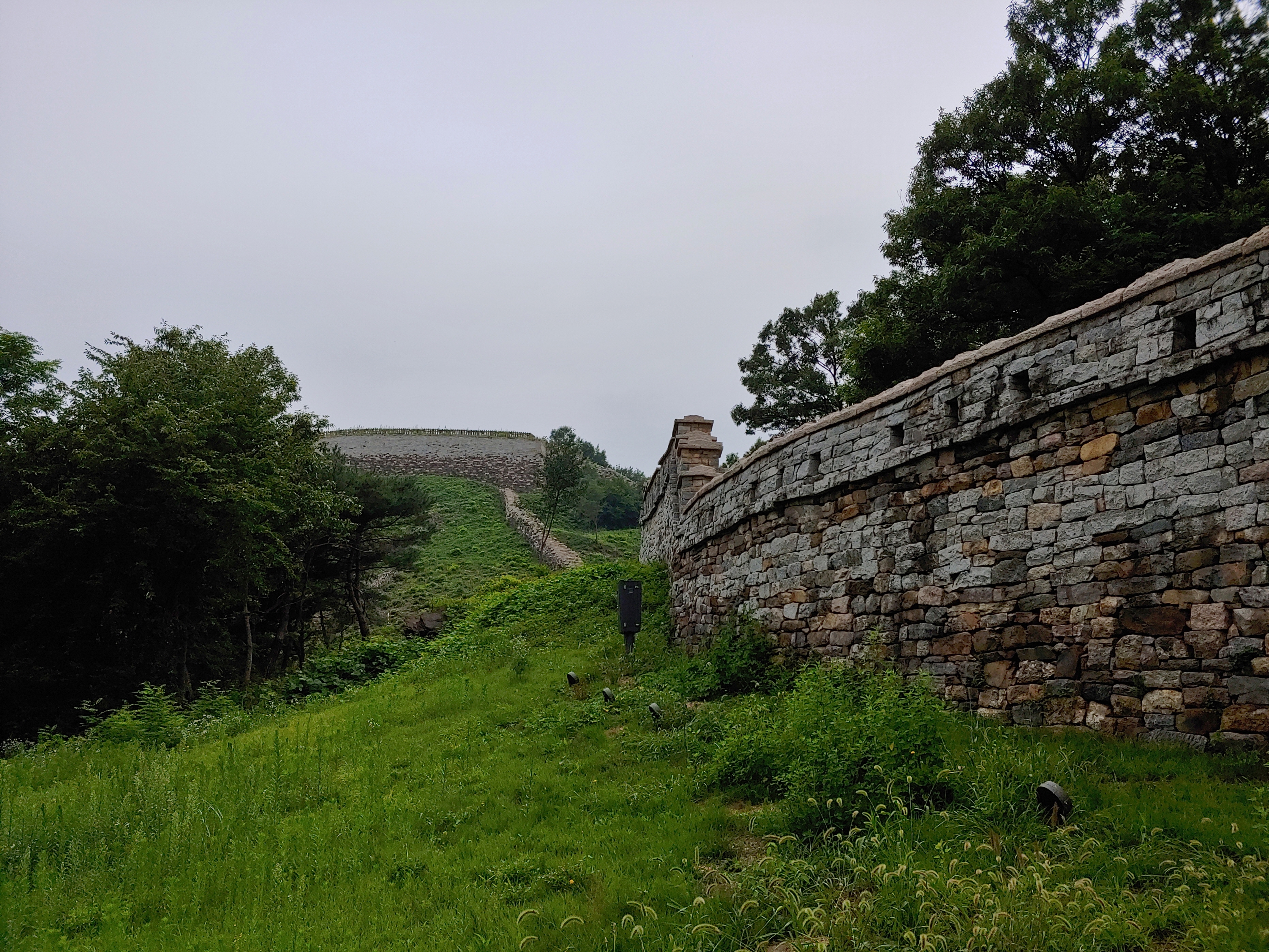성벽을 따라 올라가야 합니다.