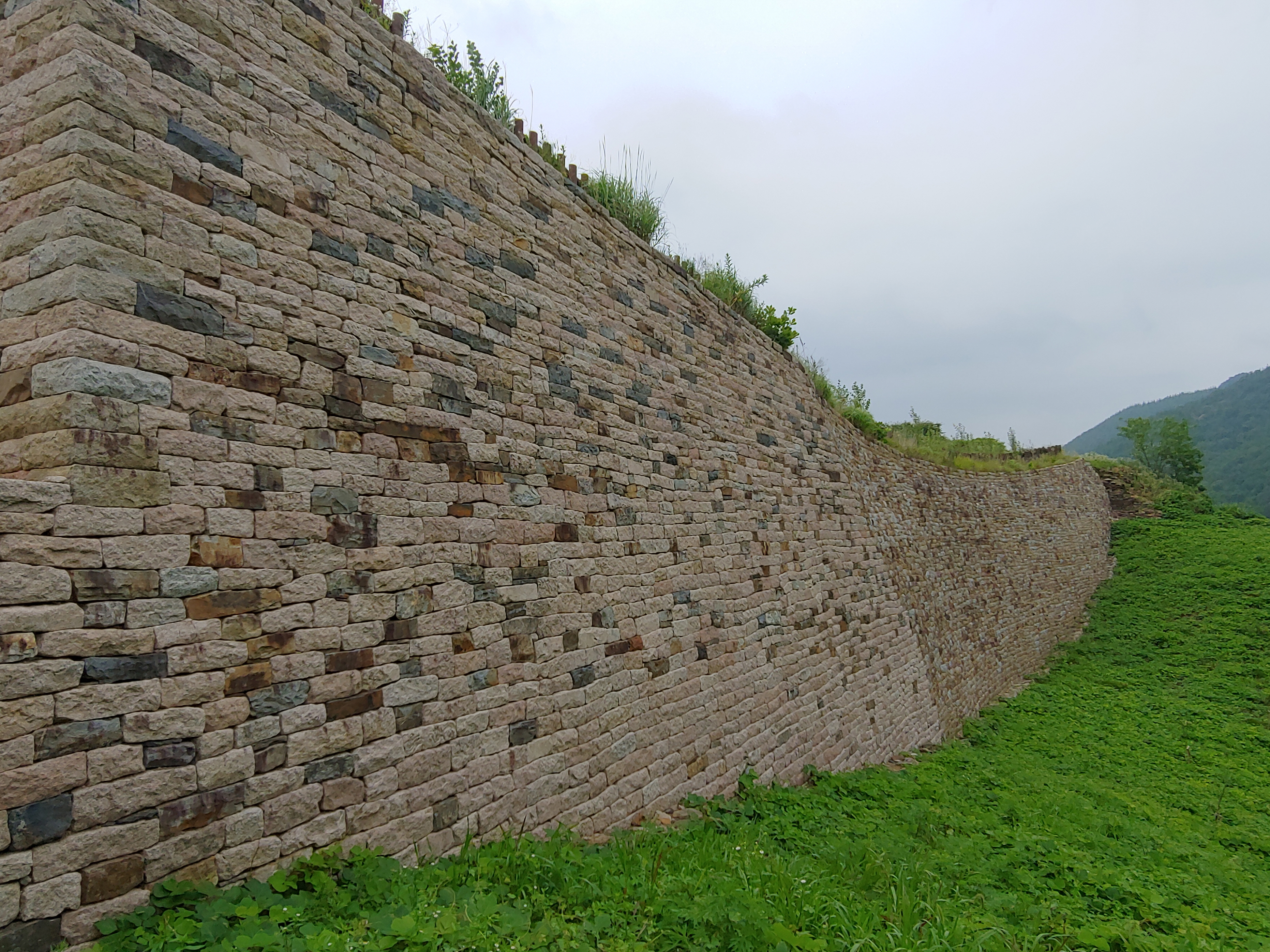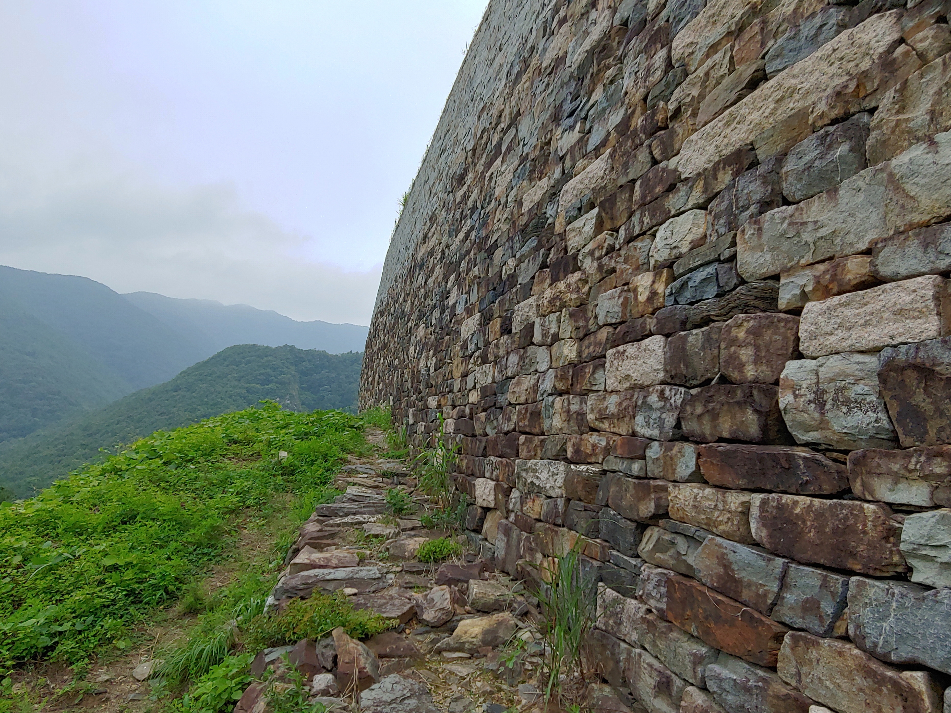 엄청나게 많은 돌로 쌓은 석성 모습