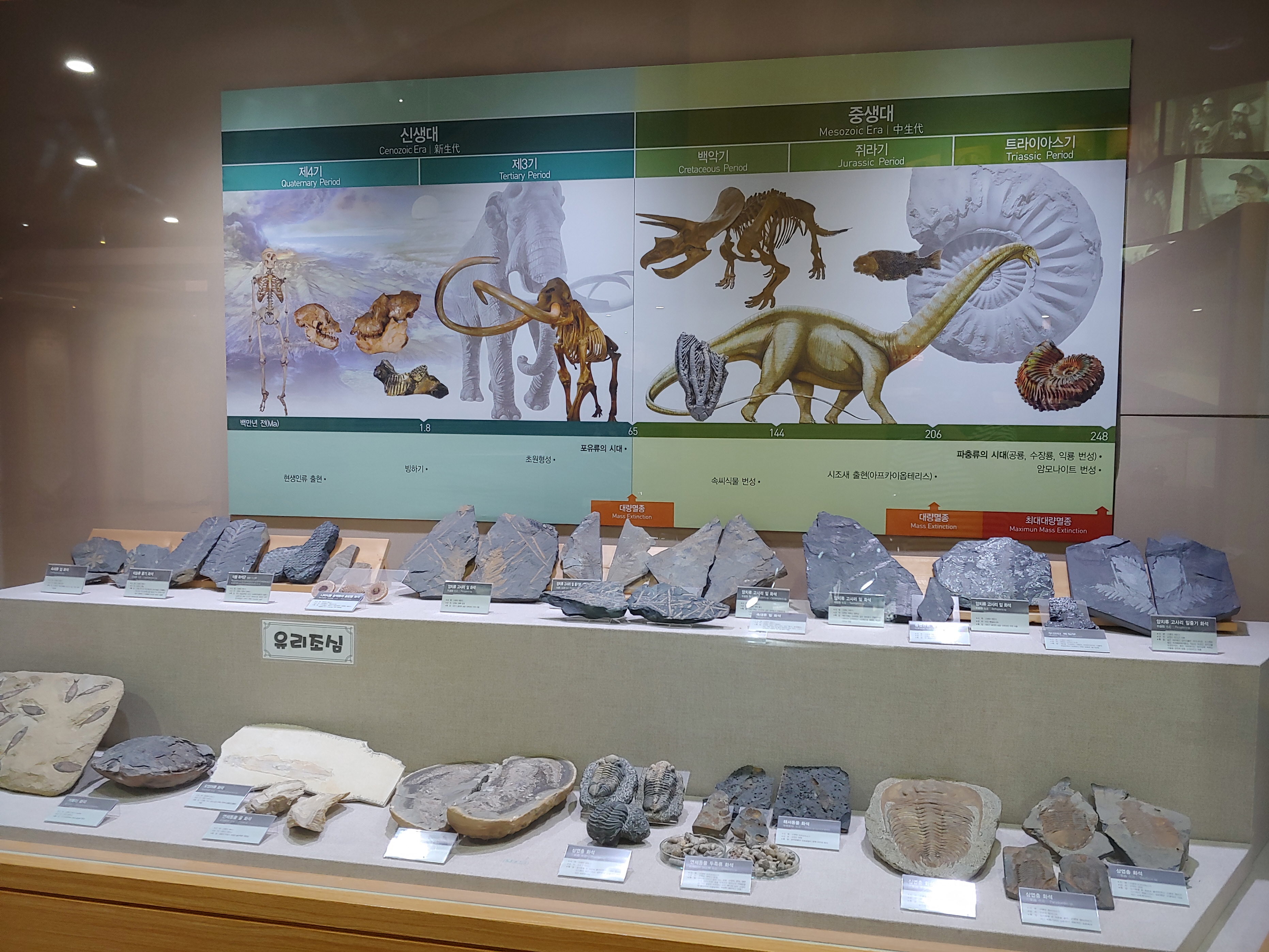 무생대부터 시생대, 원생대를 거쳐 고생대에 이르는 돌들을 전시하고 있는 모습