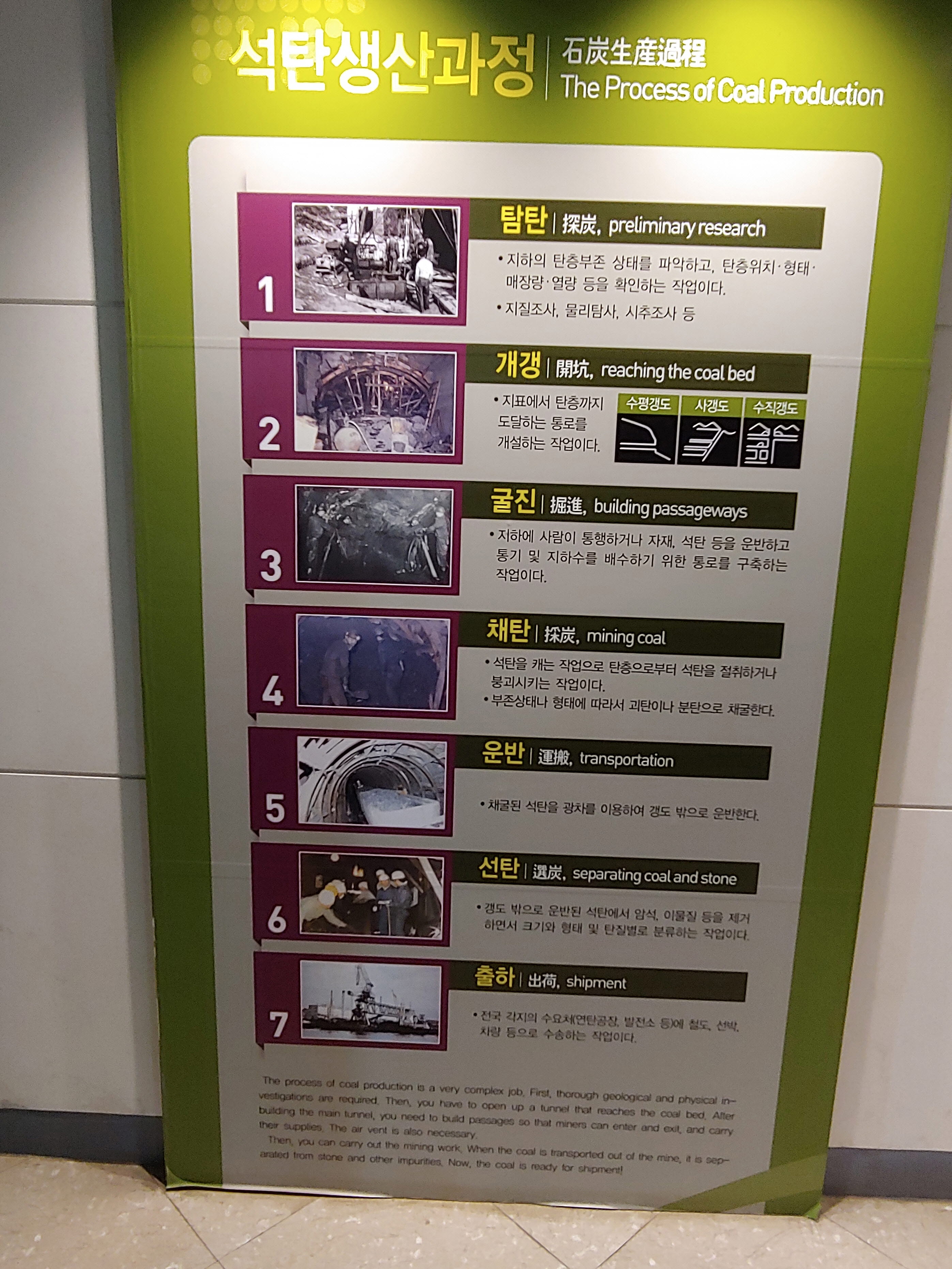 1963년에 뚫은 이 갱도는 1994년까지 사용했고, 광부들은 하루 3번(갑방, 을방, 병방) 번갈아 드나들면서 석탄을 캐내고 선탄장으로 운반했습니다.