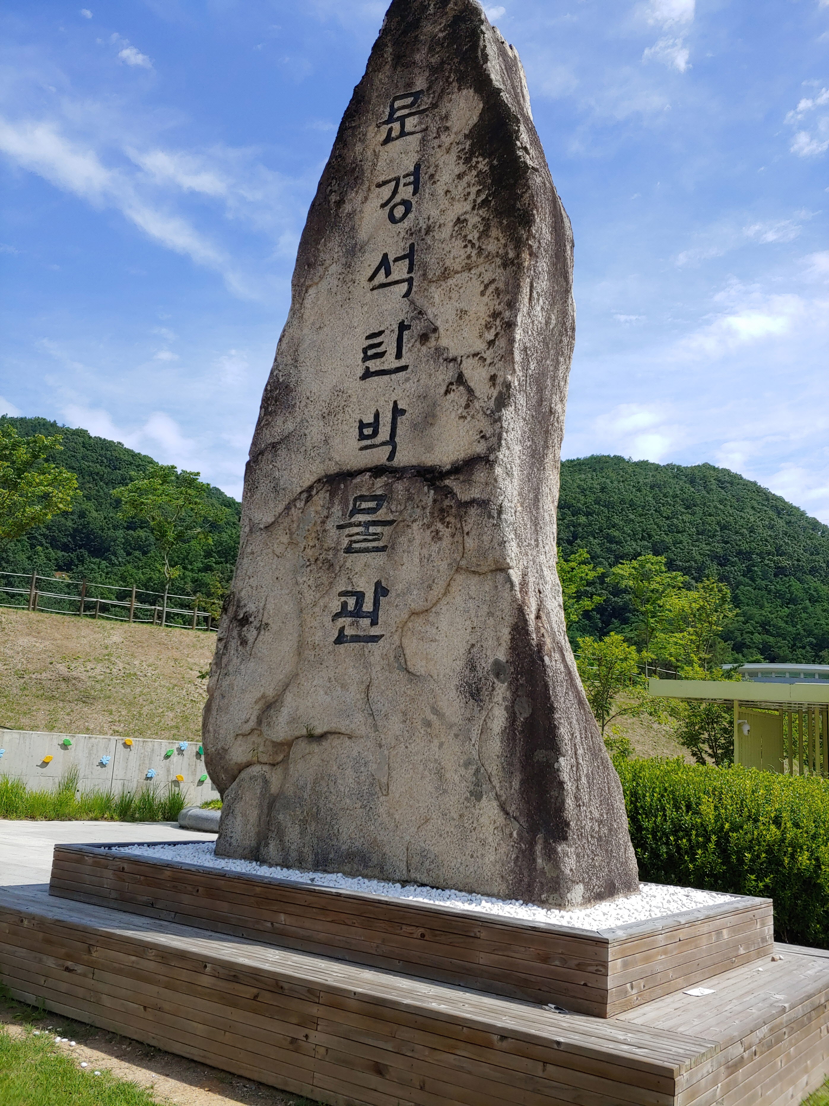 문경 에코월드(에코랄라) 입구에 세워져 있는 대형 돌로 만든 입석표지판입니다.