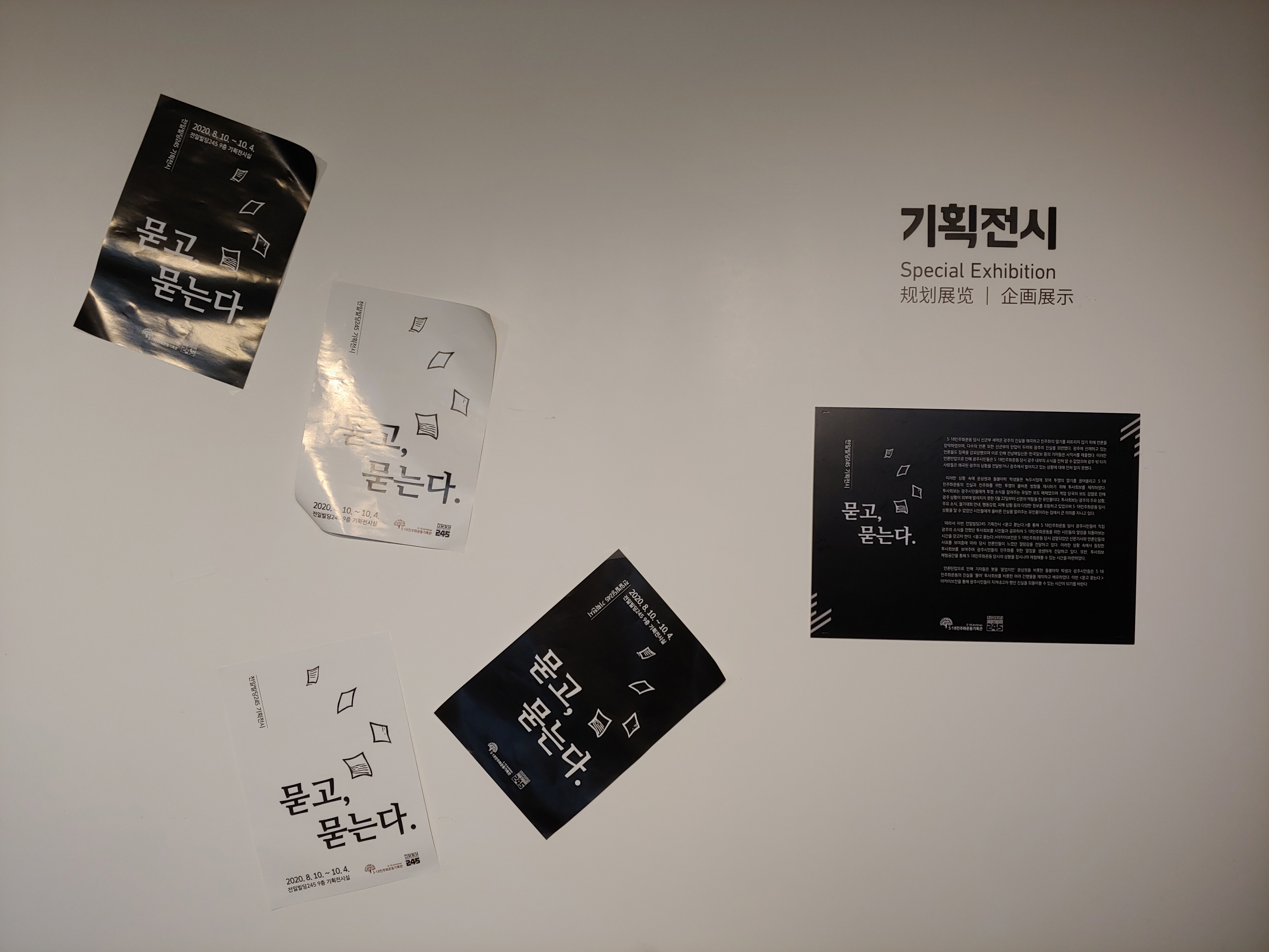 이어서 전일빌딩 245 기획전시로 "묻고 묻는다"가 10월 4일까지 전시되고 있습니다.