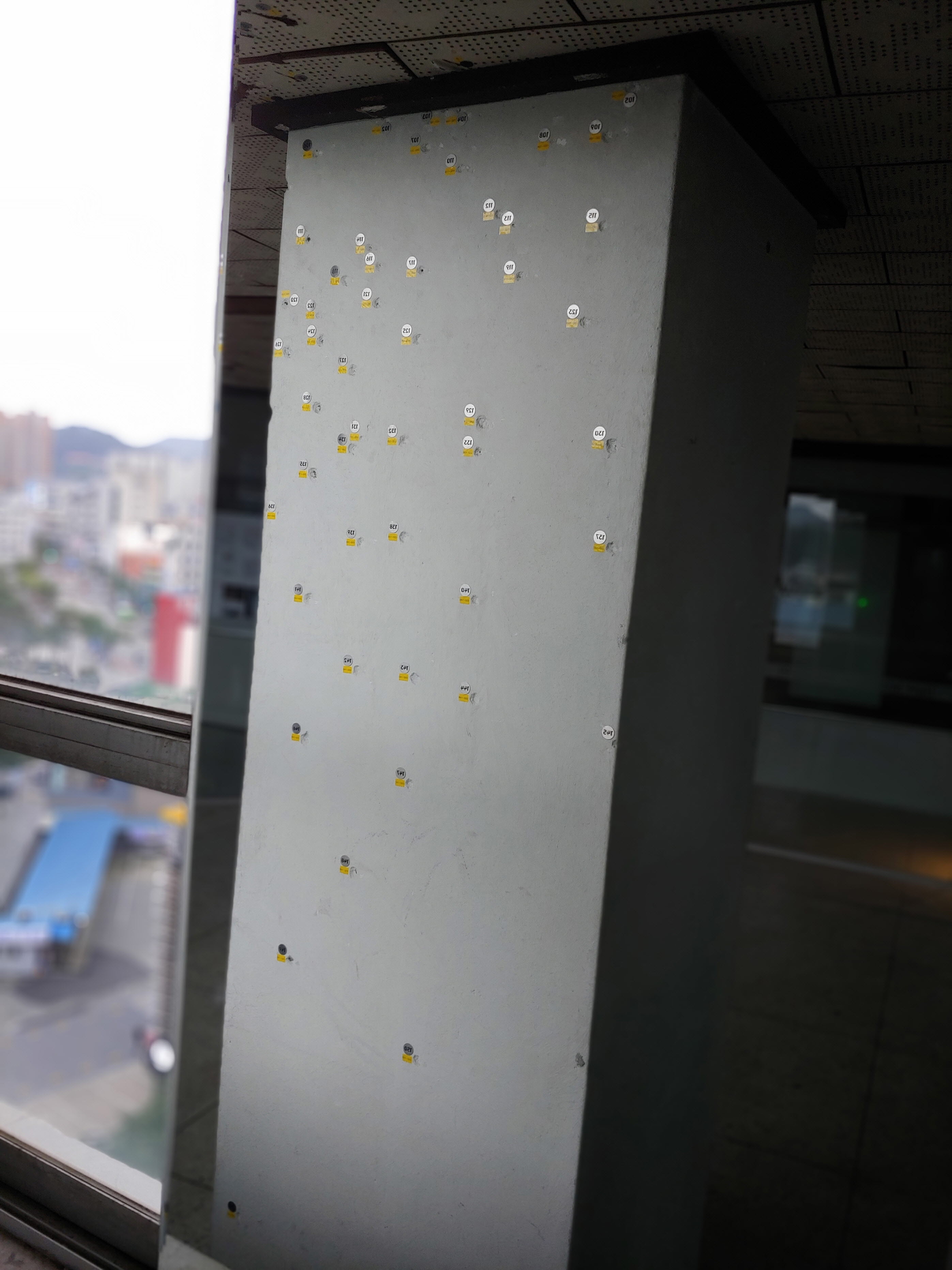 기둥에 박힌 헬기총탄의 흔적들