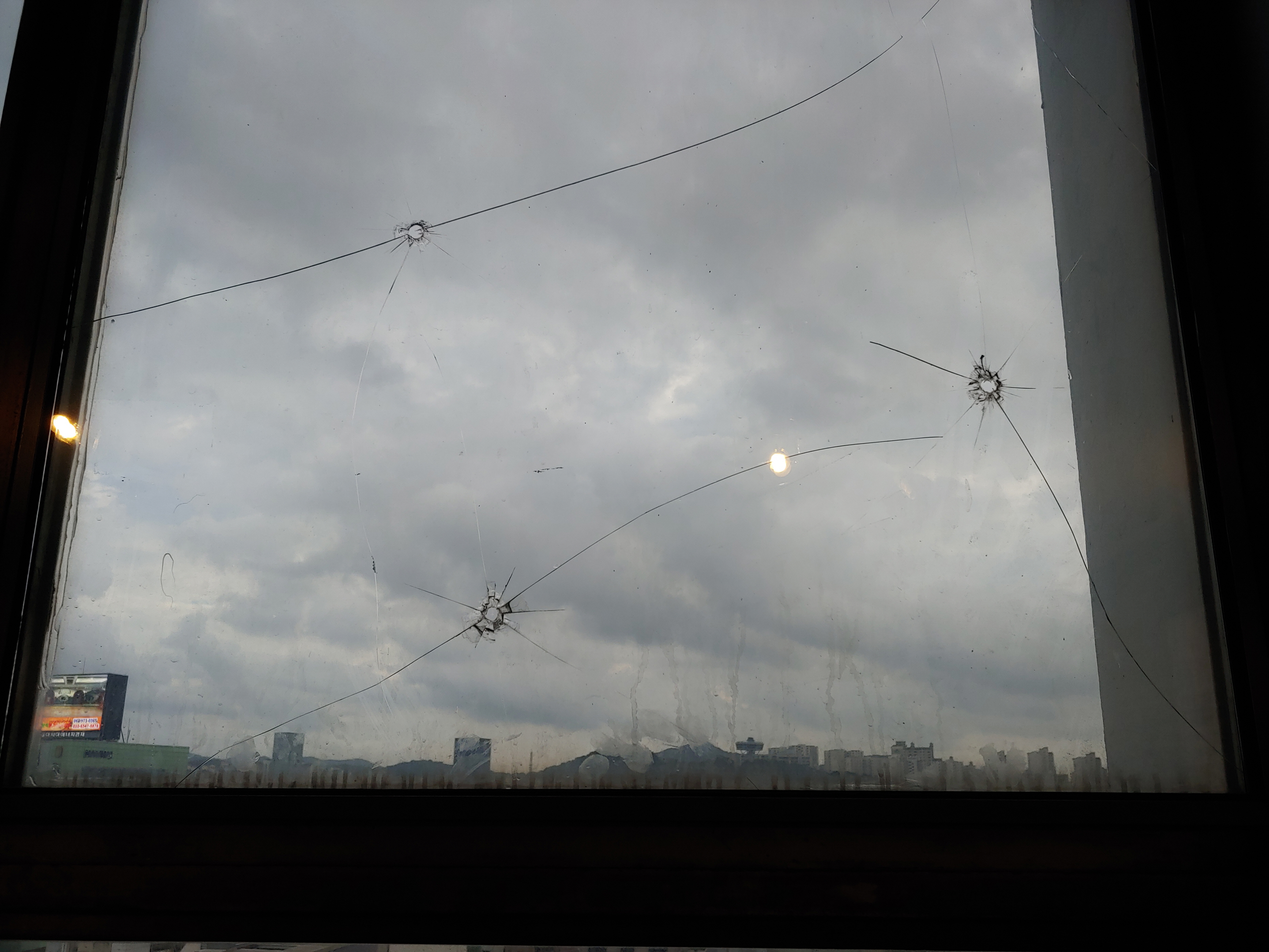 바닥에도 여러 개의 탄흔이 보입니다.