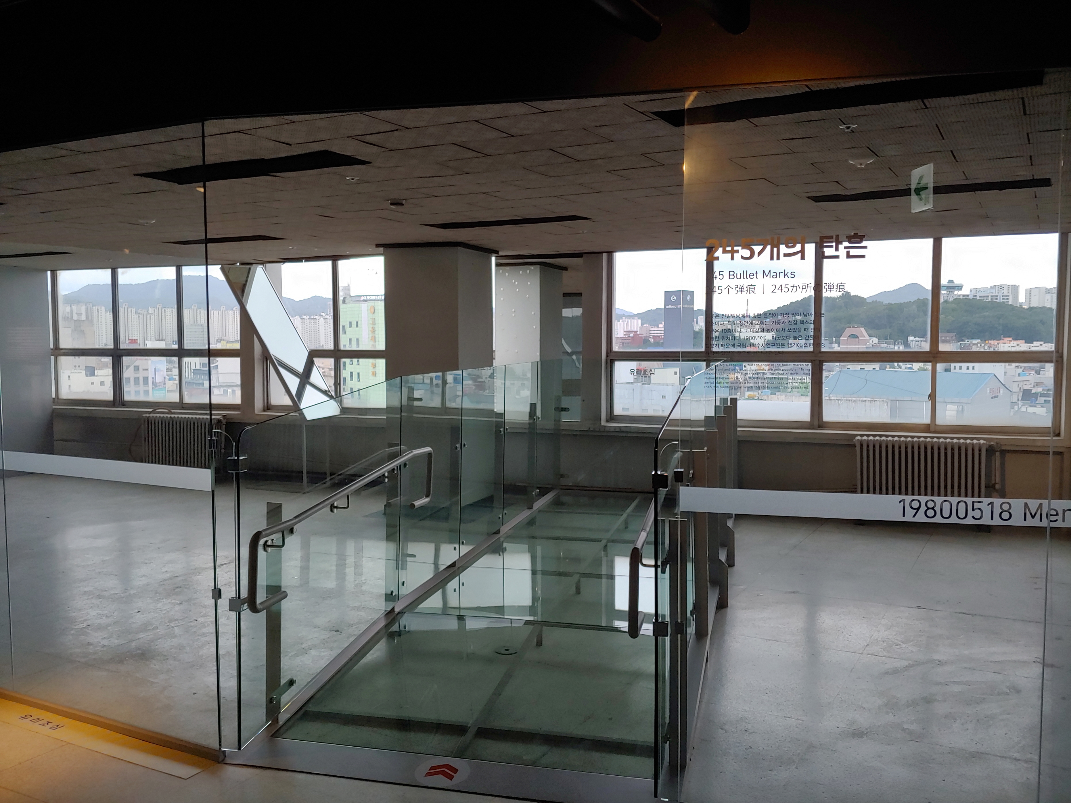 245개의 총탄흔적이 발견되어 원형 그대로 탄흔이 보존된 공간입니다.