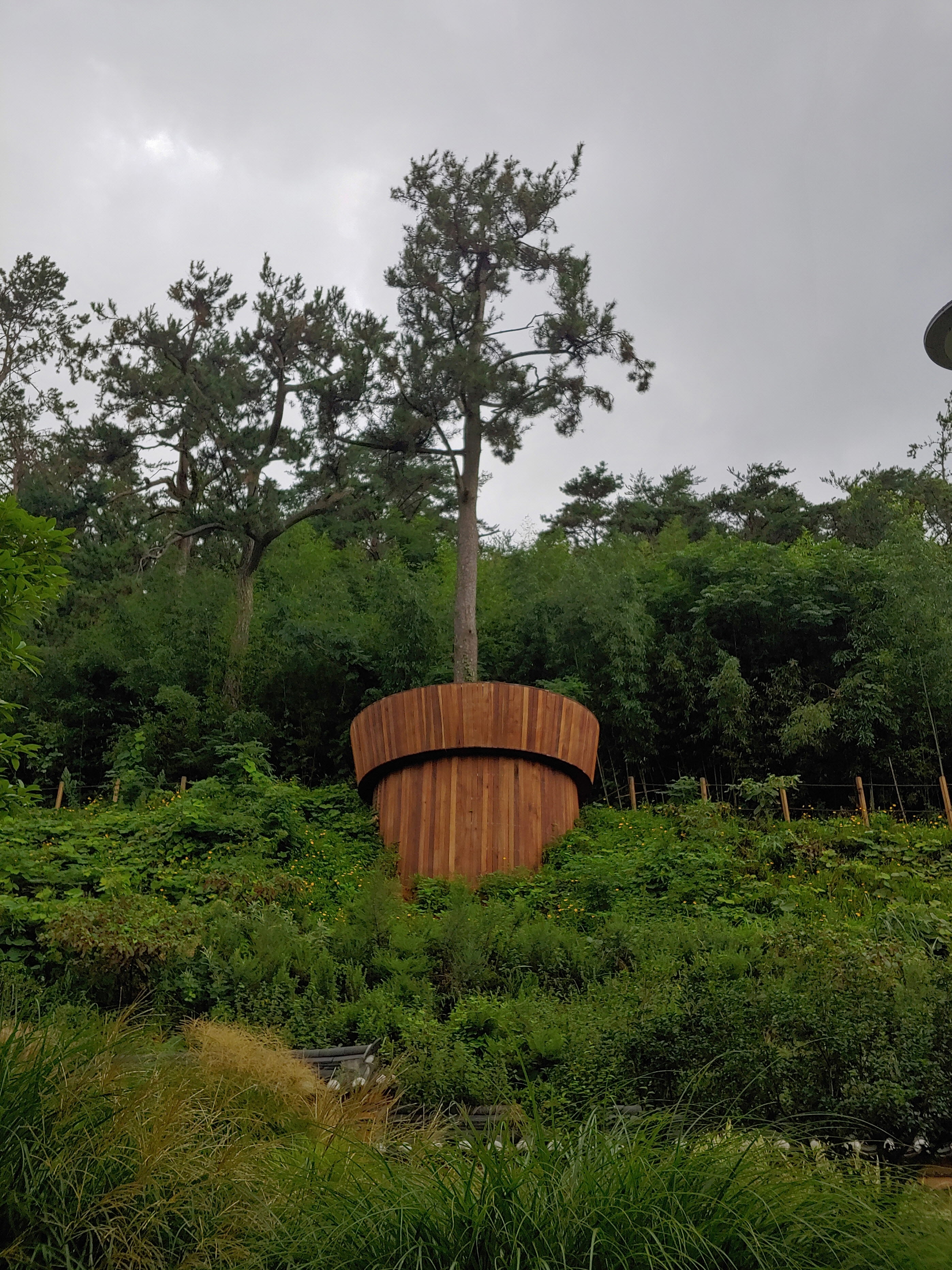 무궁화동산 위로 거대한 화분에 소나무 한 그루가 심어져 있는 모습이 이색적입니다.
