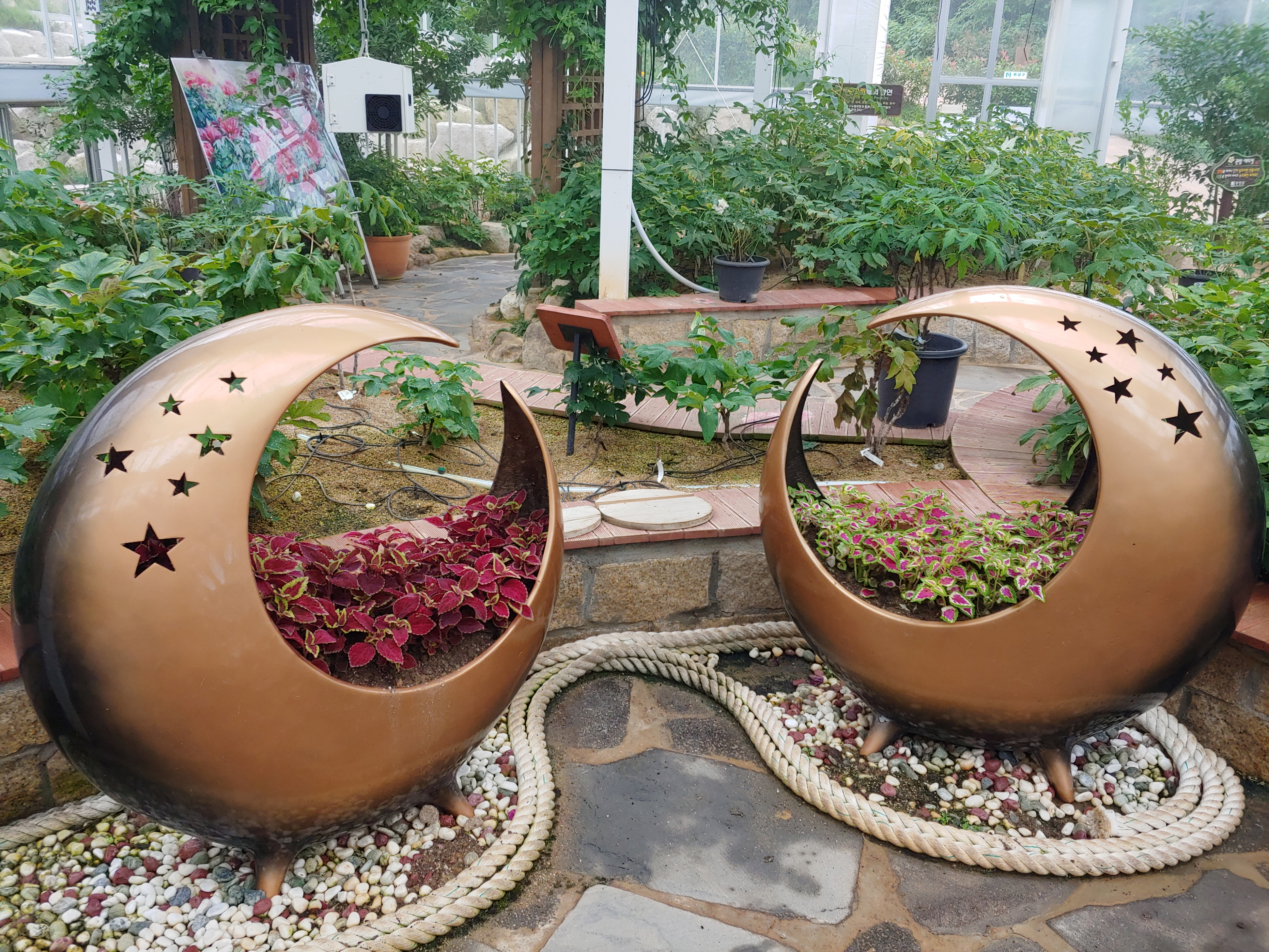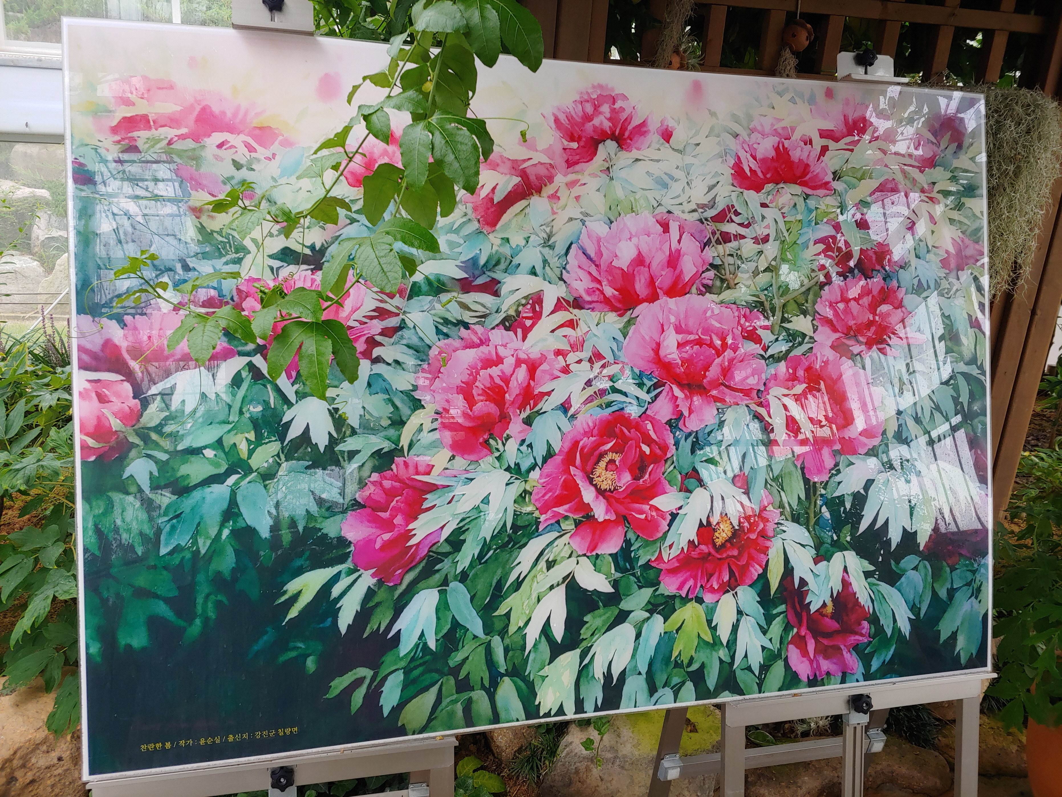 야외 공원으로 나오니 모란꽃 모형 조형물이 있습니다.
