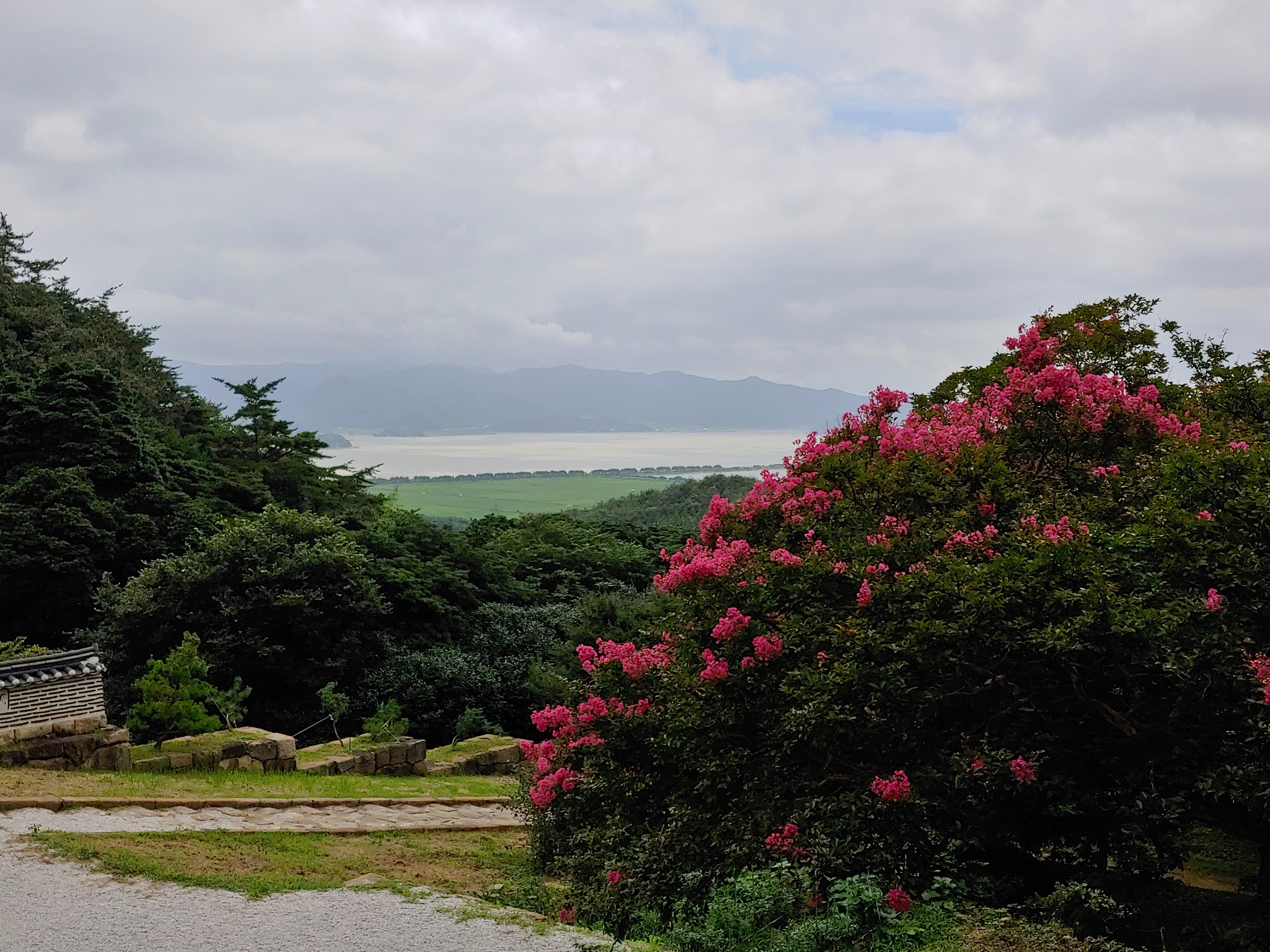 만경루에서 발보는 배롱나무와 강진만 풍경이 너무 예뻐 보입니다.