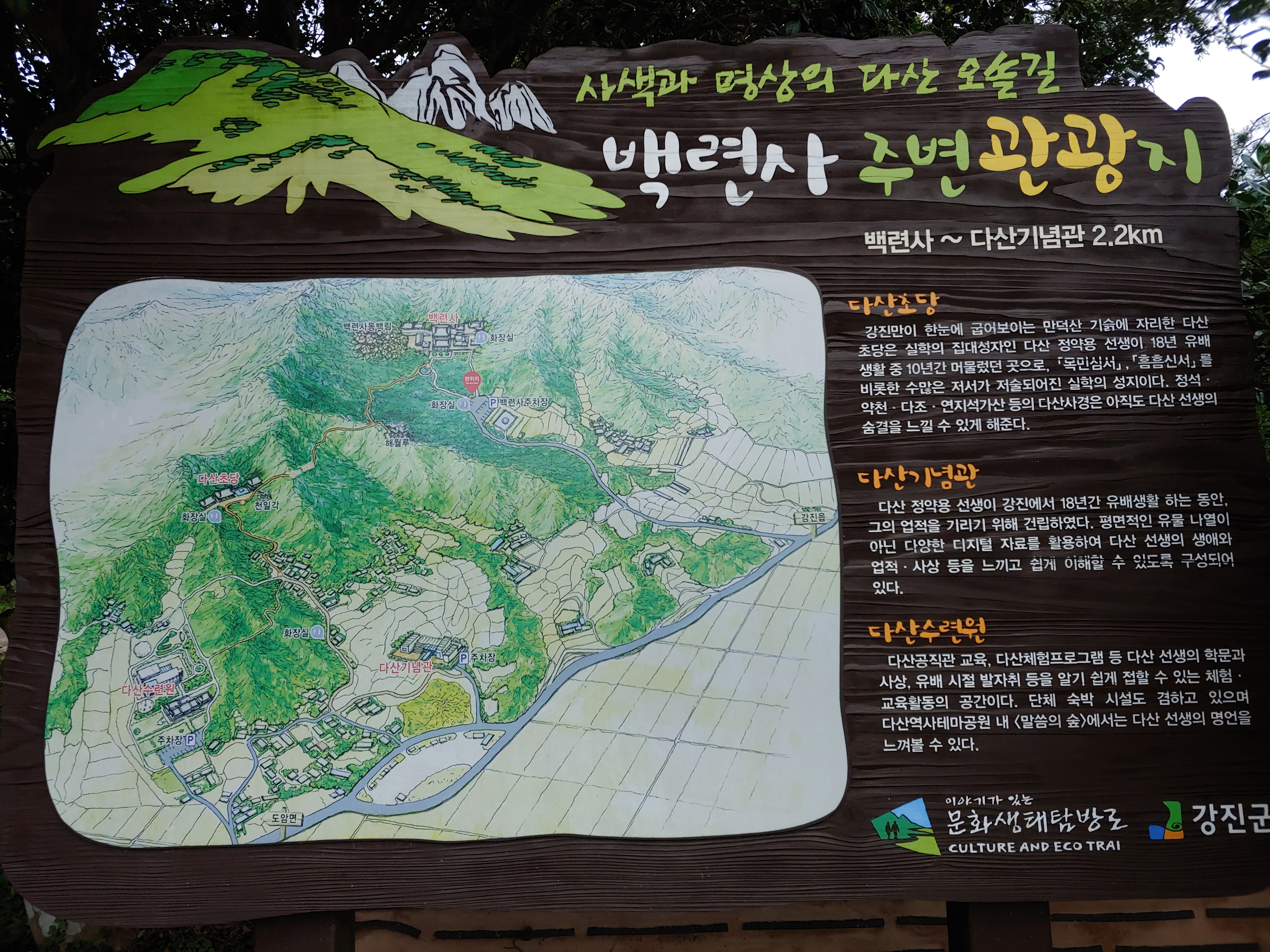 다산초당에서 1km 정도 떨어져 있어 걸어서 다산 정약용의 발자취를 느끼면 좋겠지만 너무 더운 날씨라 차량으로 이동했습니다.