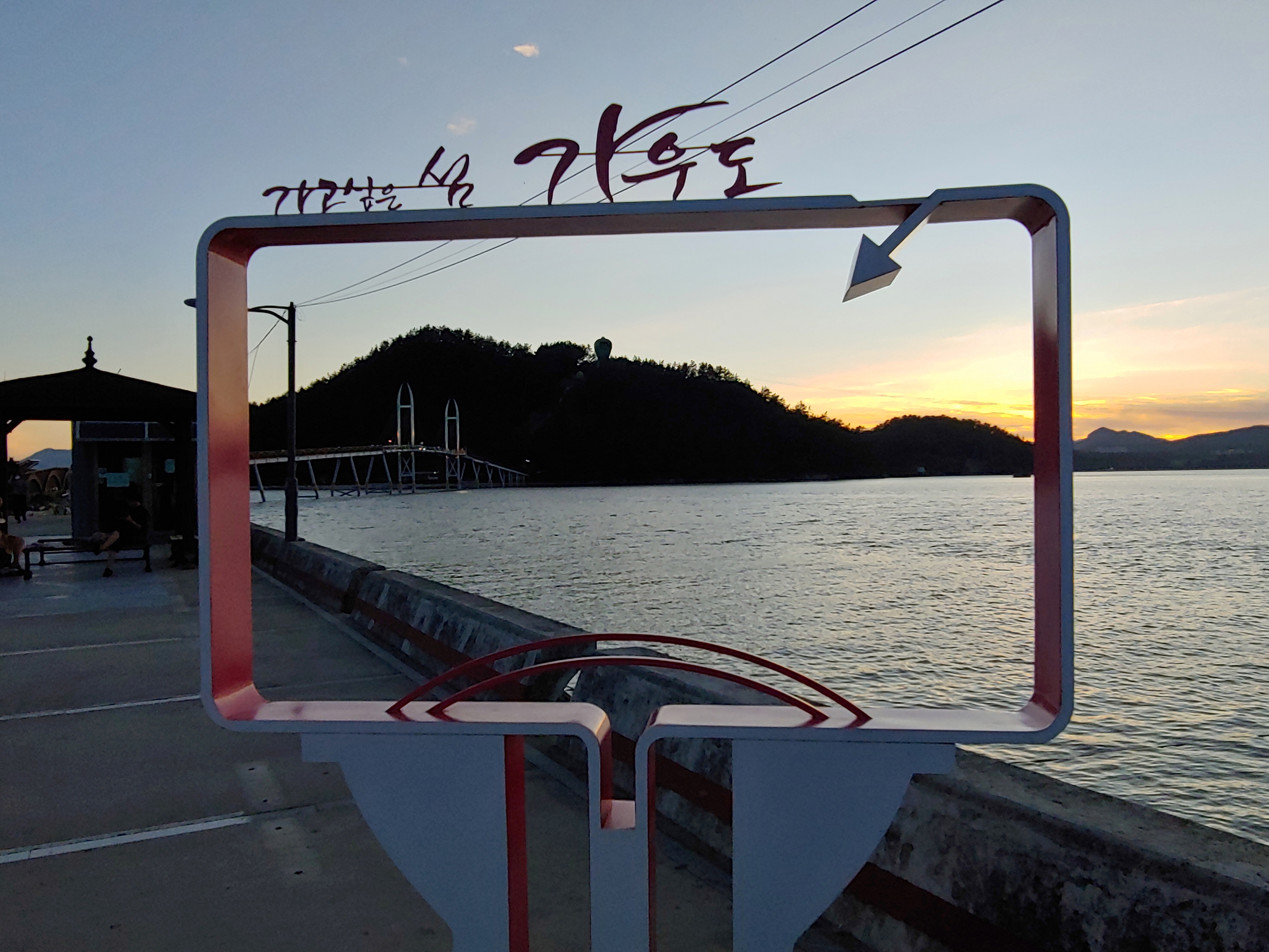 우연히 일몰이 멋있어 들렀는데, 강진만 풍경도 너무 예쁘고, 가우도 출렁다리가 한눈에 보이던 곳이었습니다.