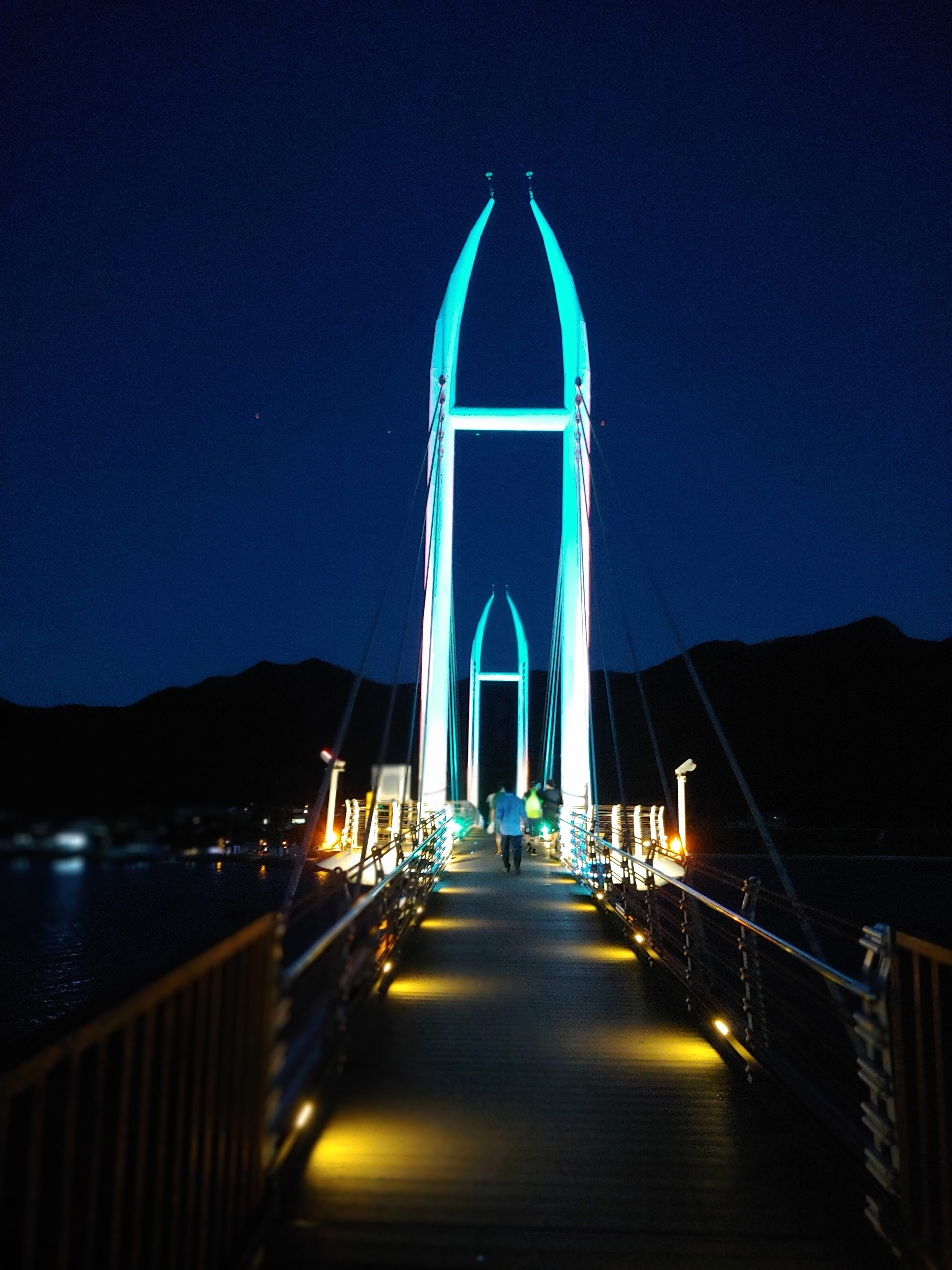 출렁다리의 야경이 들어오면서 멋진 풍경을 선사하네요.