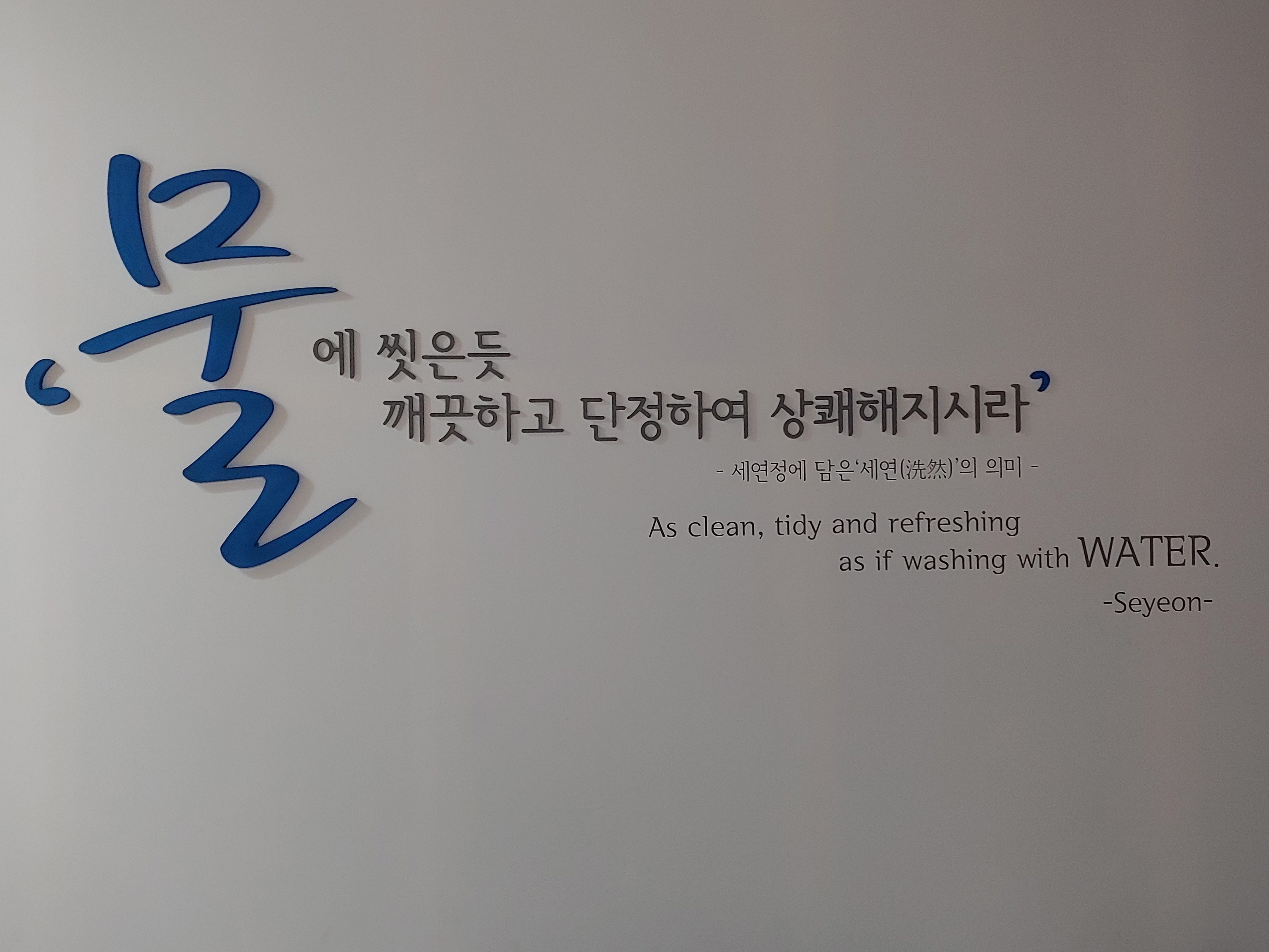 '물에 씻은 듯 깨끗하고 단정하여 상쾌해지시라.'