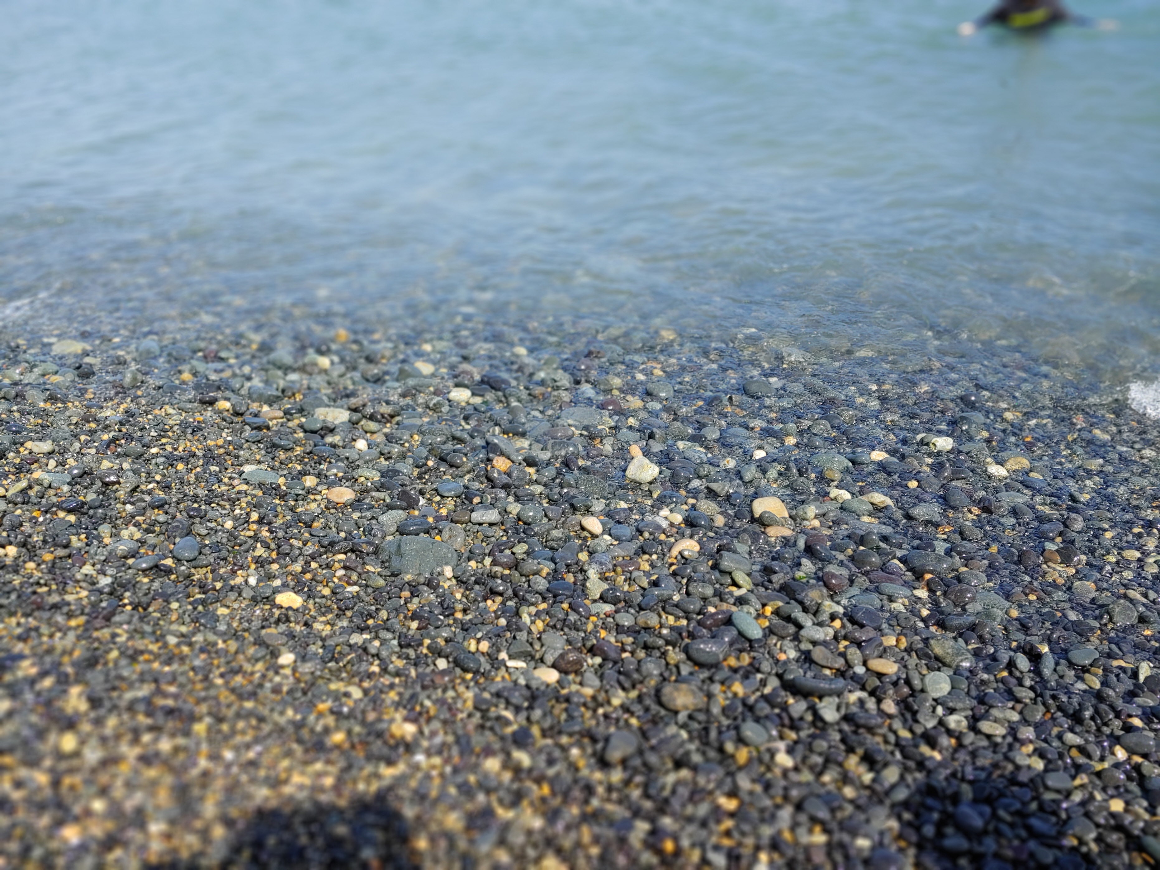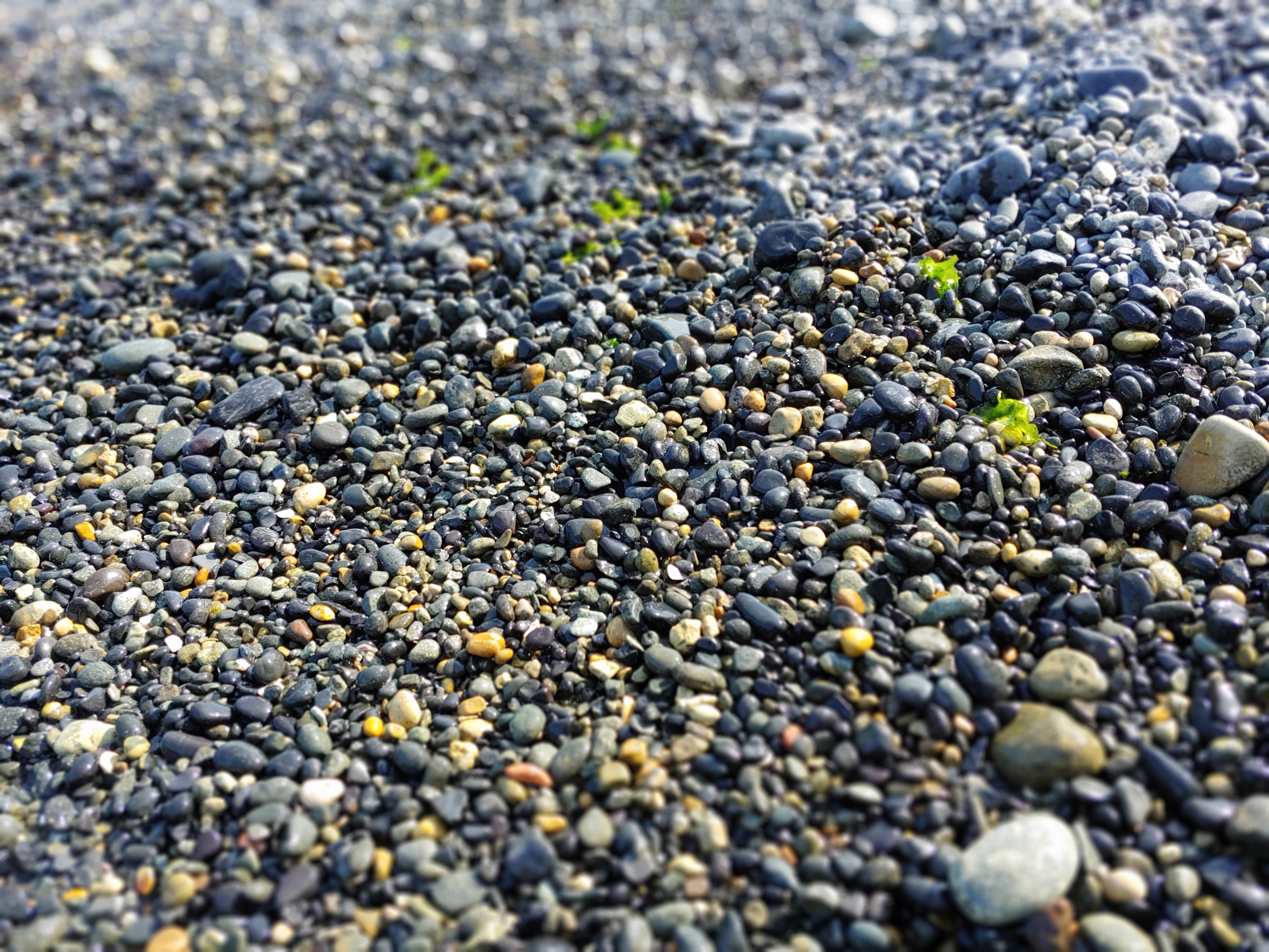 해변 위쪽으로는 큰 검은 자갈이, 해변아래쪽에는 이렇게 잘게 부숴진 자갈들이 있습니다.