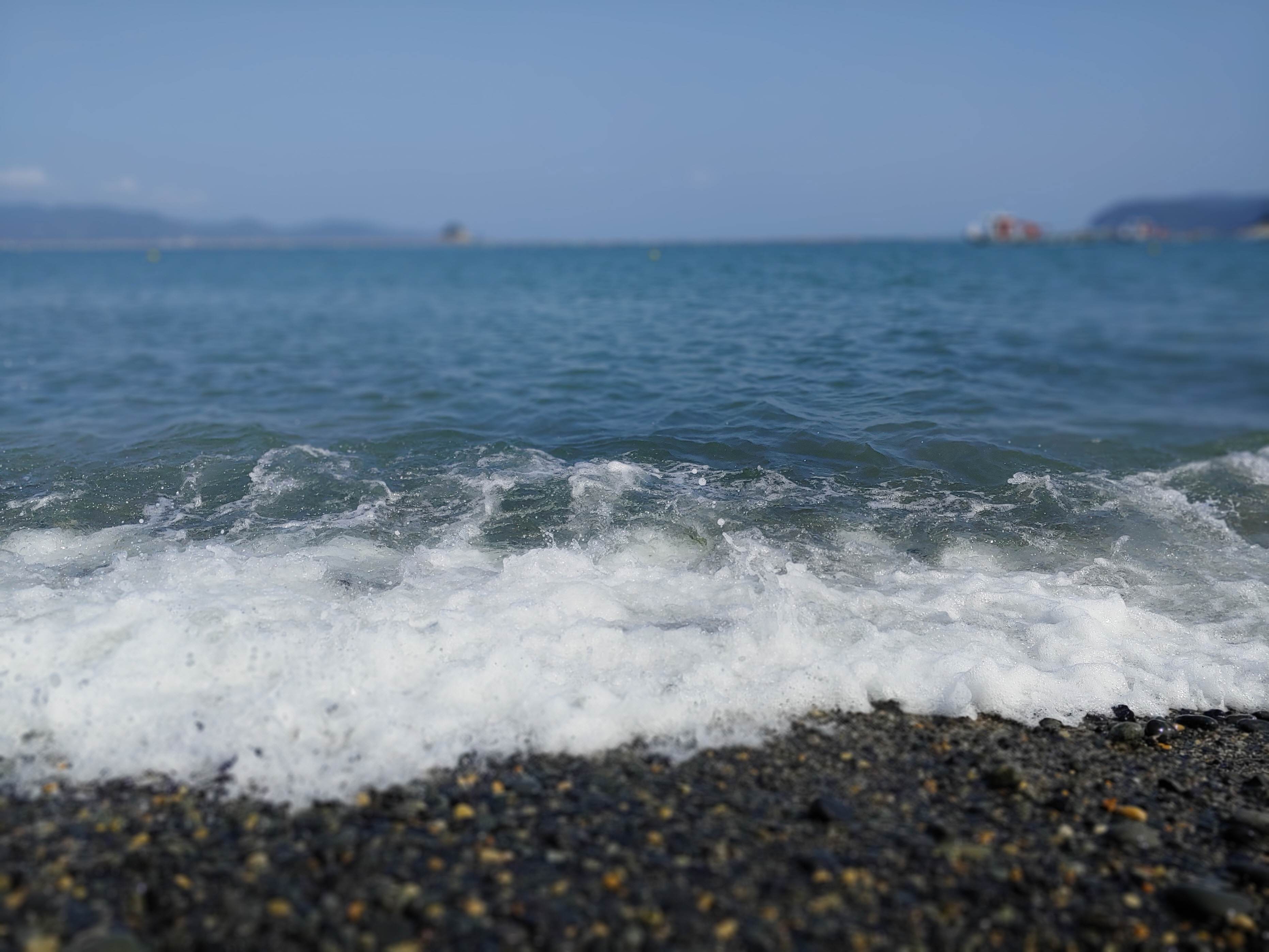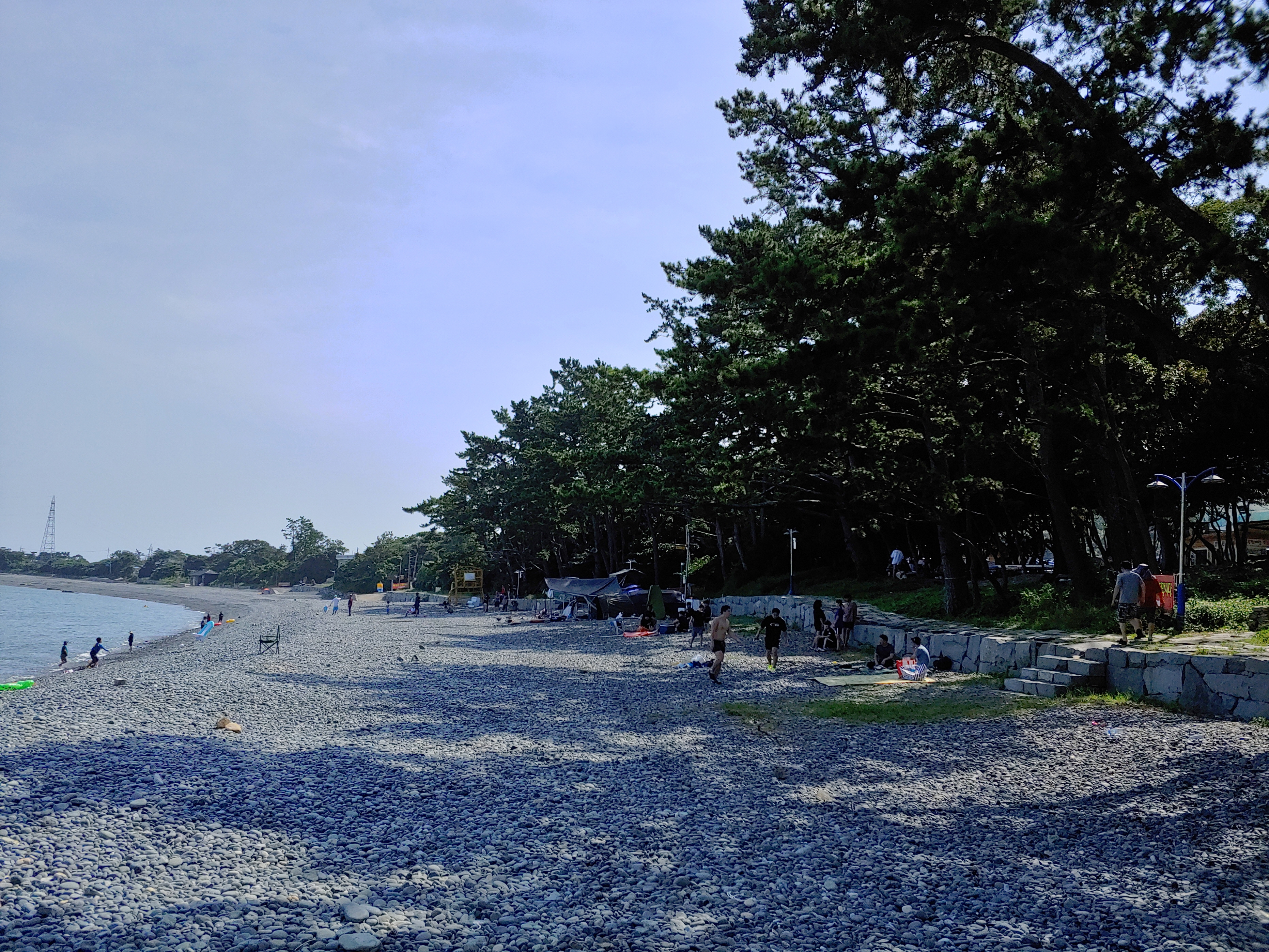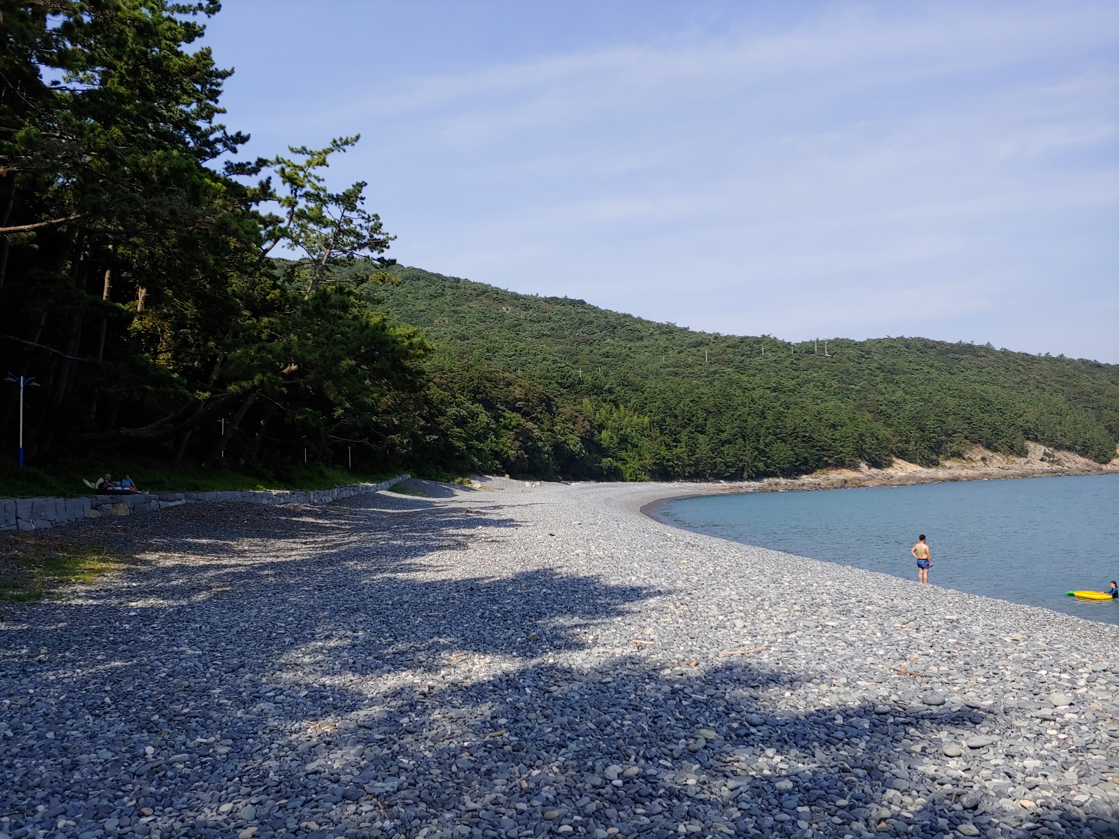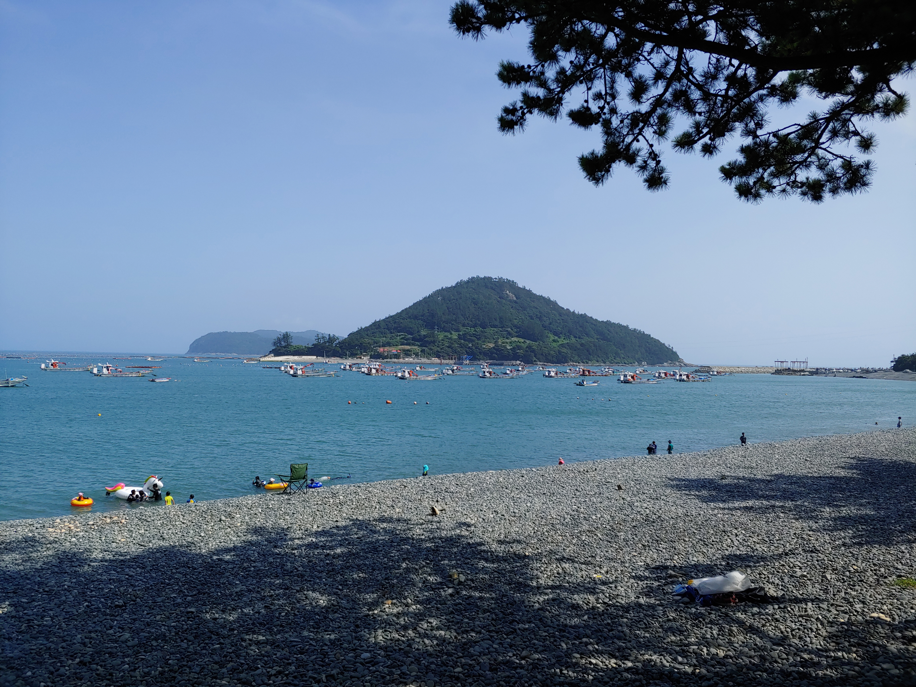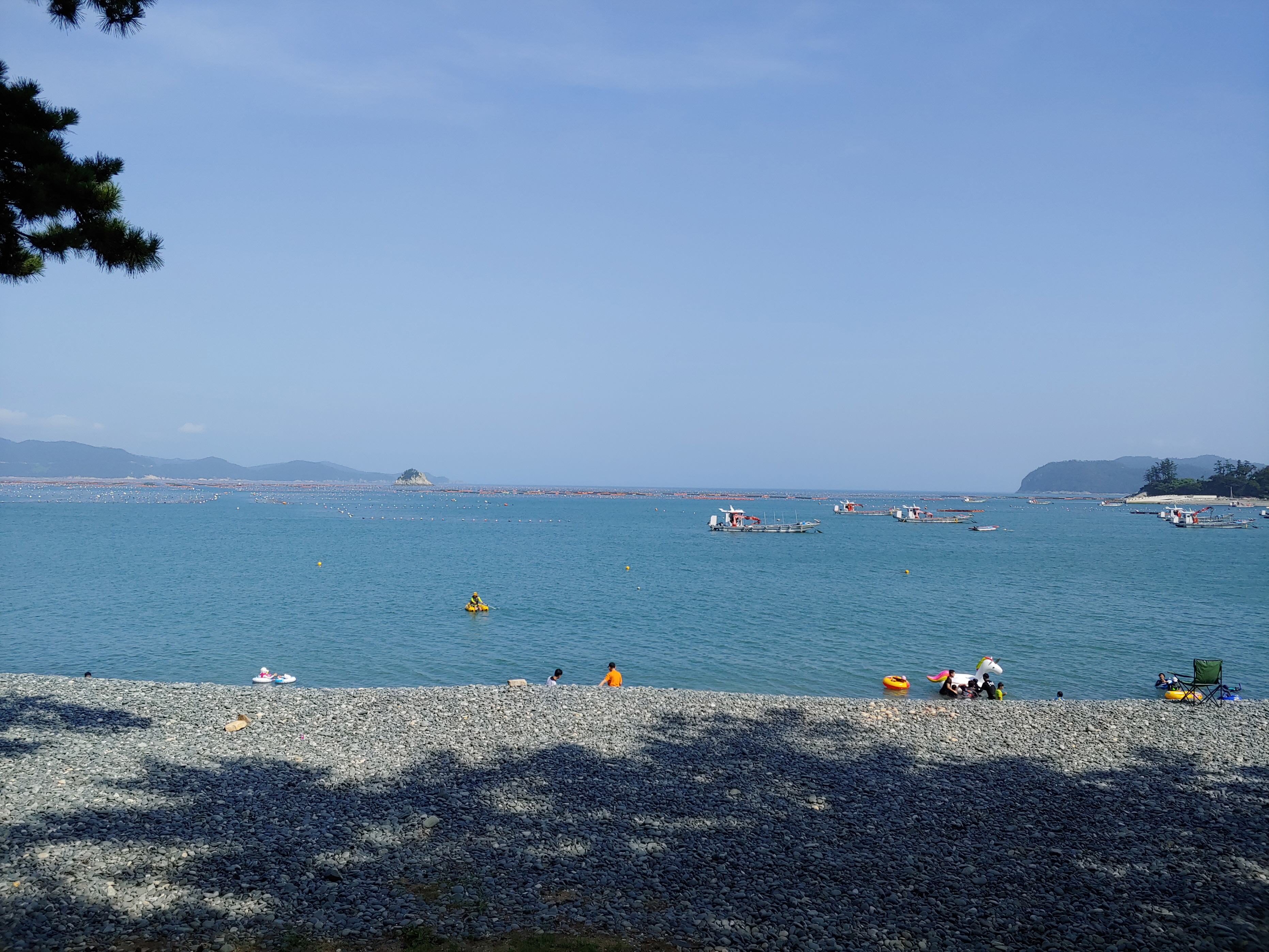 바닥이 갯돌이라 맨발로 다니기엔 통증이 있어 그 부분은 아쉬웠지만 잔 모래들이 따라붙어 찜찜한 것이 없으니까 좋았습니다.