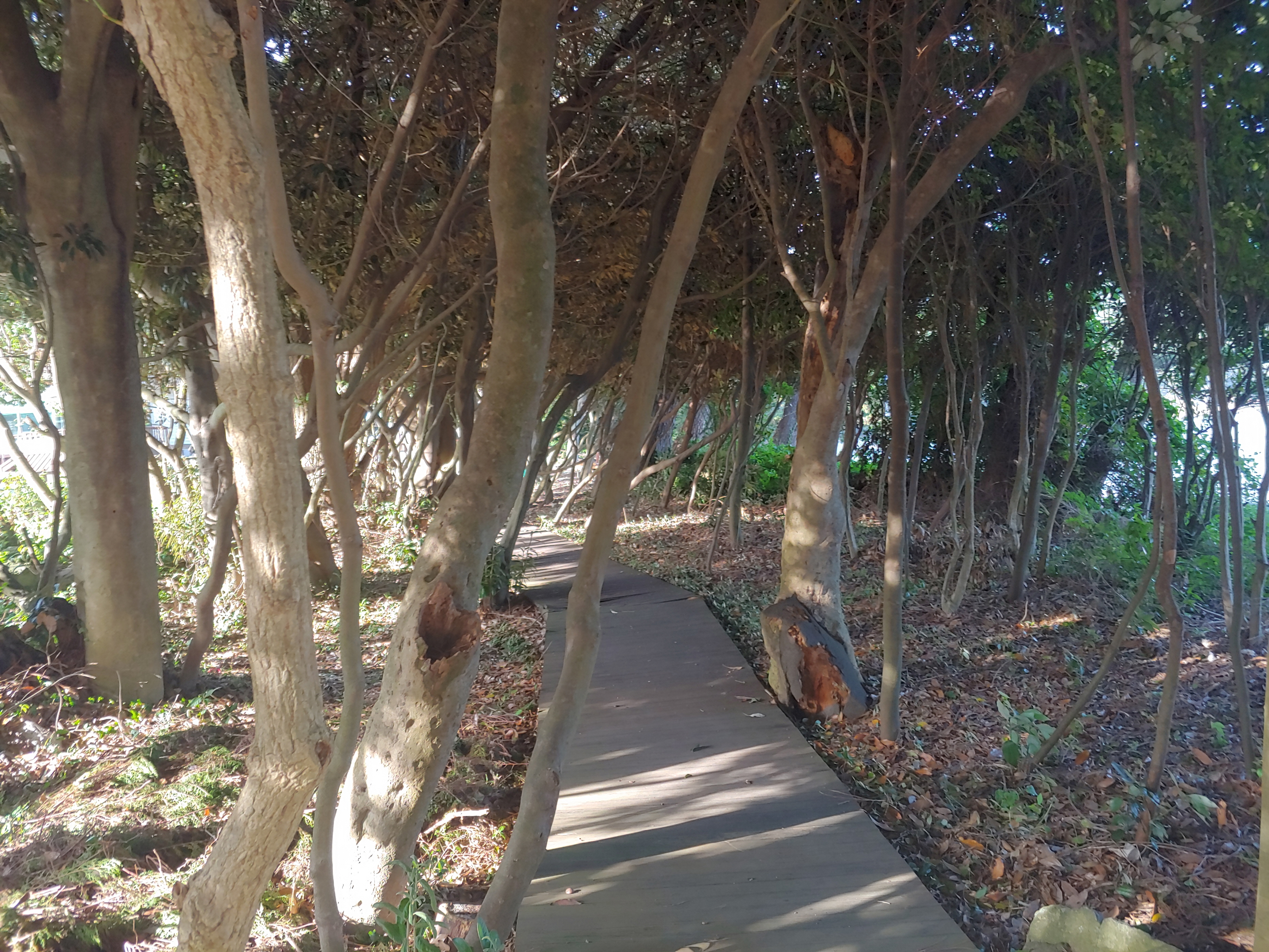 상록수림 사이로 산책로도 조성되어 있어 숲을 걸으며 바다를 조망할 수 있는 곳입니다.