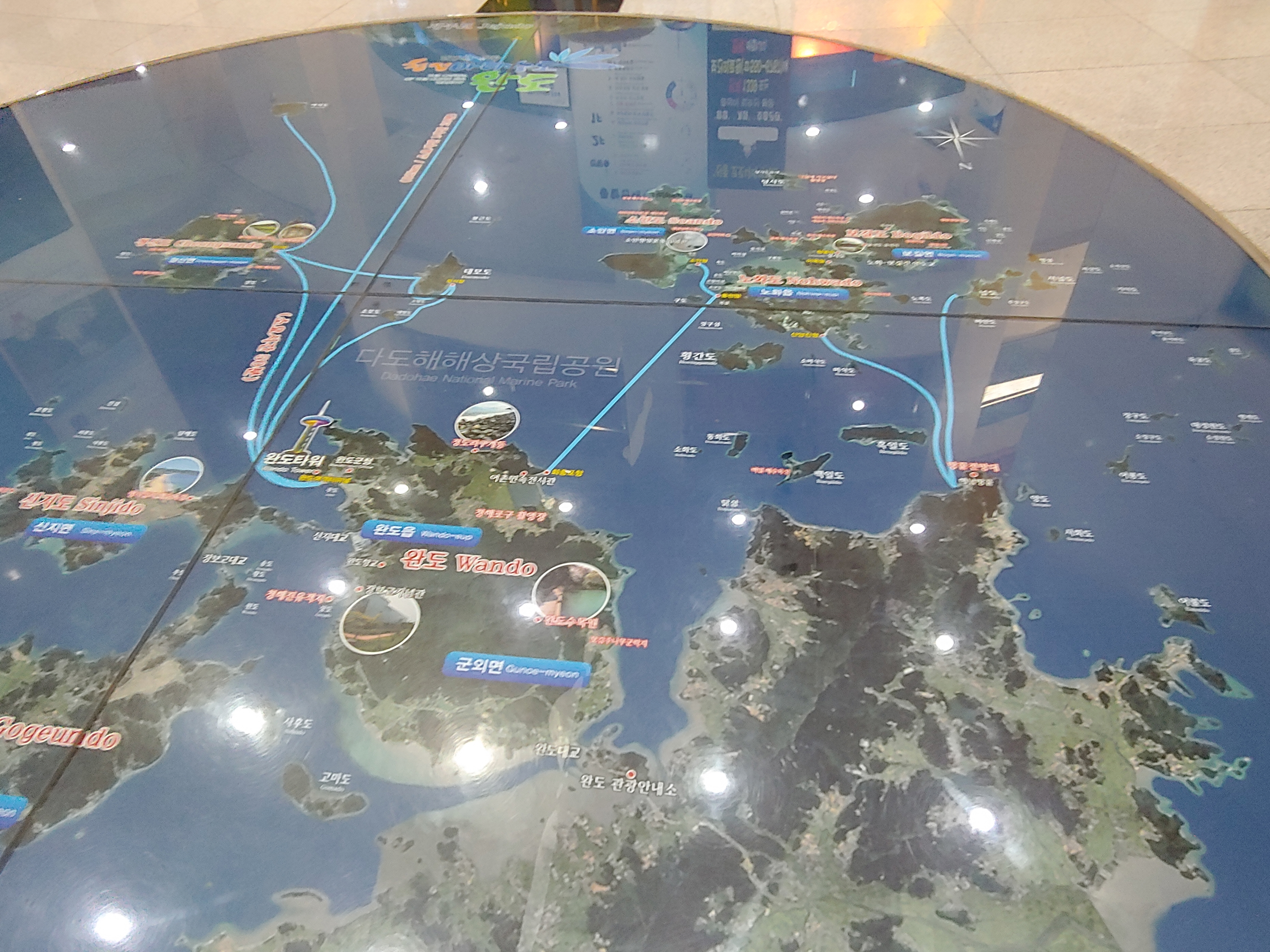 1층에 들어서면 1층 바닥에 다도해해상국립공원 여객선 항로 표시가 되어 있습니다.