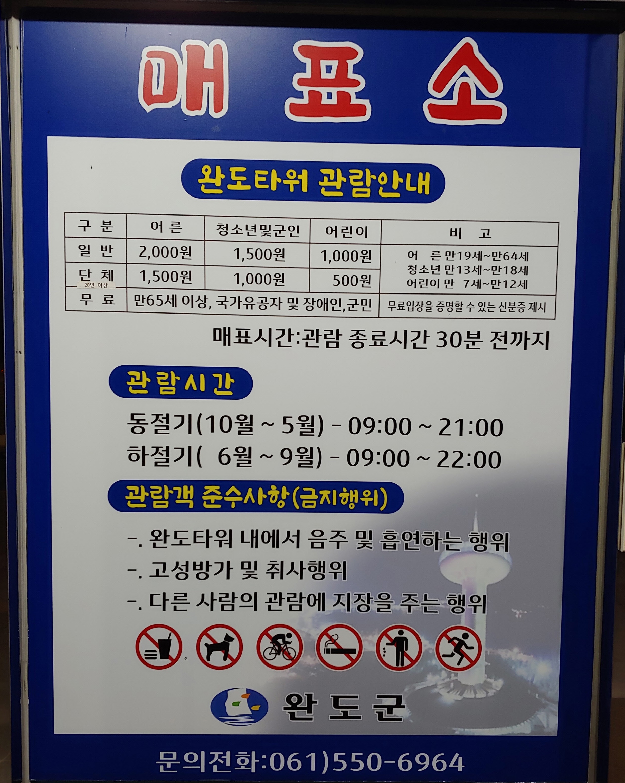 밤에는 완도 타워 자체를 구경하고, 낮에 완도타워에 오르는 것이 낫겠다는 생각이 드는 순간입니다.