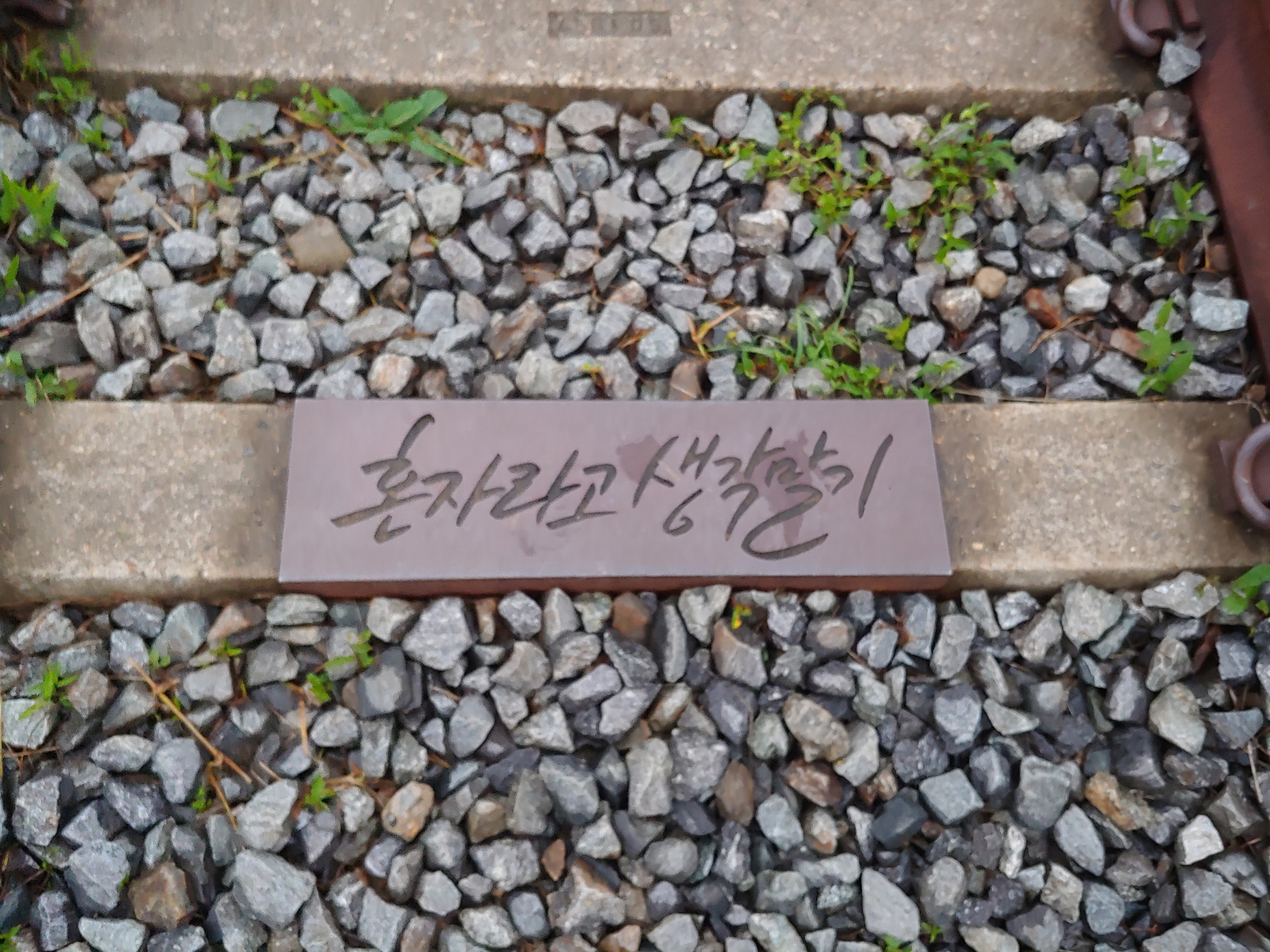 철길의 침목에는 재미있고, 공감가는 문구들이 적혀 있습니다.