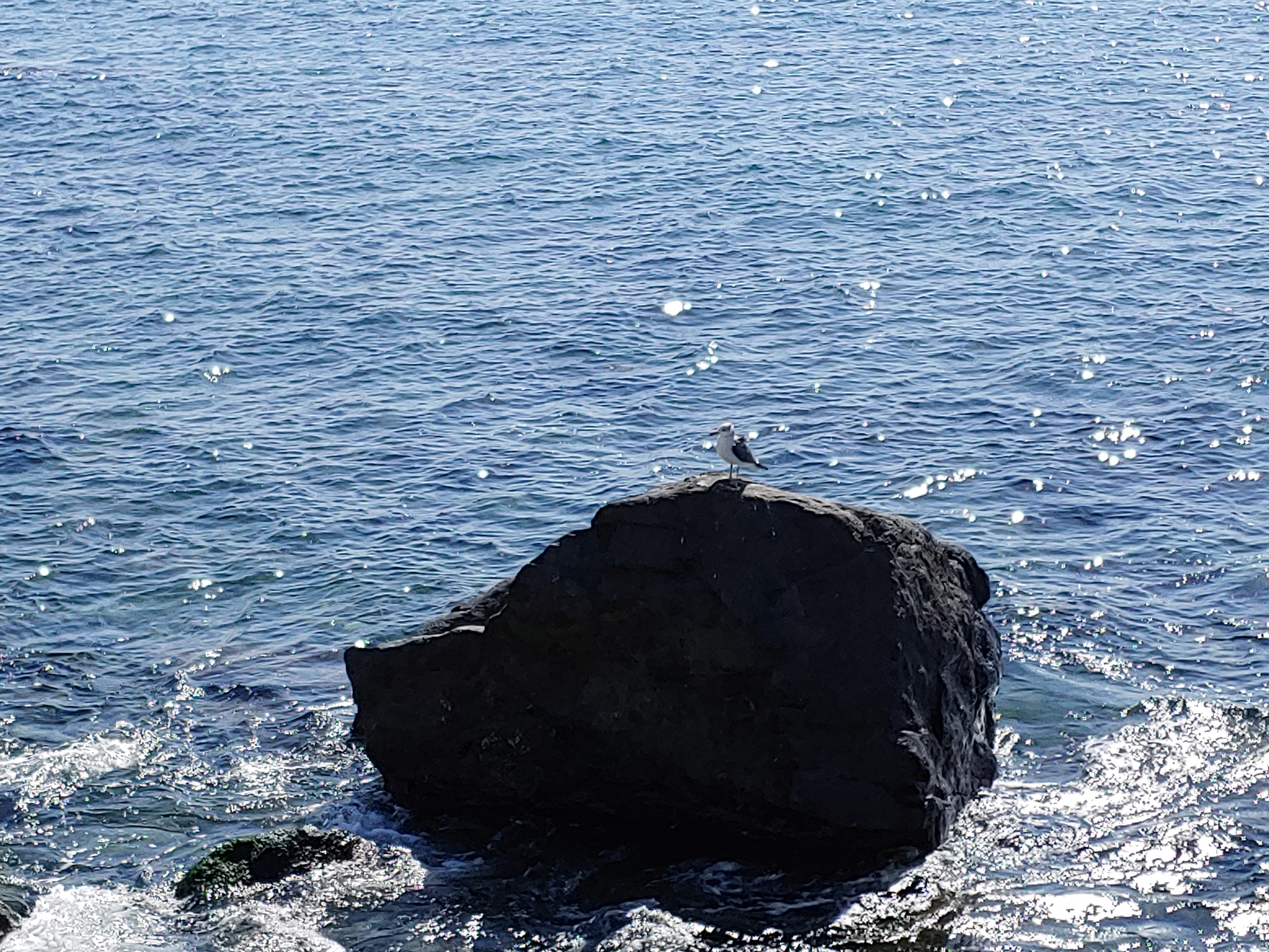 바위 위에 평화로움을 즐기고 있는 갈매기 한 마리