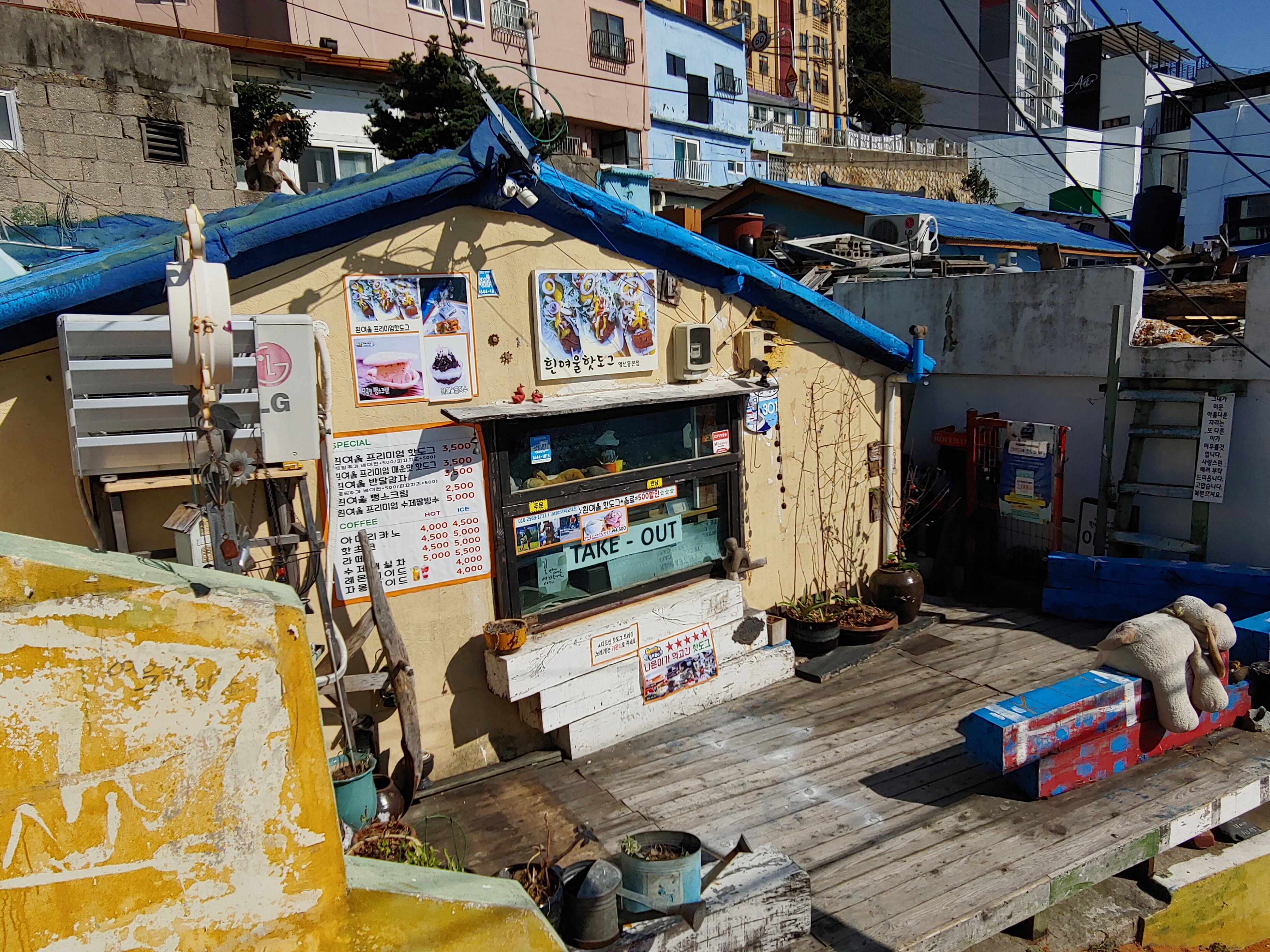 이곳에서 여유롭게 커피를 마시고 출발해도 되고, 흰여울문화마을을 걷다보면 바닷길 위쪽으로 예쁜 카페들이 많이 있으니 그곳에서 여유를 느껴도 좋을 것 같습니다.
