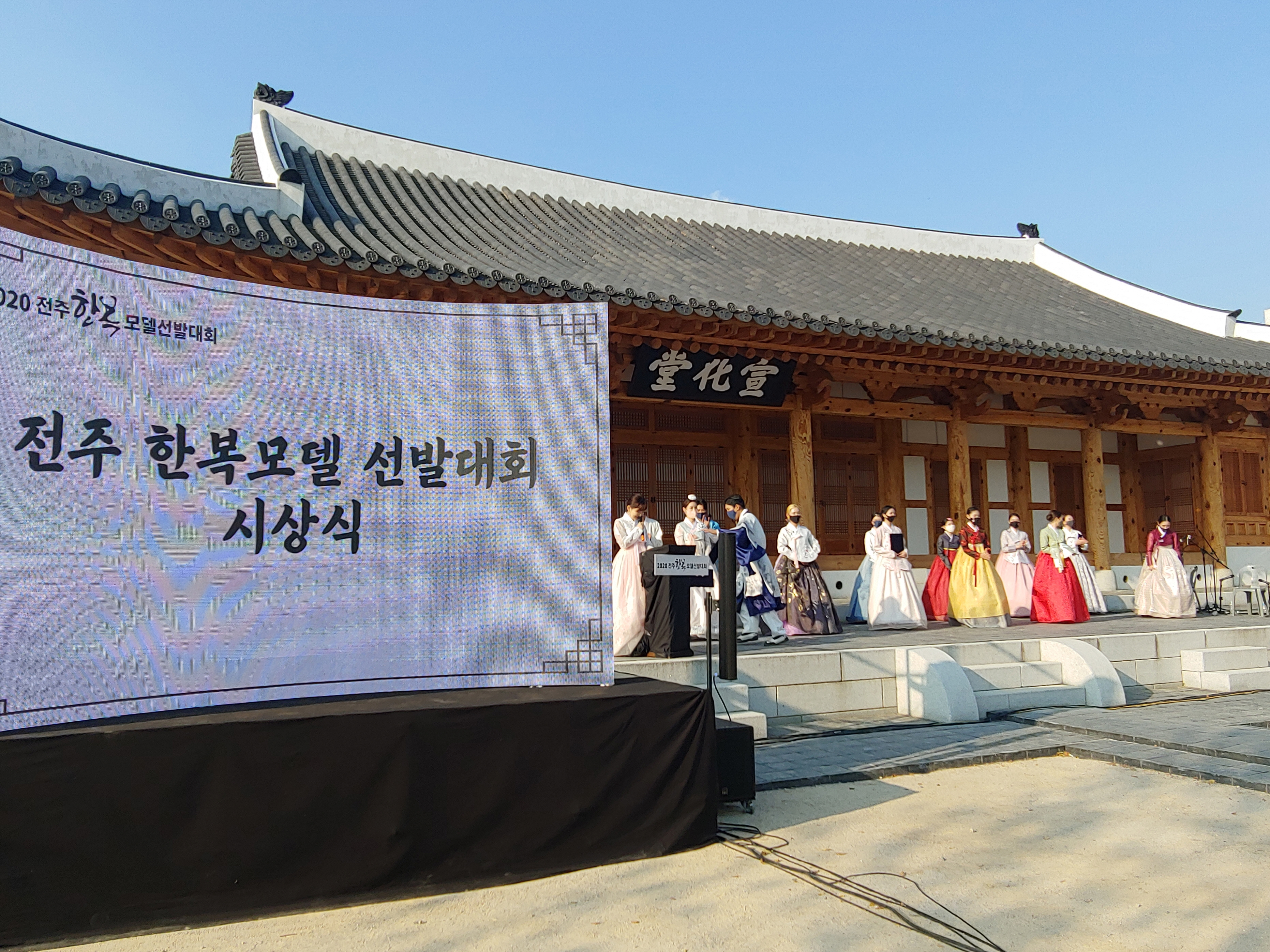 우리가 방문했을 때에는 전라감영 선화당 앞에서는 2020 전주 한복모델 선발대회 시상식을 진행하고 있더군요.