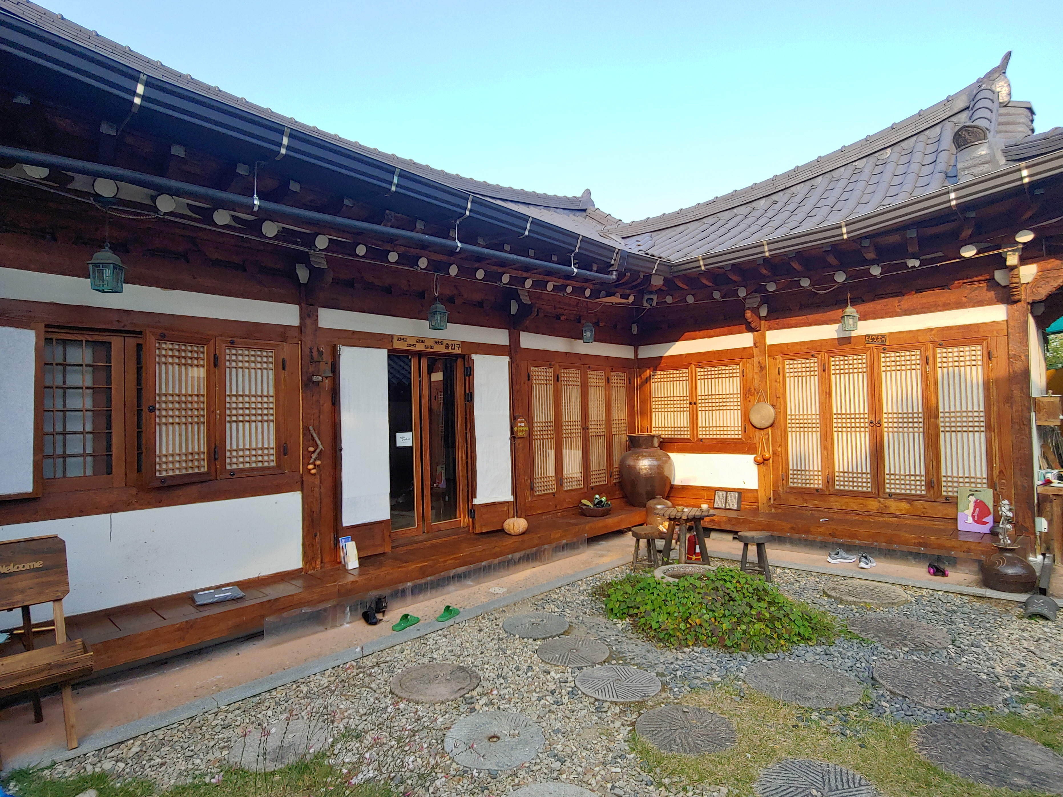 숙박객들에겐 저렴하게 빌릴 수 있고, 한복을 입을 때 신는 고무신은 직접 예쁘게 그려서 무료로 주시는 친절함까지 있던 전주한옥마을 숙소였습니다.