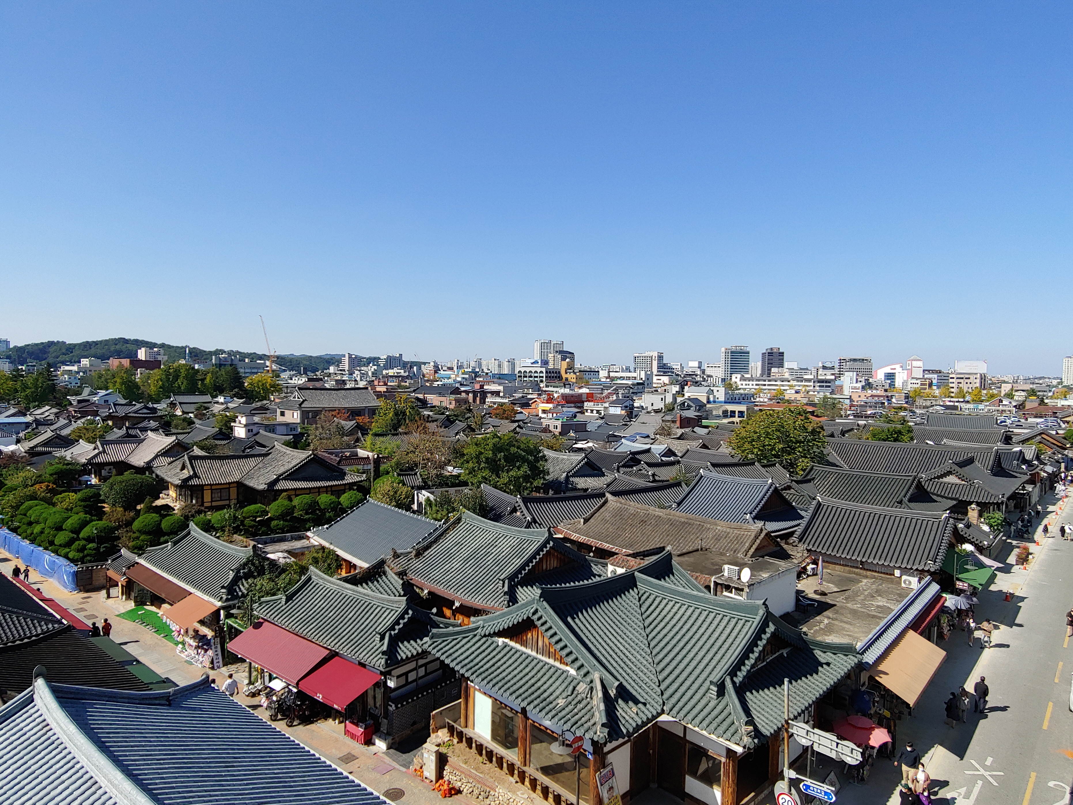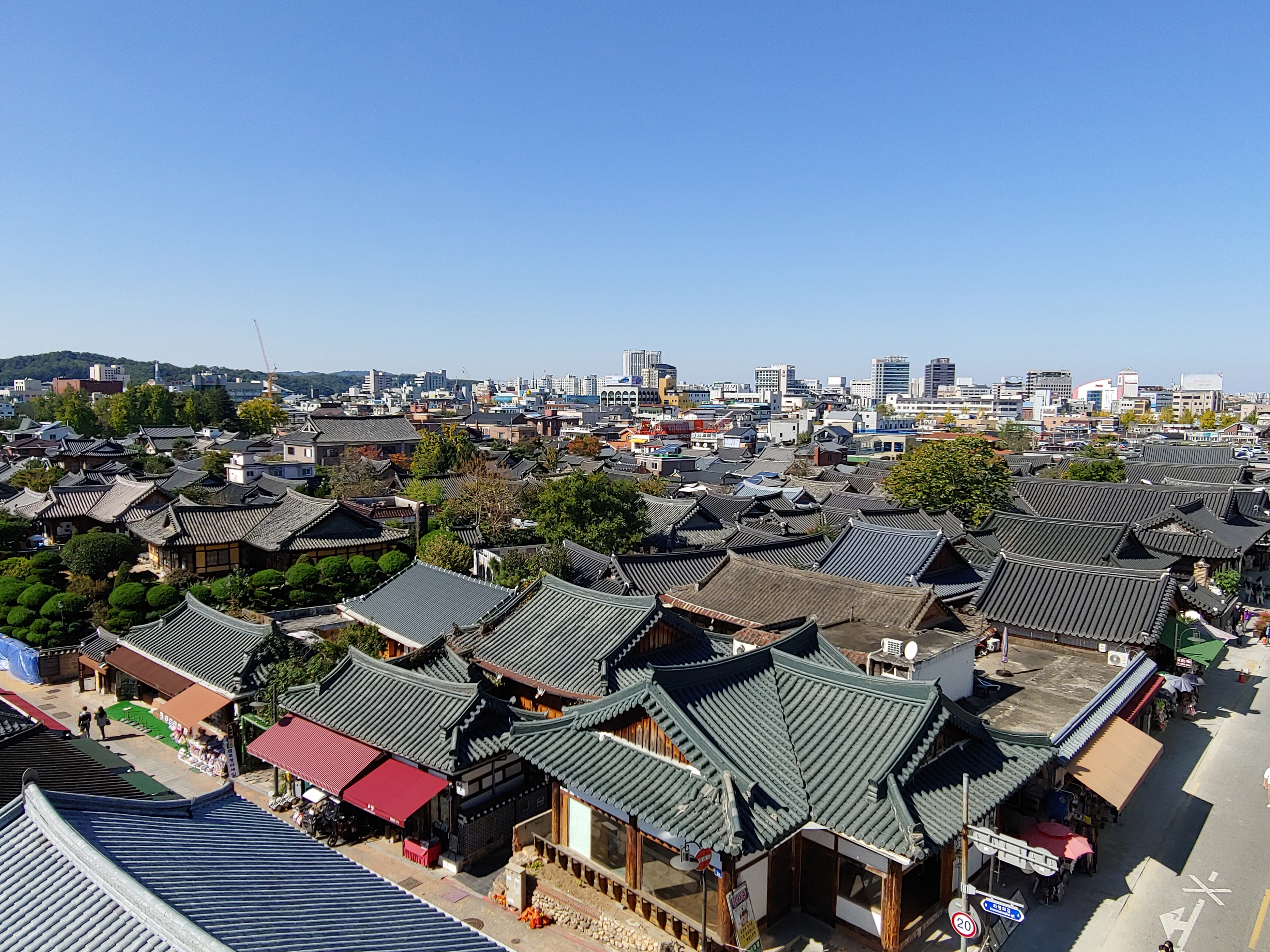 전주한옥마을에서 5층 높이의 건물은 한옥마을 일대에는 규제때문에 전혀 없는 상태입니다.