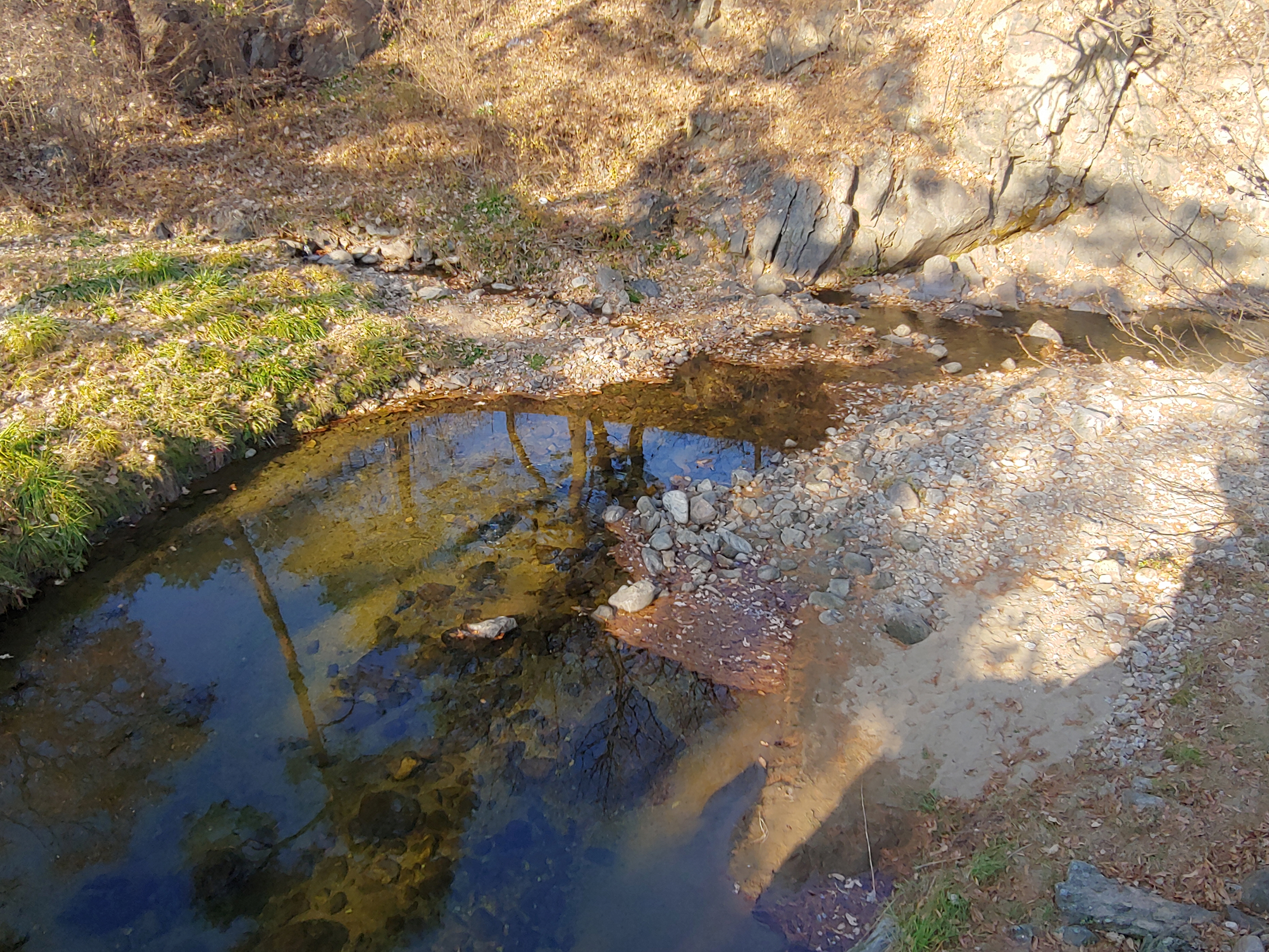 늦가을의 초간정 앞 금곡천 물은 많이 흐르지 않고 있습니다.