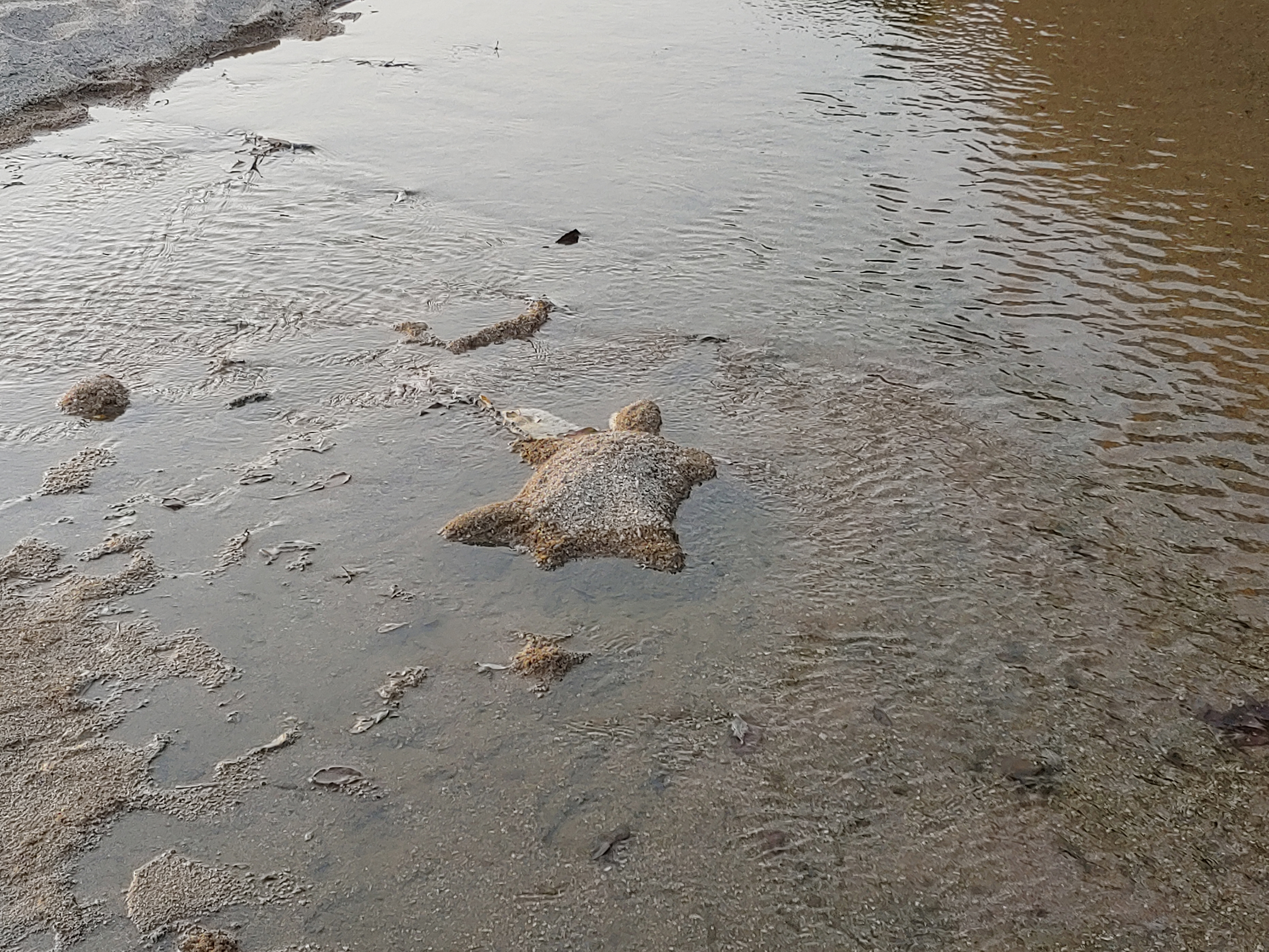 모래밭이 누가 거북이 모형을 제법 잘 만들어 놨네요.