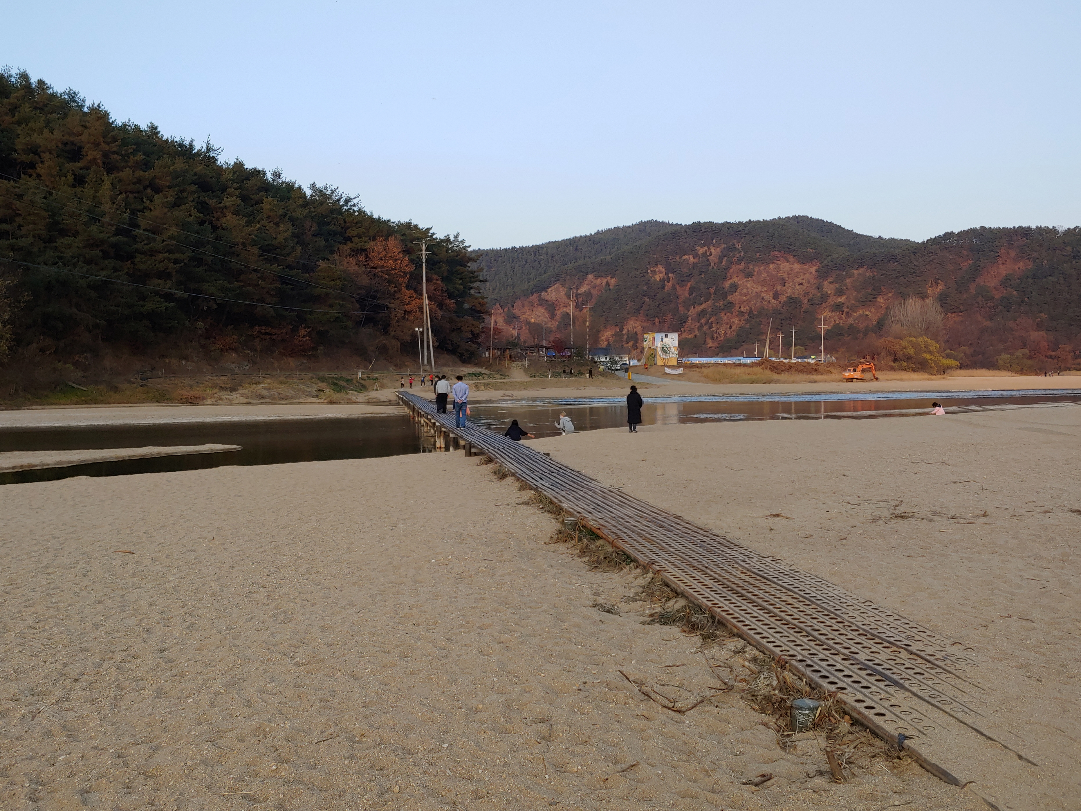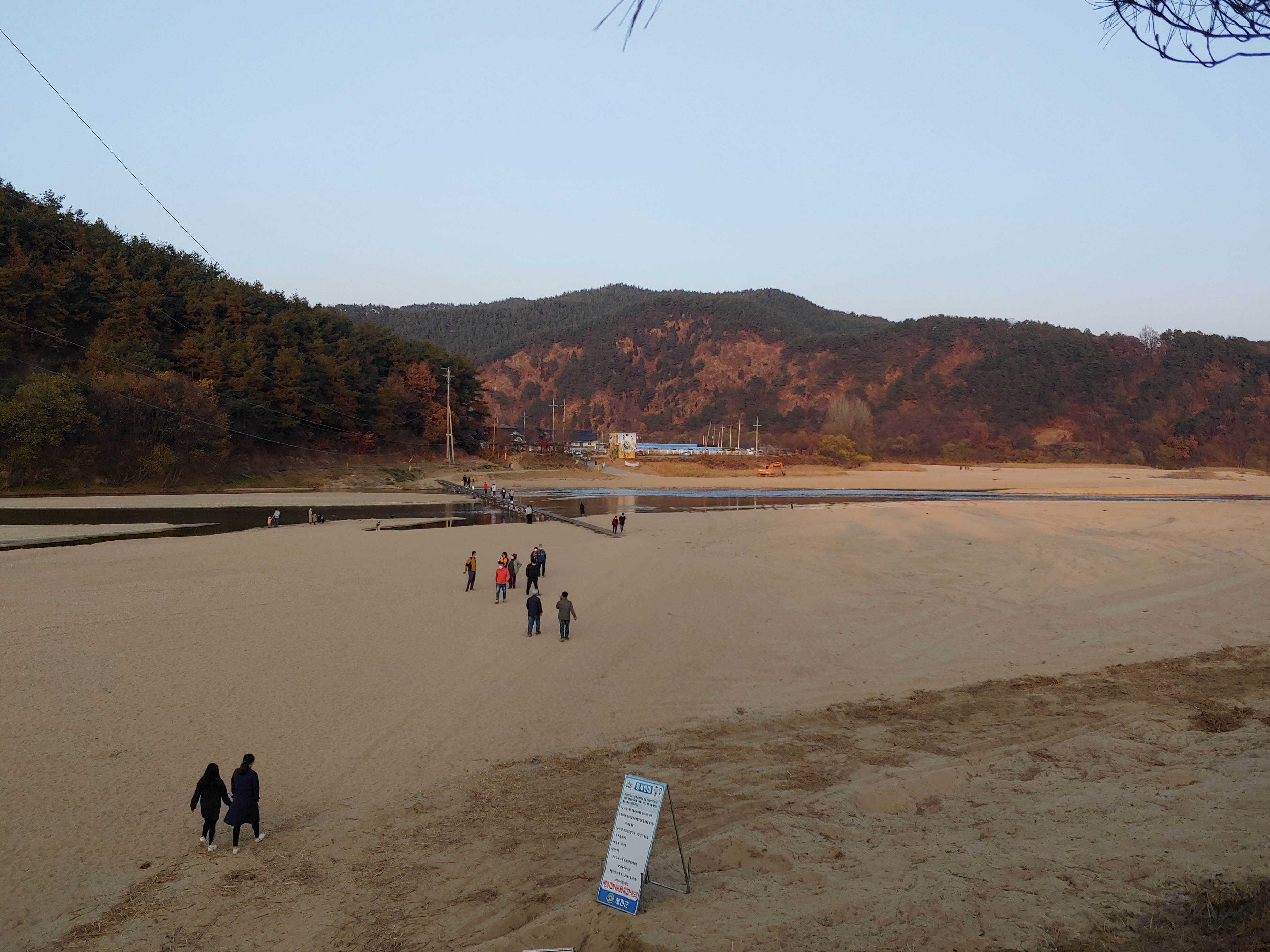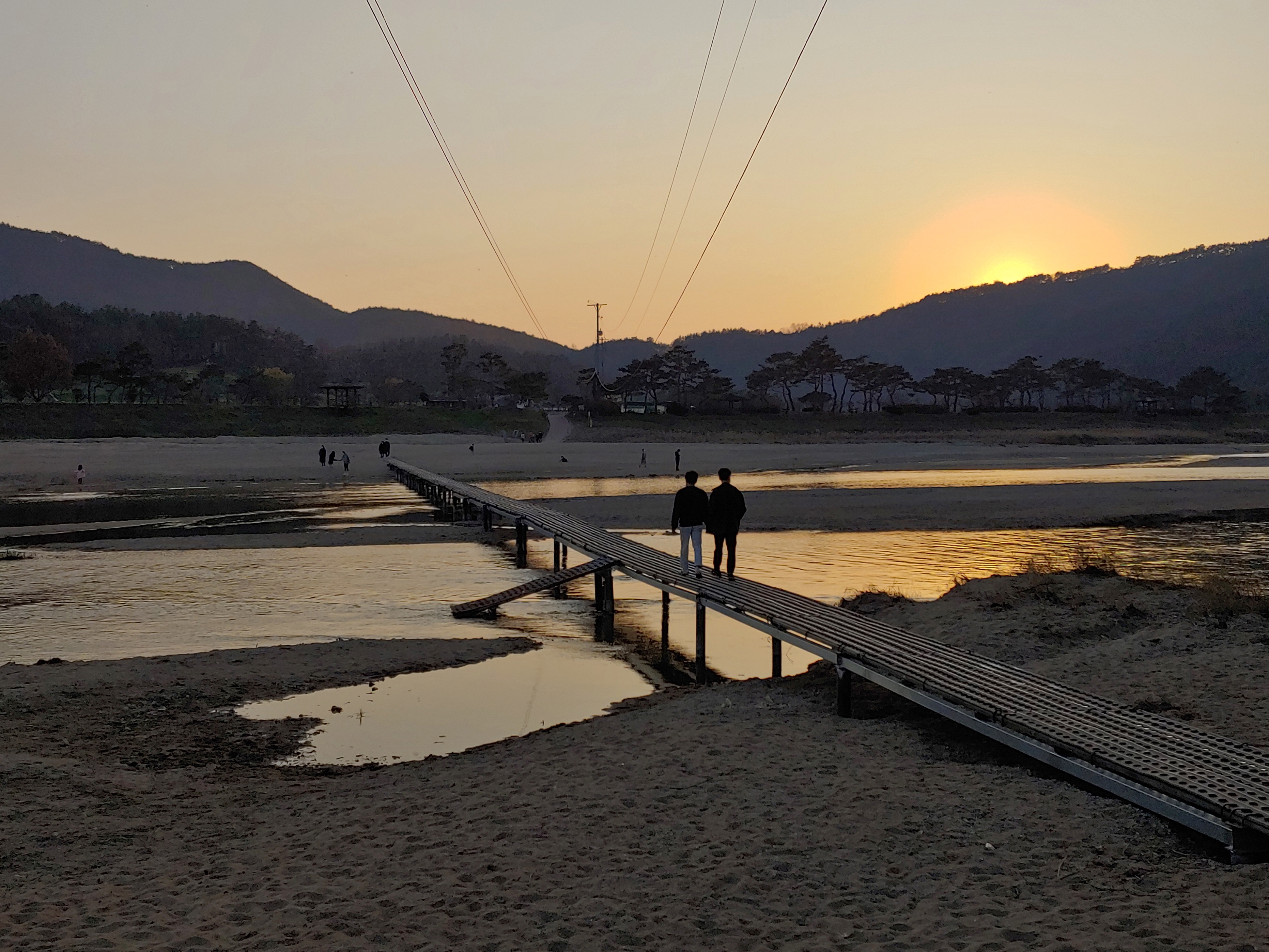 비룡산 너머로 해가 떨어지는 시간에 다시 뿅뿅다리를 건너 나왔습니다.