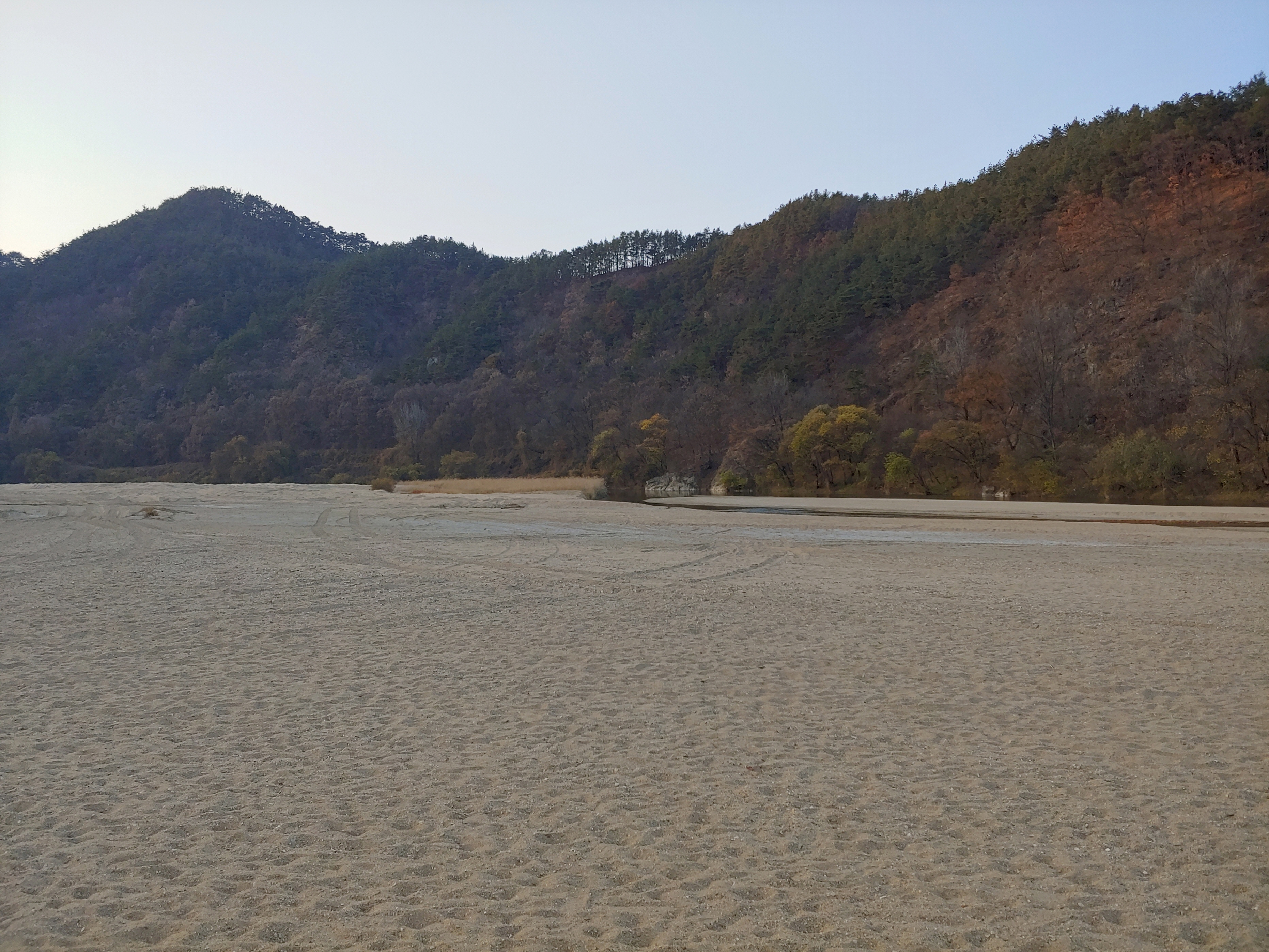 내성천에 물이 적으니 넓은 모래벌판이 드러나 있습니다.