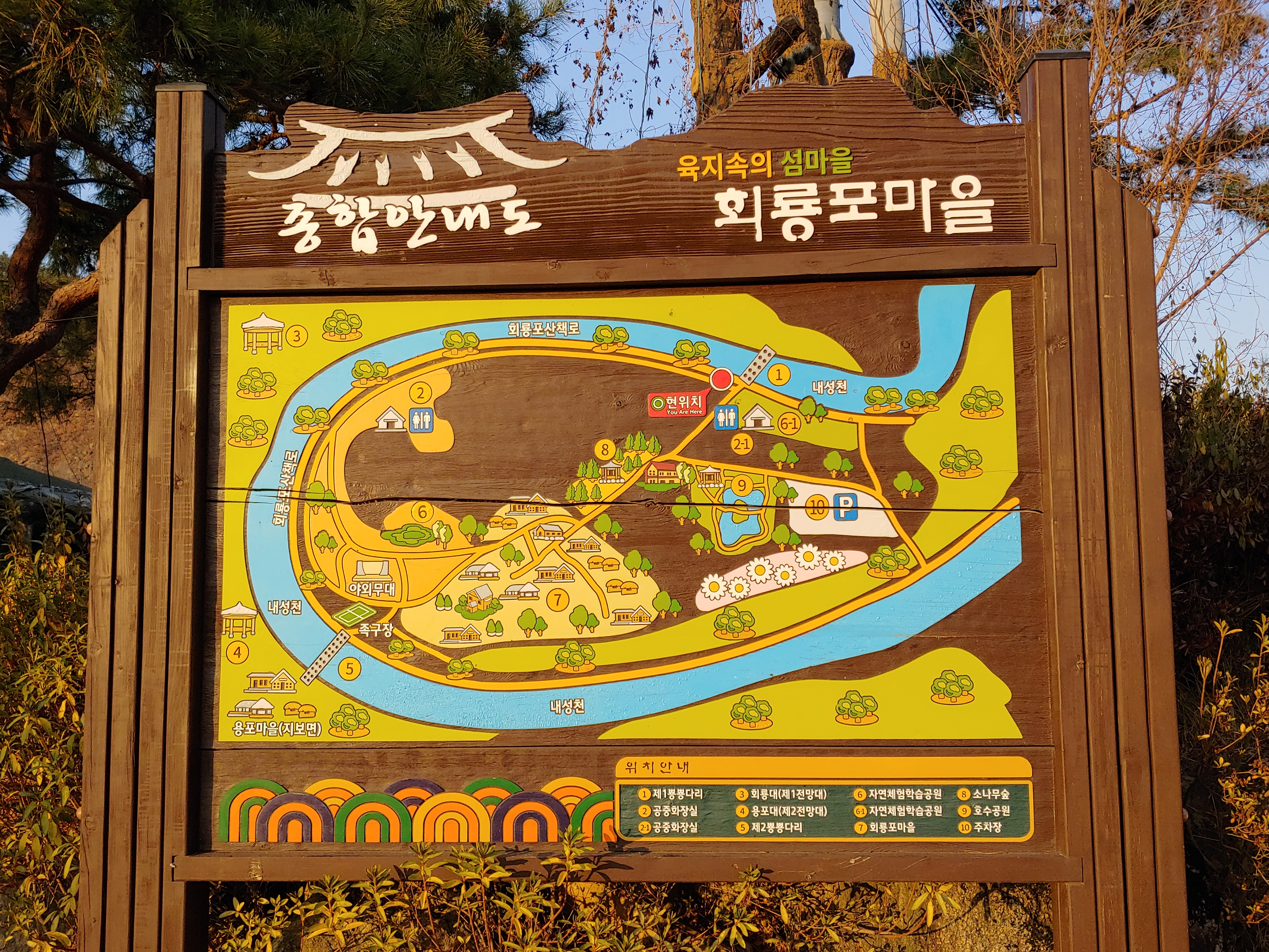 낙동강 지류인 내성천이 휘감아 도는 육지 속 섬마을로 마을을 360도 휘감아 돌아나가서 마을 주위에 고운 모래밭이 펼쳐지며 산과 강이 태극 모양의 조화를 이루는 곳이죠.