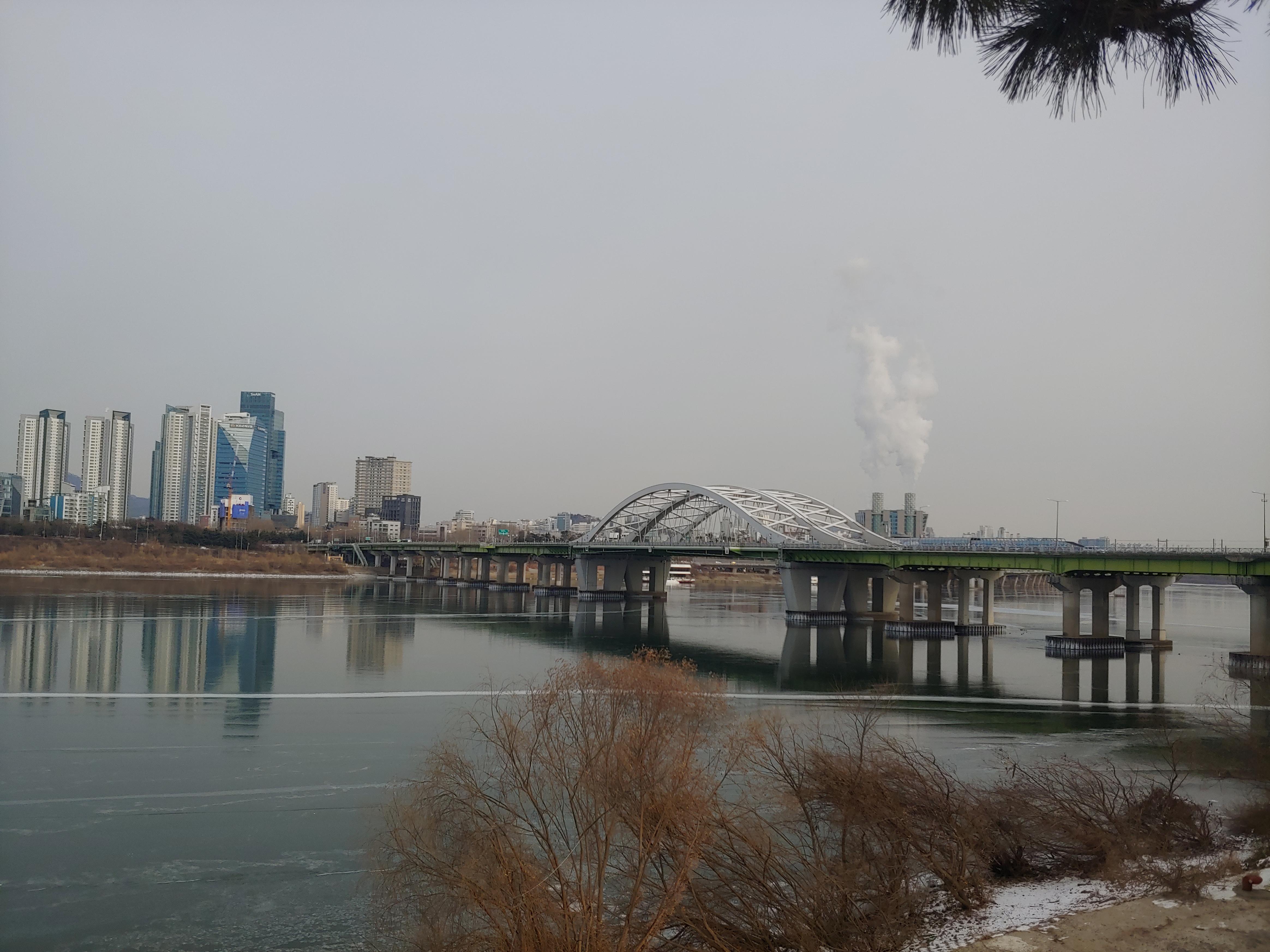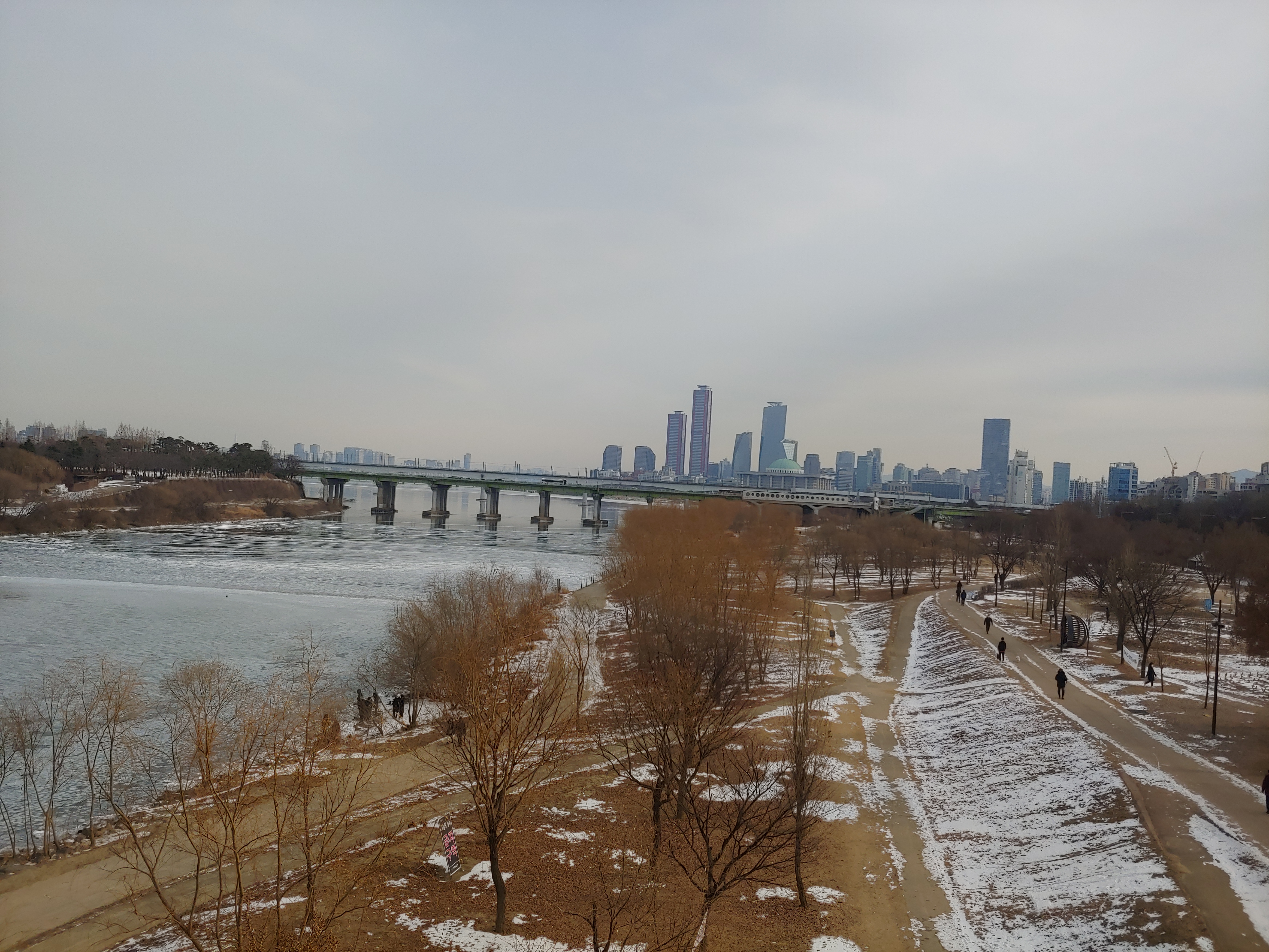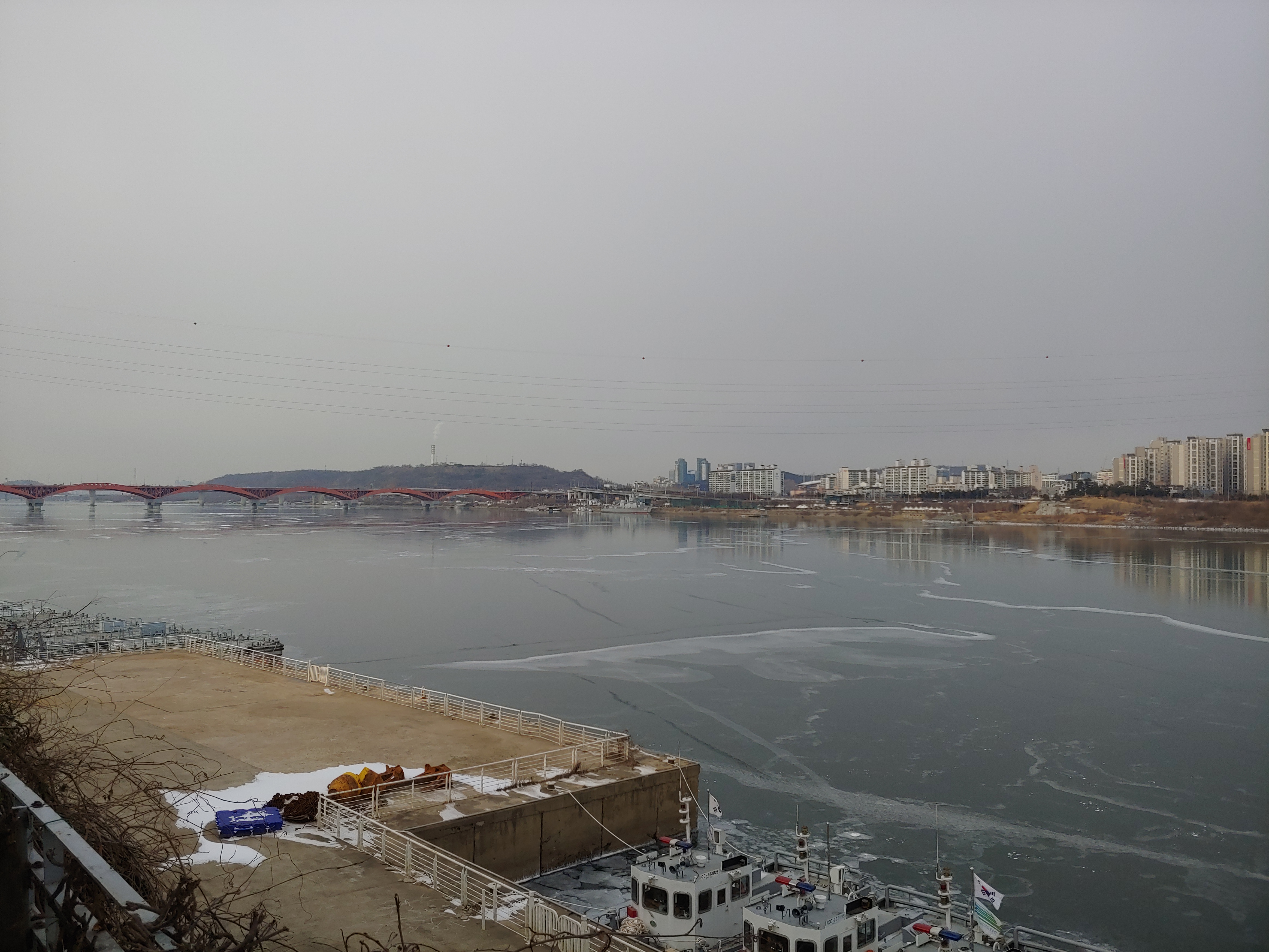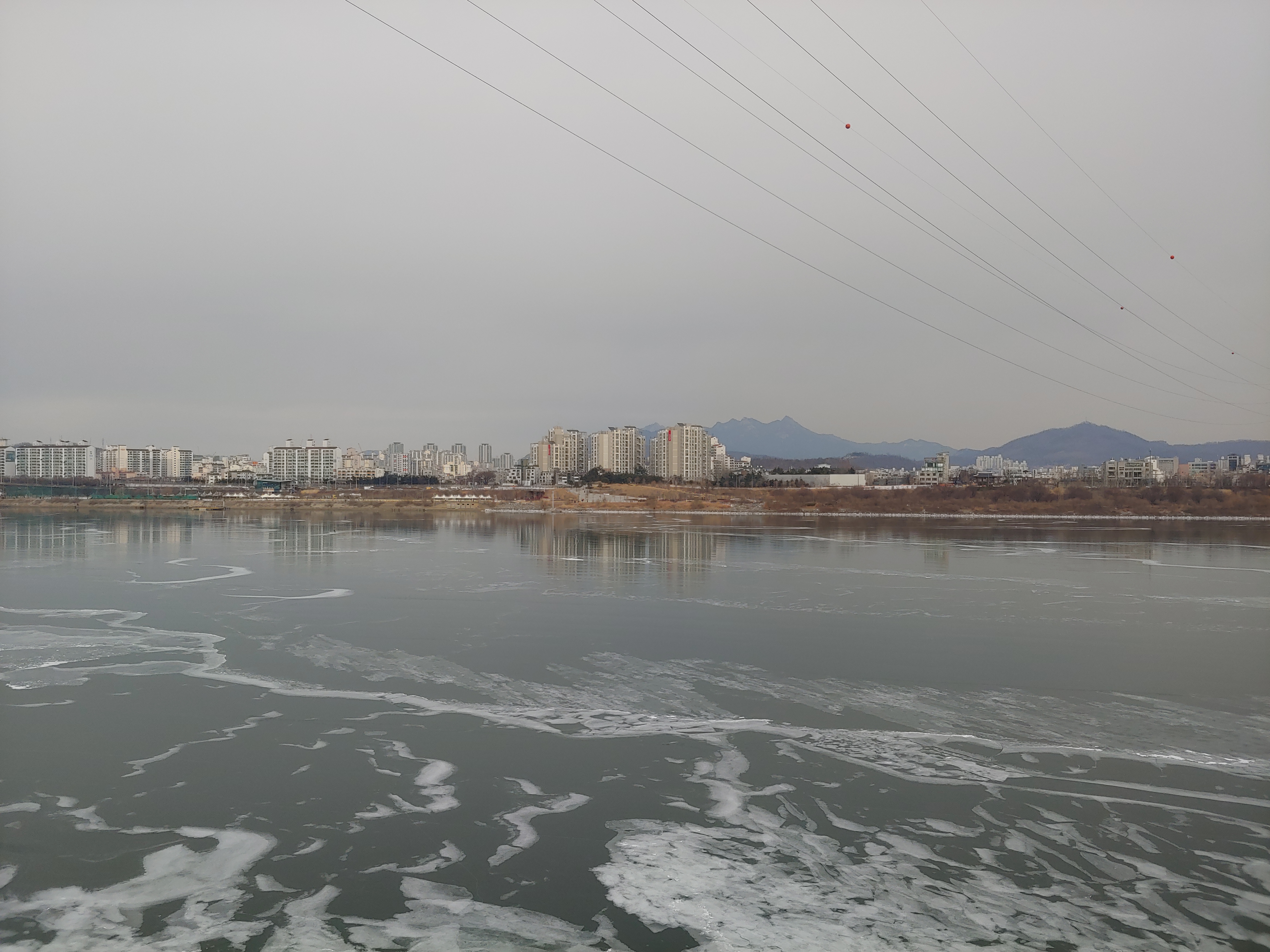 일주일 넘게 강추위가 계속되면서 한강 전체가 꽁꽁 얼어붙은 모습을 봤는데, 서울생활 10년이 넘은 기간에 처음이었네요.