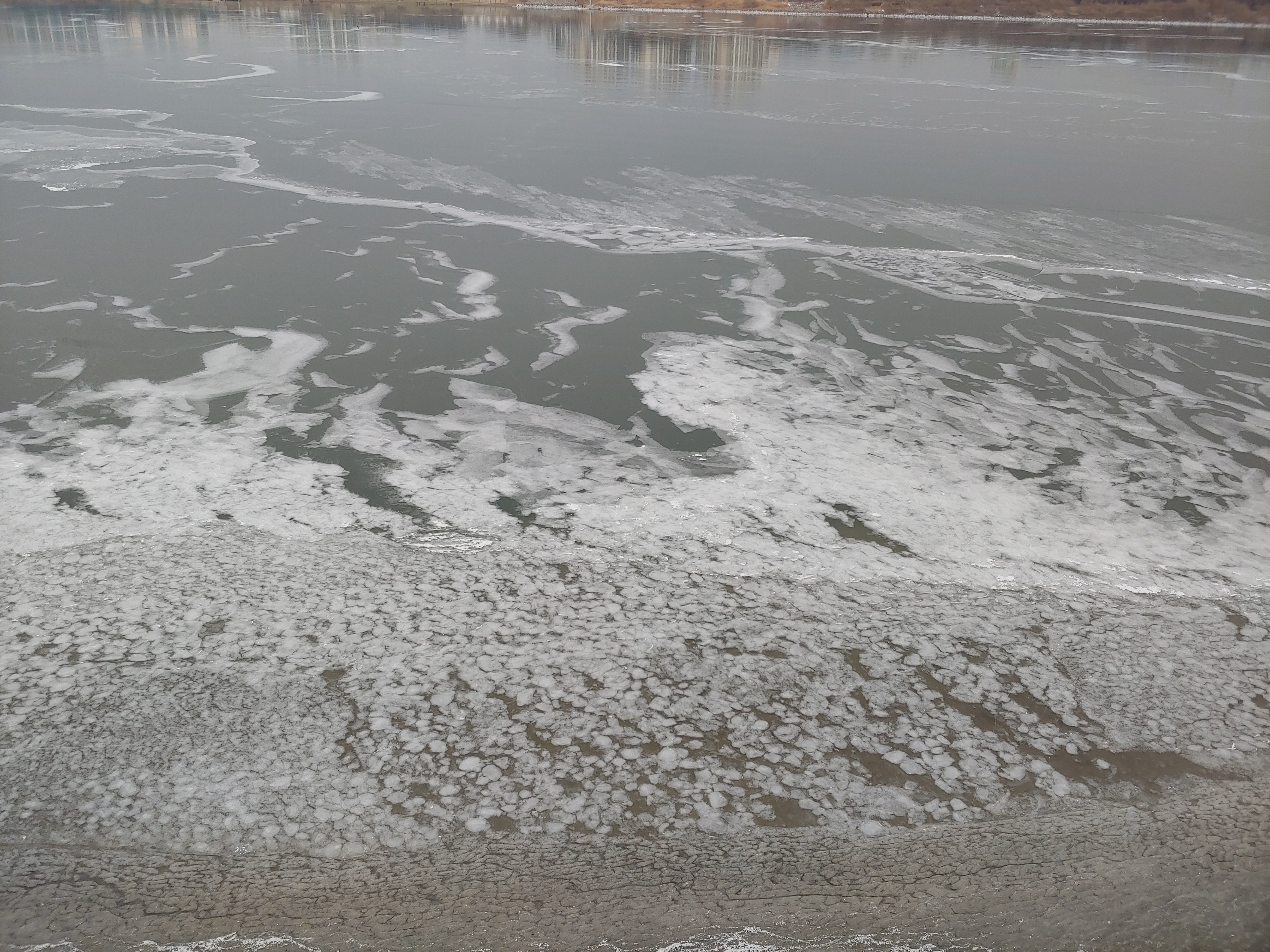 살얼음이 아니라 들어가서 썰매를 타고 싶을 정도로 꽁꽁 얼어 있습니다.