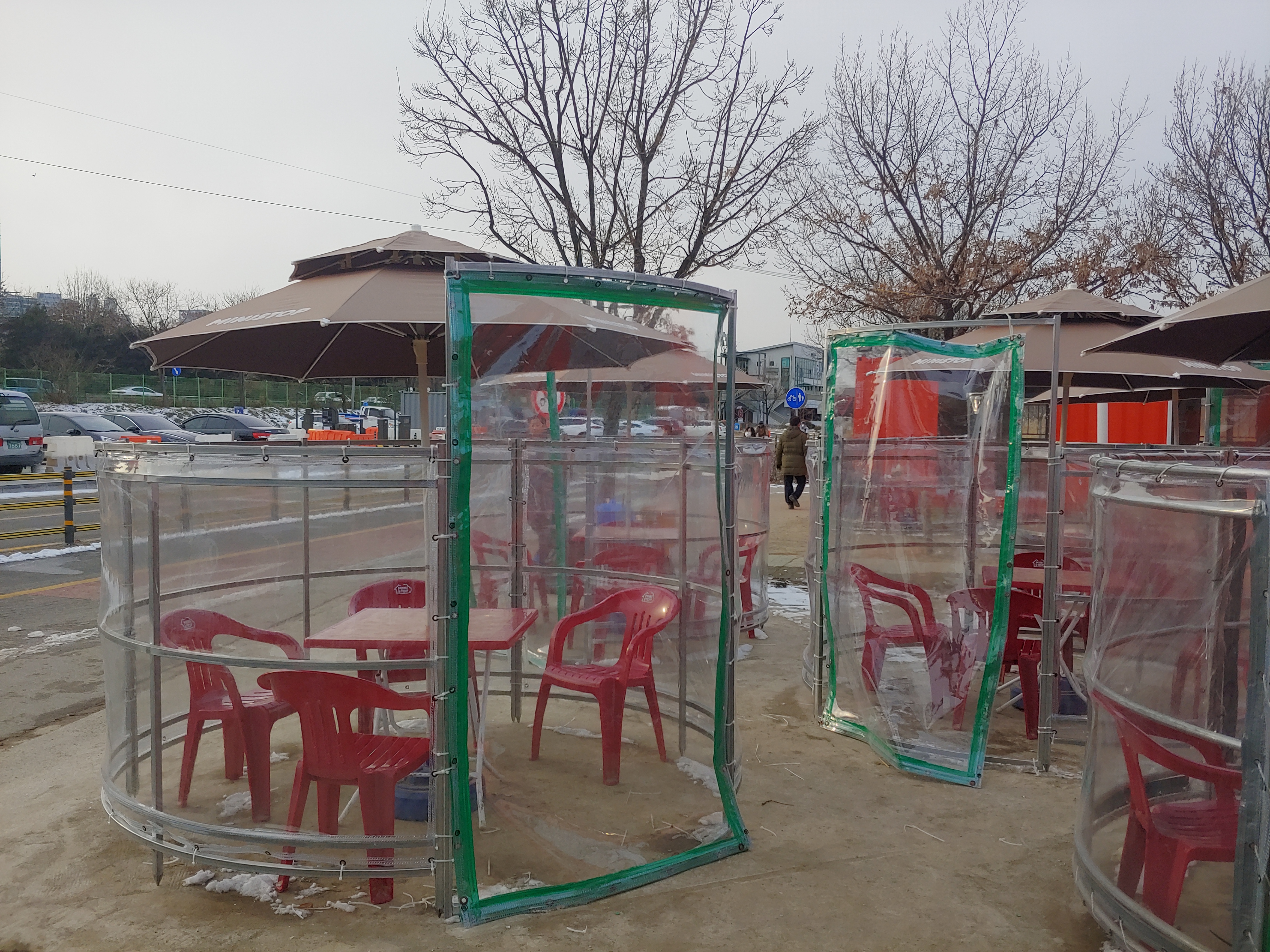 4명이 한 팀으로 들어갈 수 있는 바람막이 야외테이블이네요.