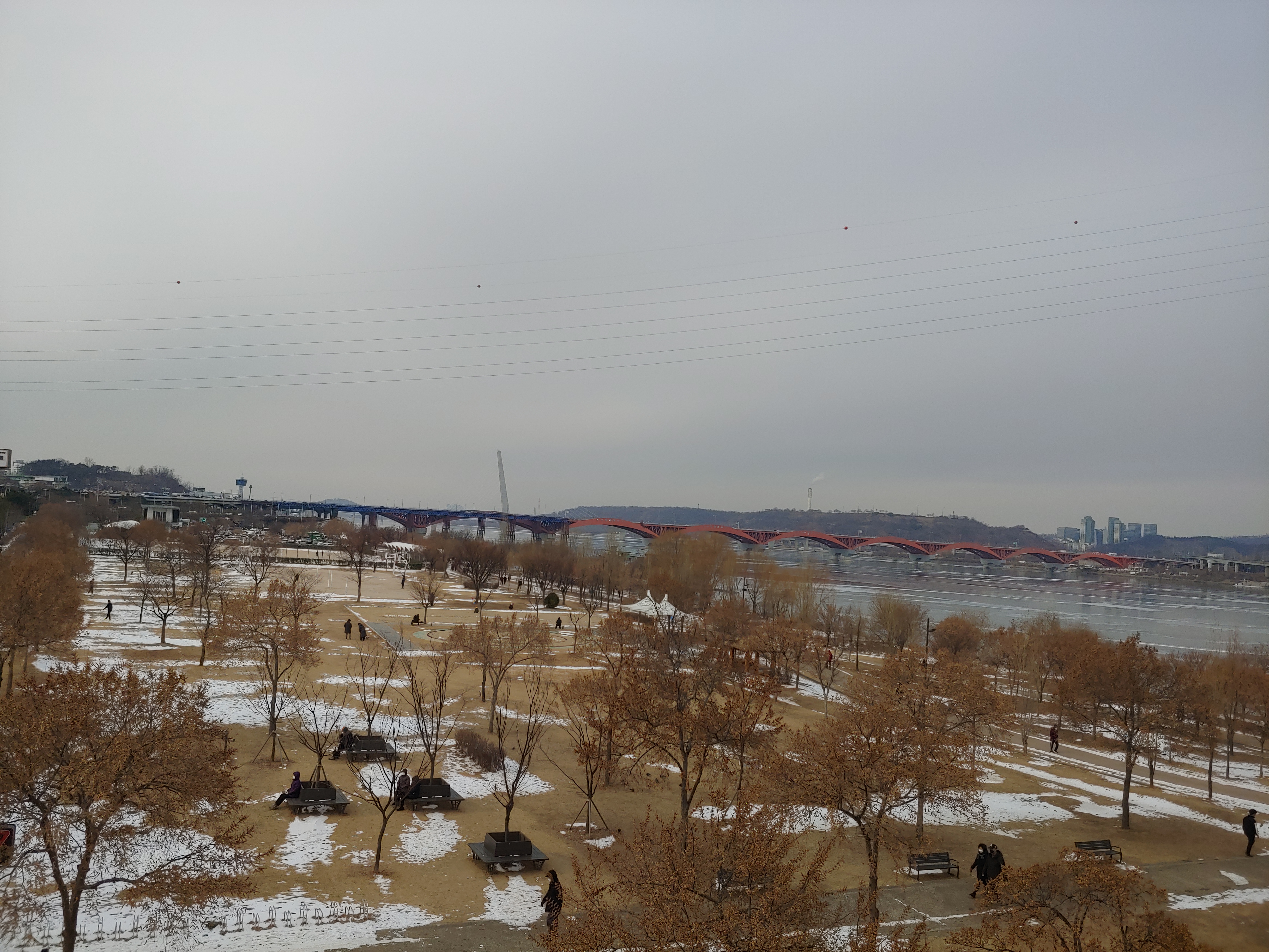 사진으로 보는 것처럼 한강 전체가 모두 얼어 있습니다.