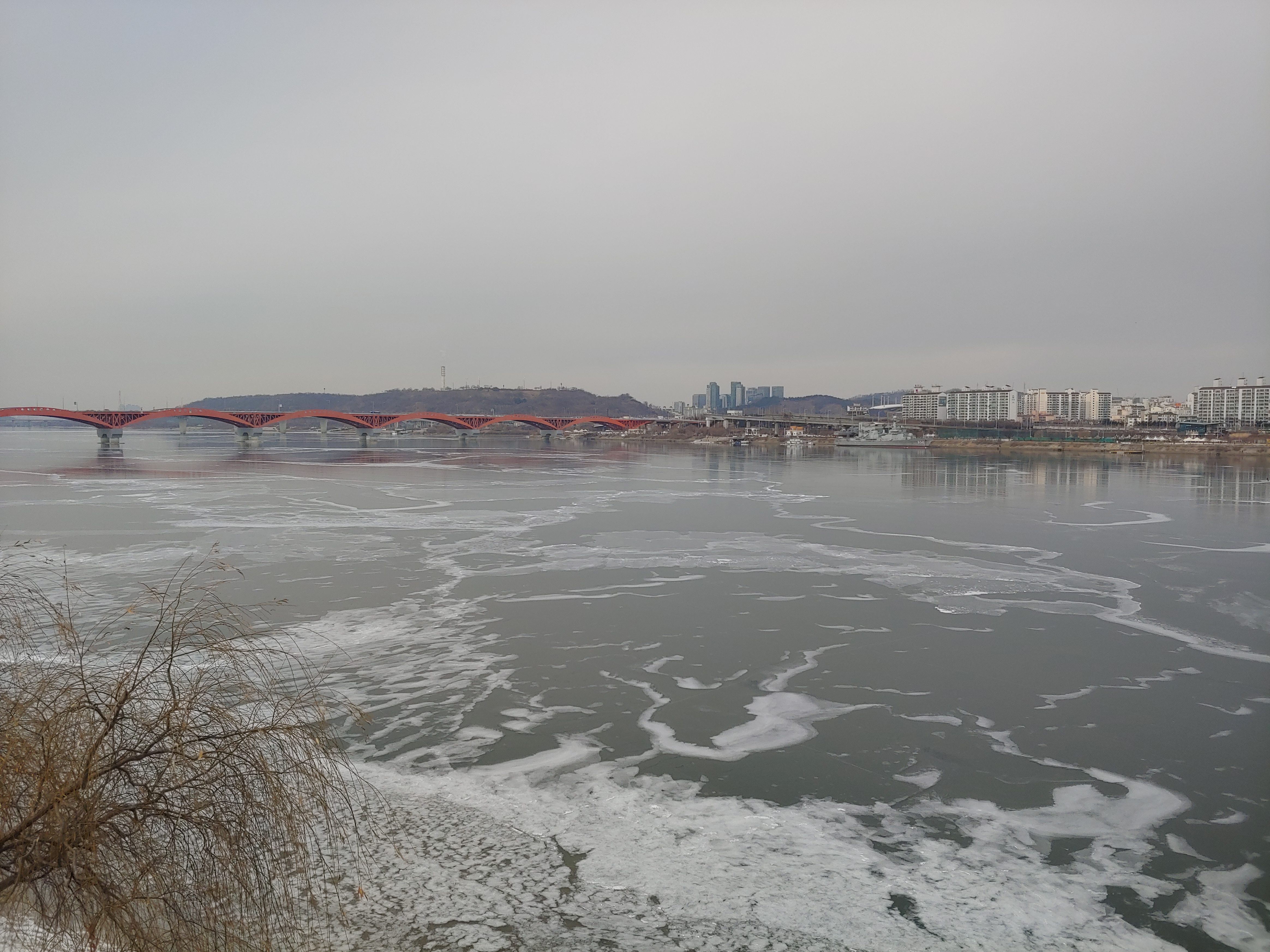선유도공원 나들이 가서 바라본 얼음으로 뒤덮인 한강 결빙 모습을 구경해 보시기 바랍니다.