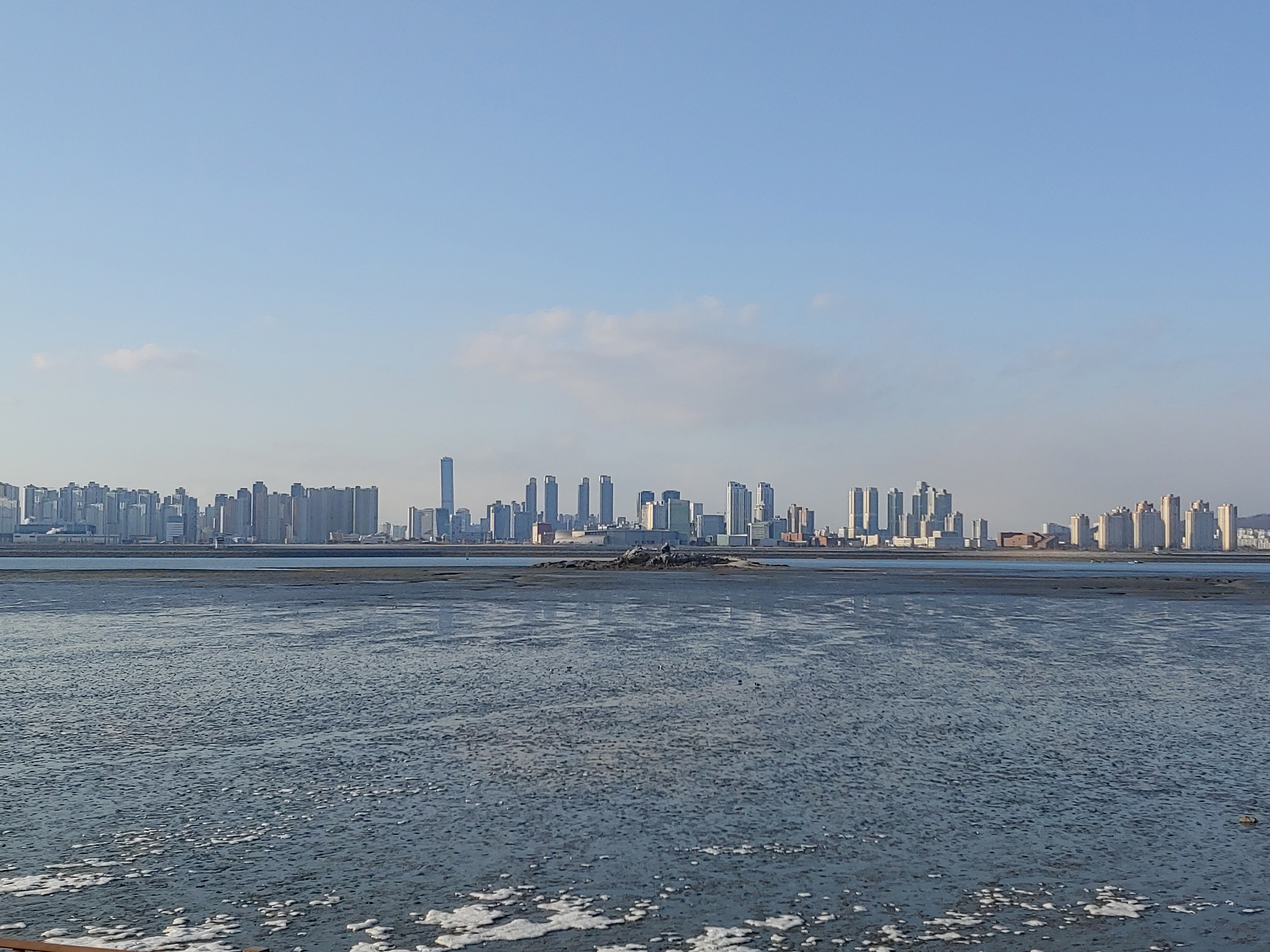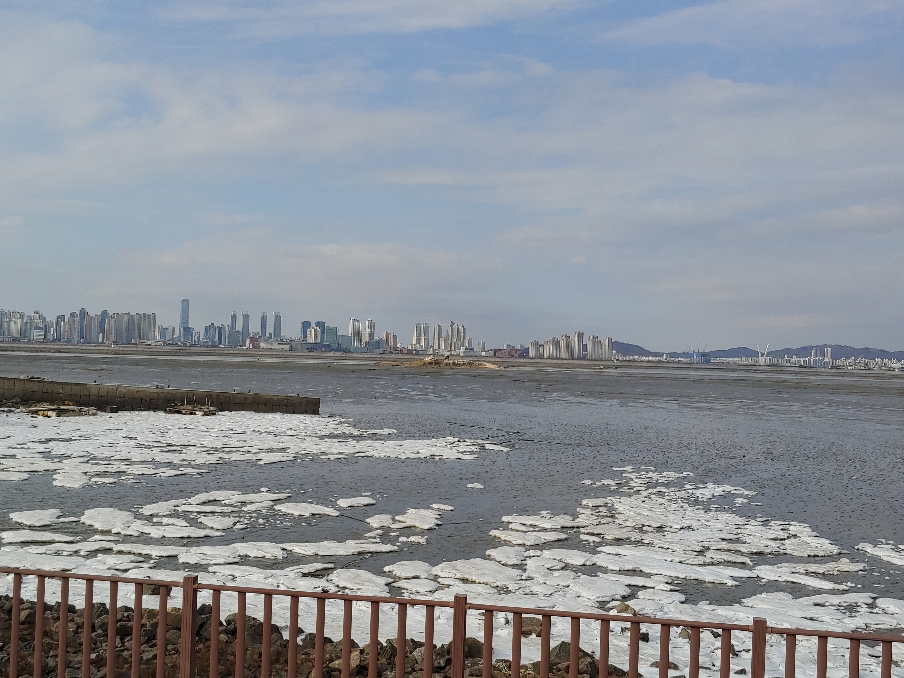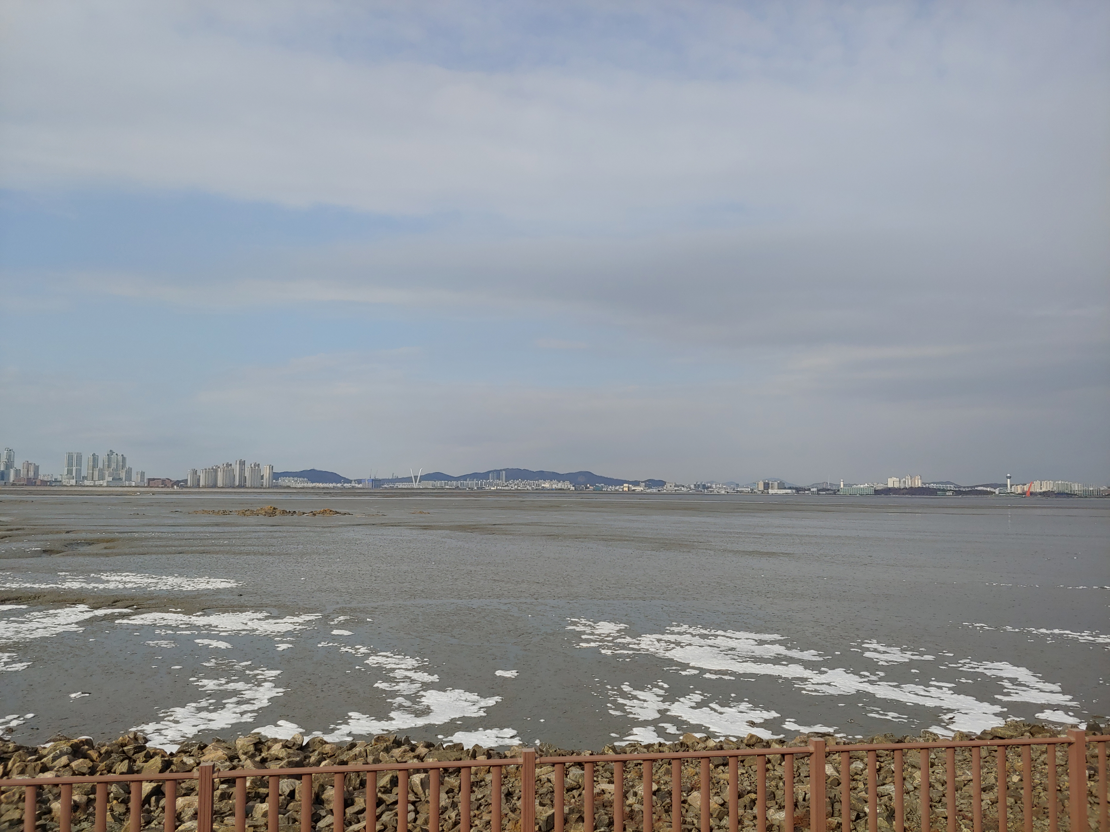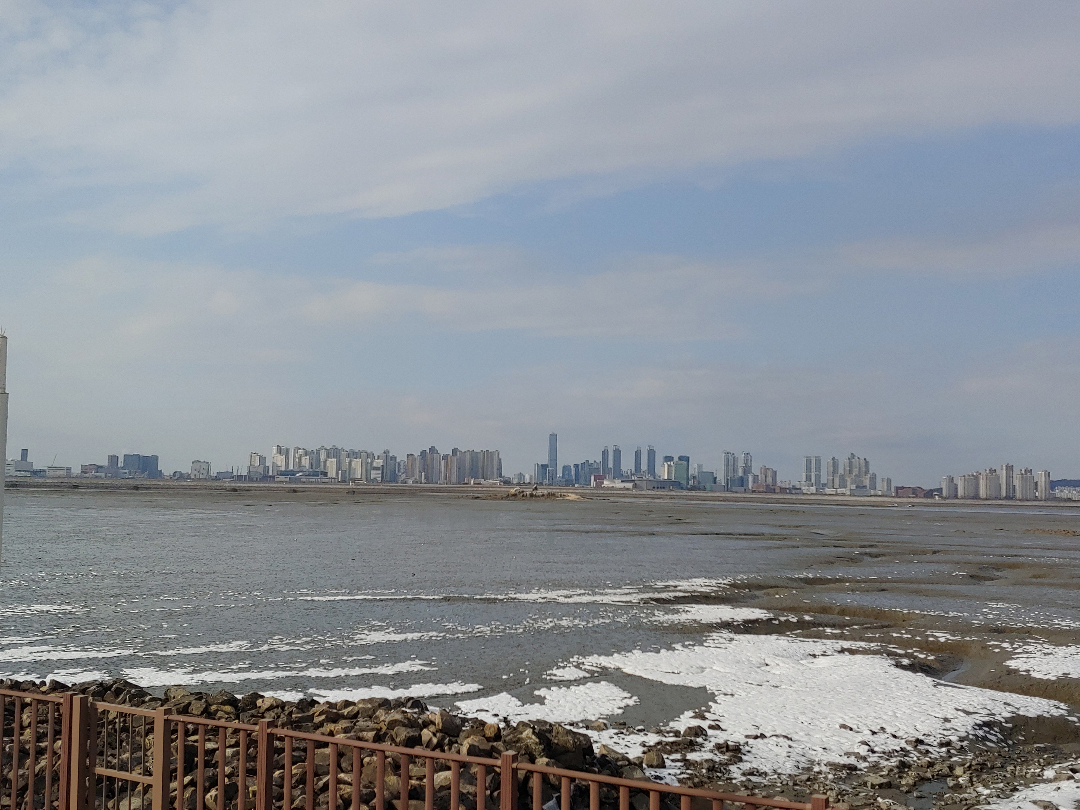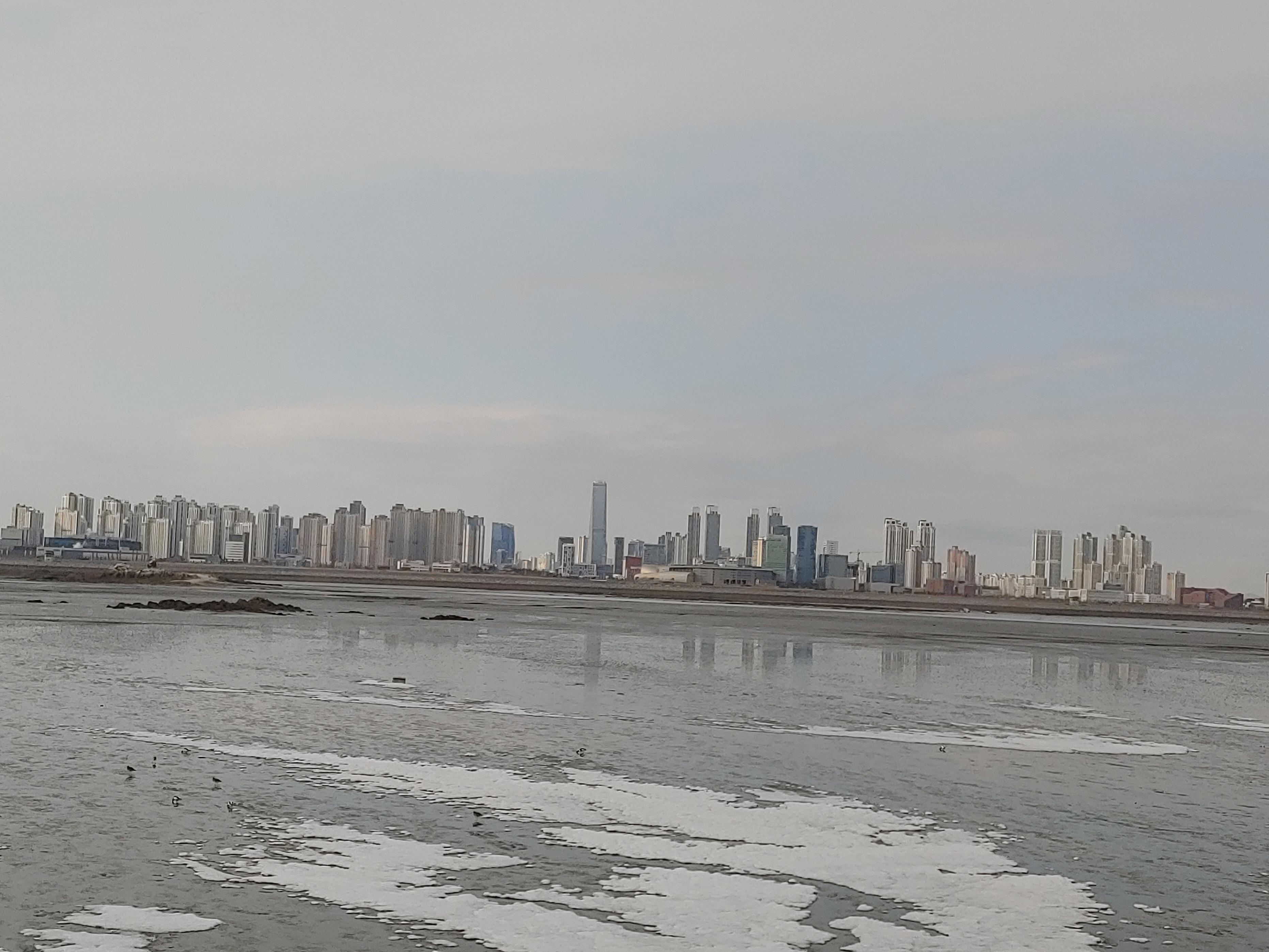 오이도 제방 위에서 바라 본 인천 송도 풍경입니다.