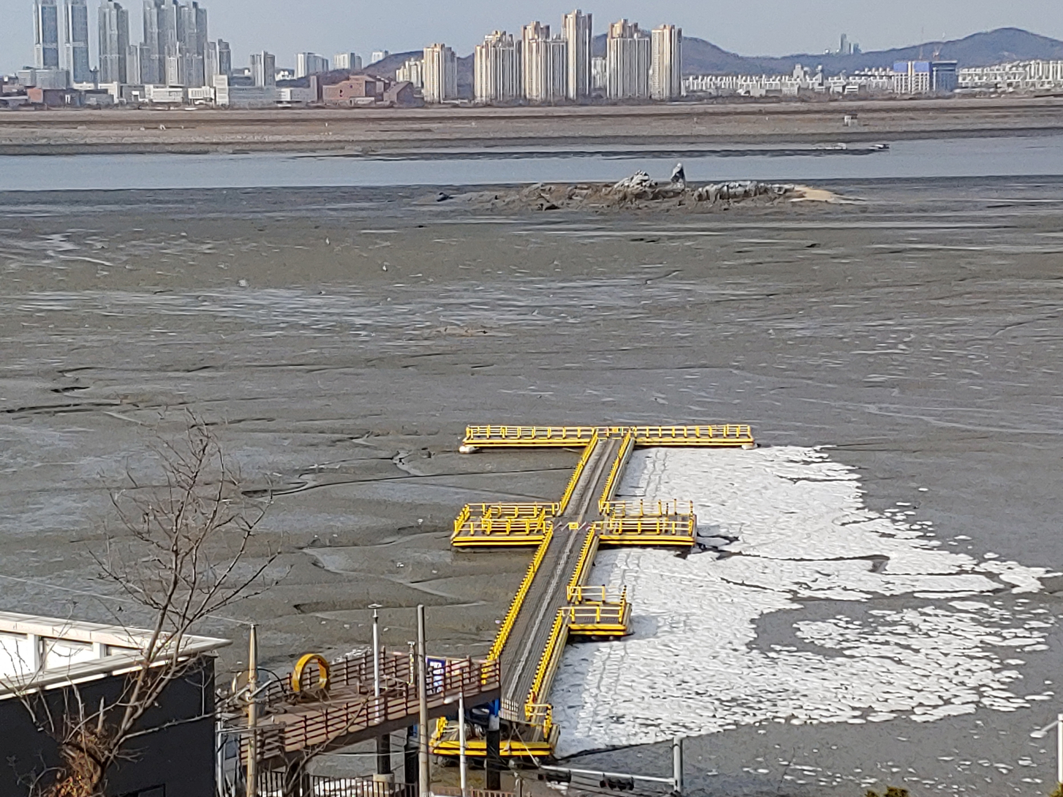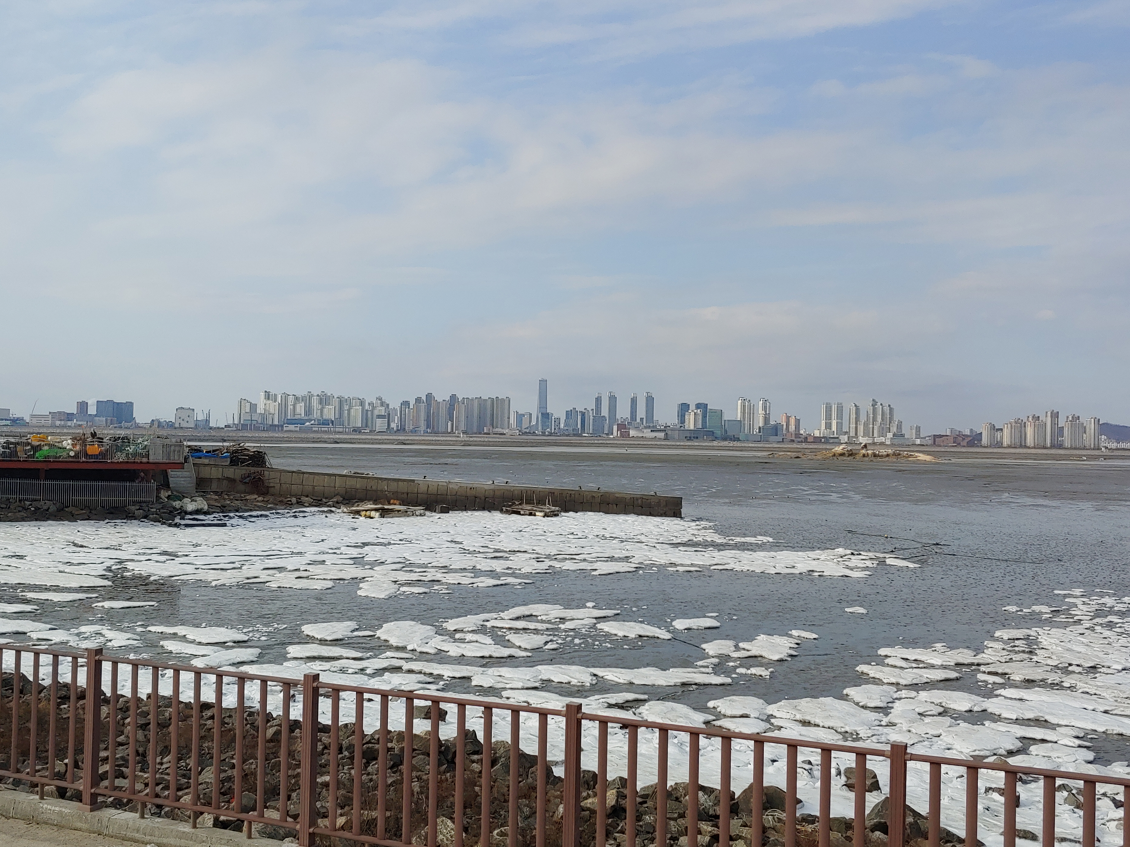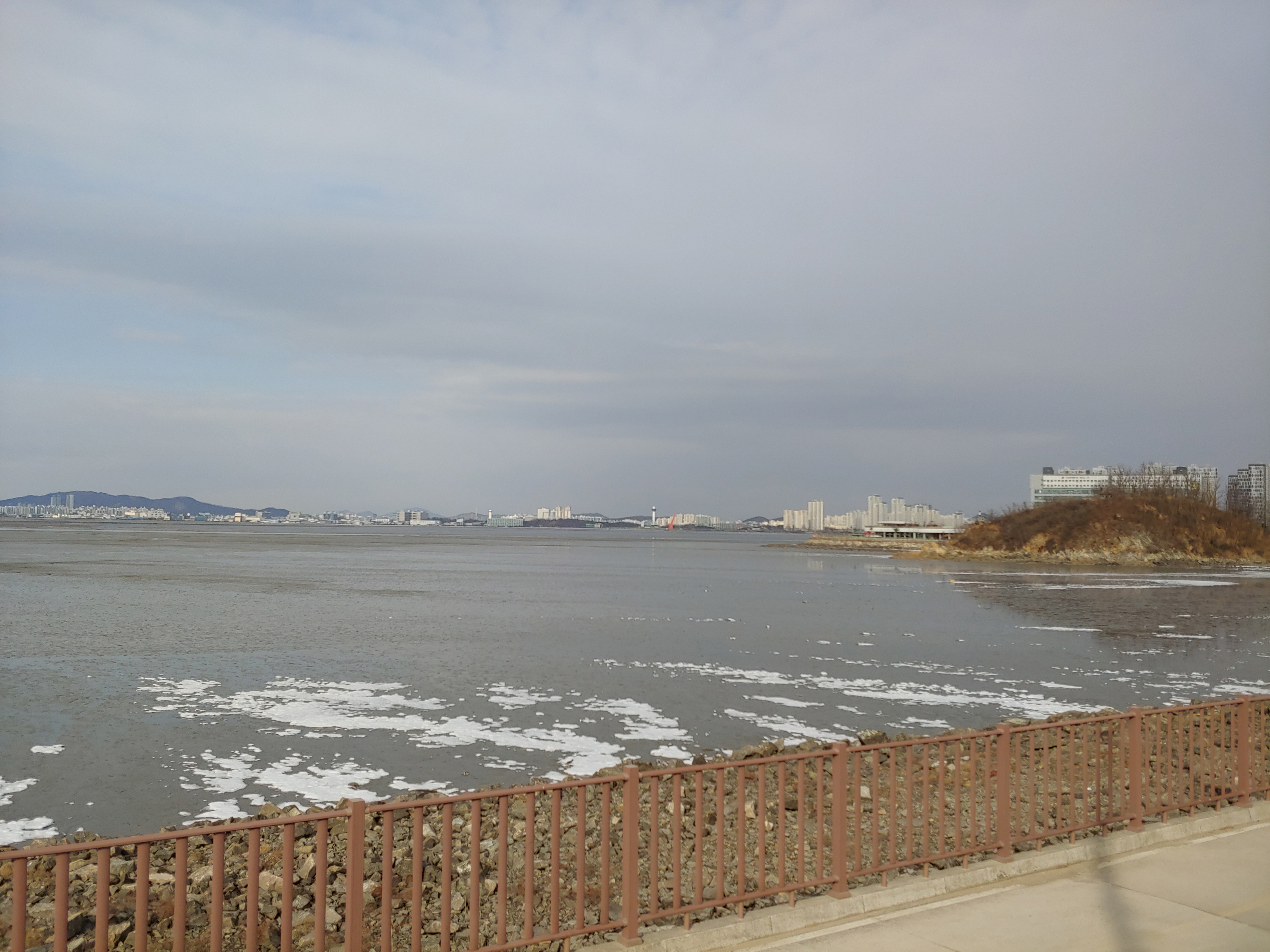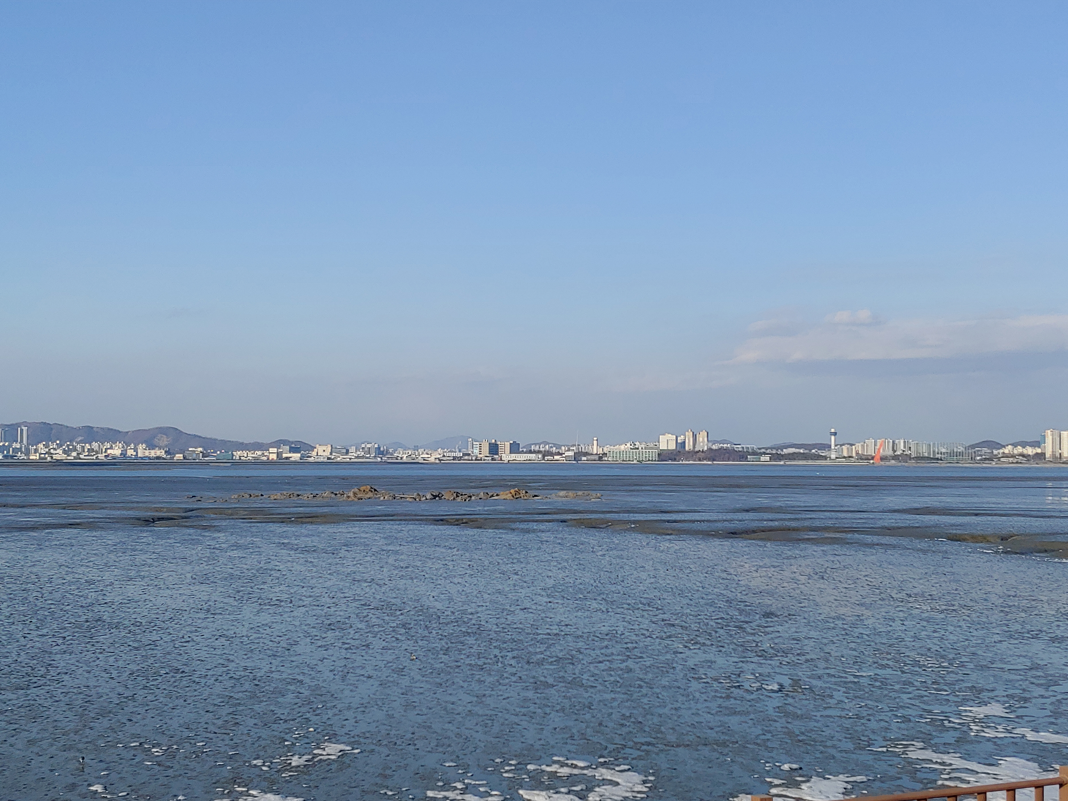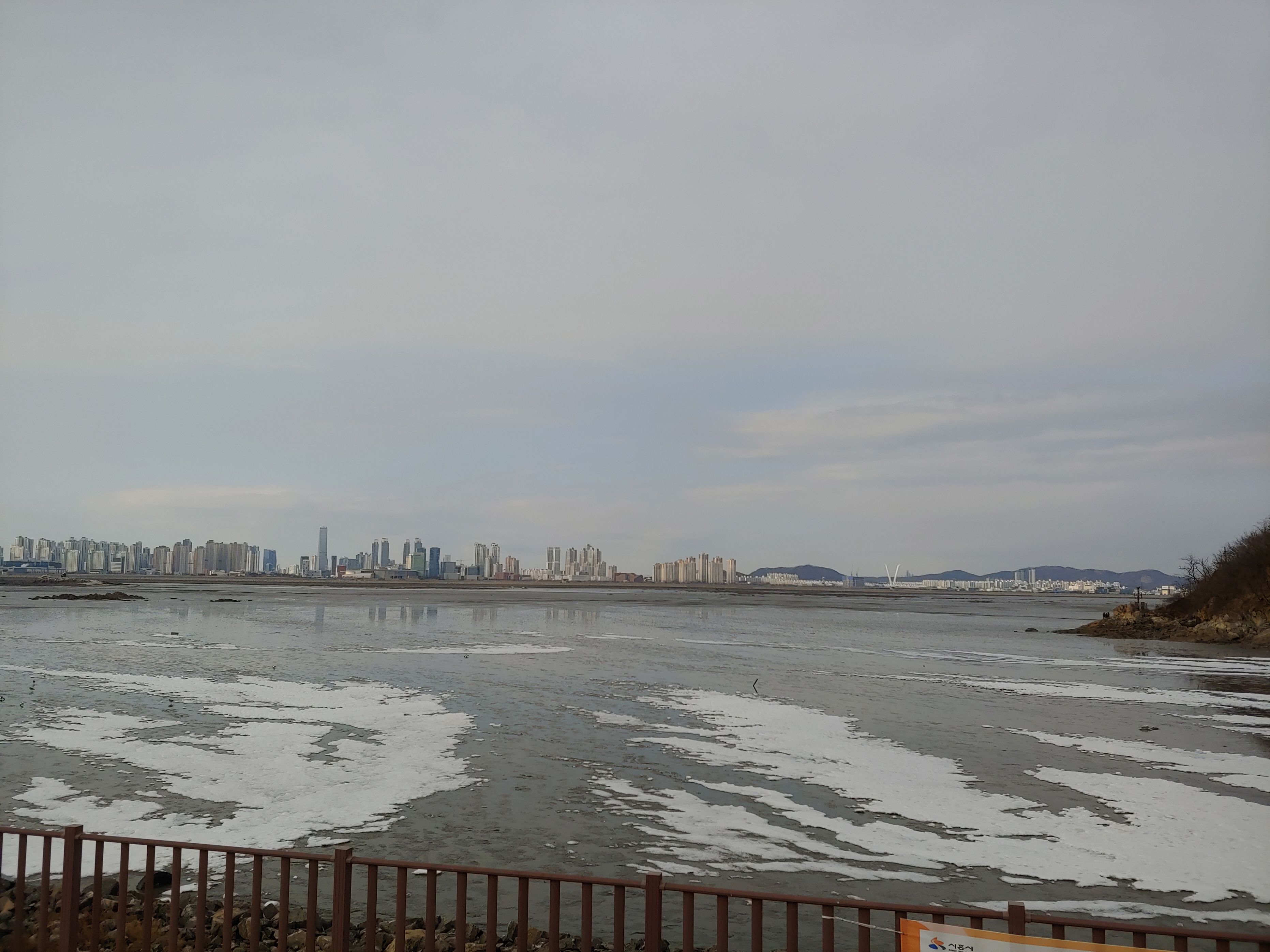 오이도 제방 위에서 바라 본 인천 송도 풍경입니다.