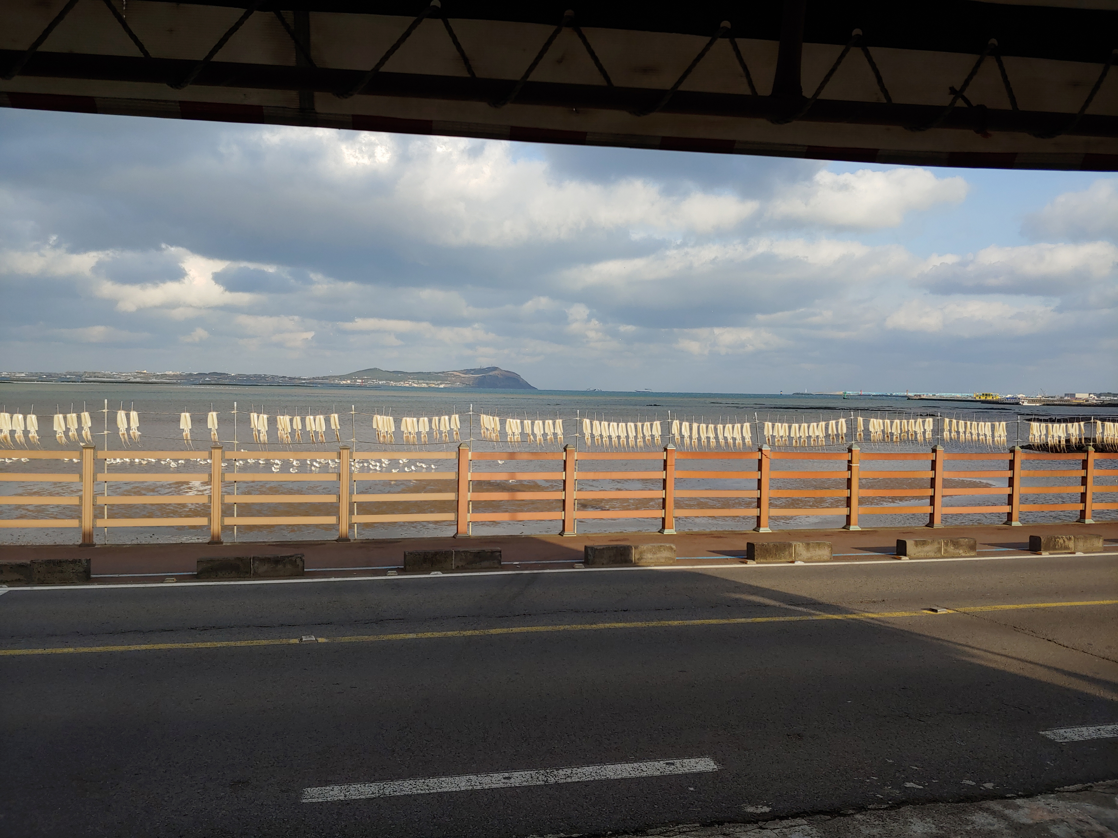 목화휴게소 편의점 앞에는 매일 오징어를 상쾌한 바닷바람에 말리고 거둬들이는 작업을 반복하고 있더군요.