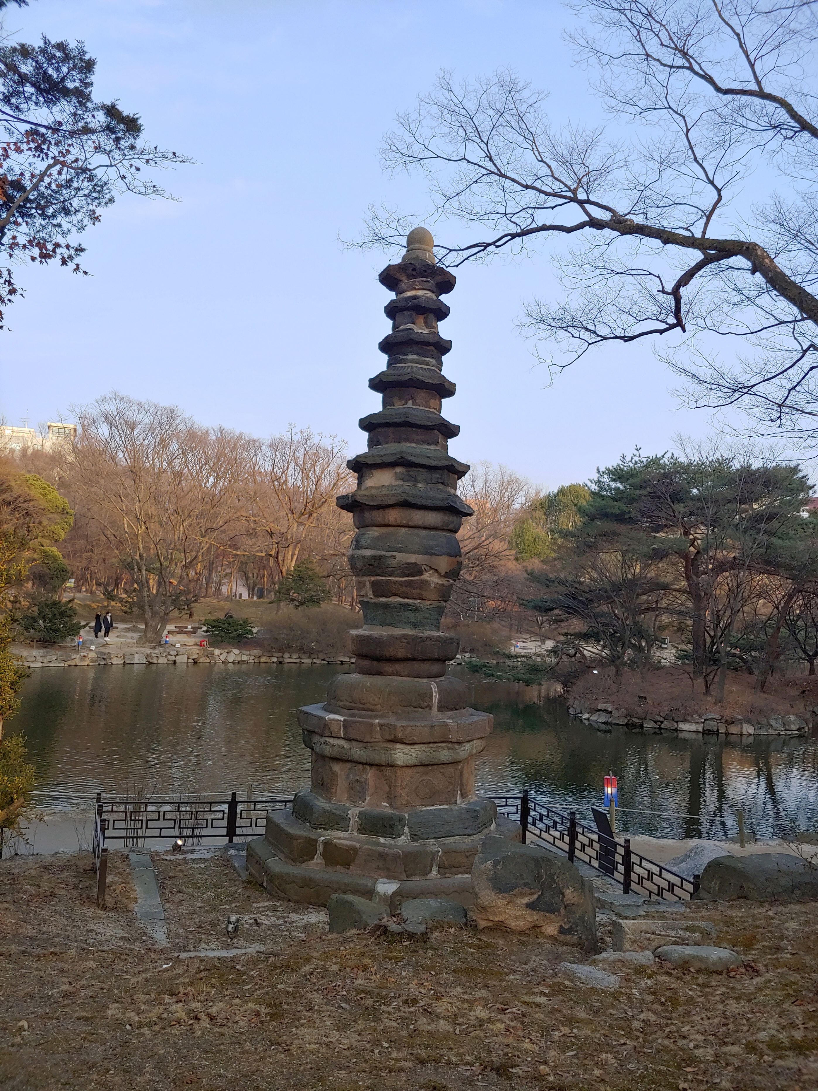 춘당지를 따라 왼쪽으로 걸어가다 보면 팔각칠층석탑이 보이는데요.