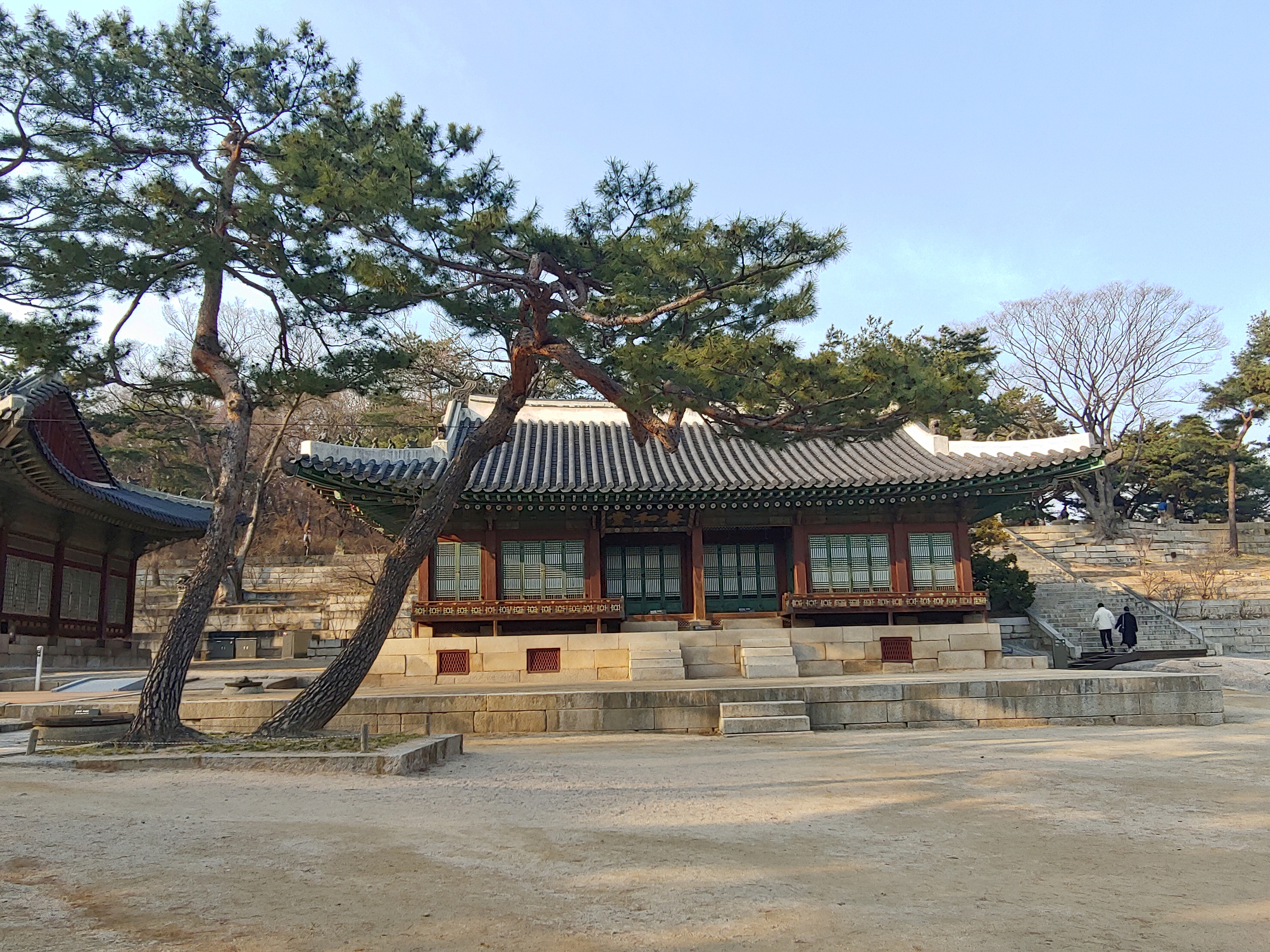 월대 위에 기단을 조성하고 그 위에 건물을 올렸으며, 연회나 의례를 열 수 있는 넓은 마당에는 얇고 넙적한 박석을 깔았습니다.