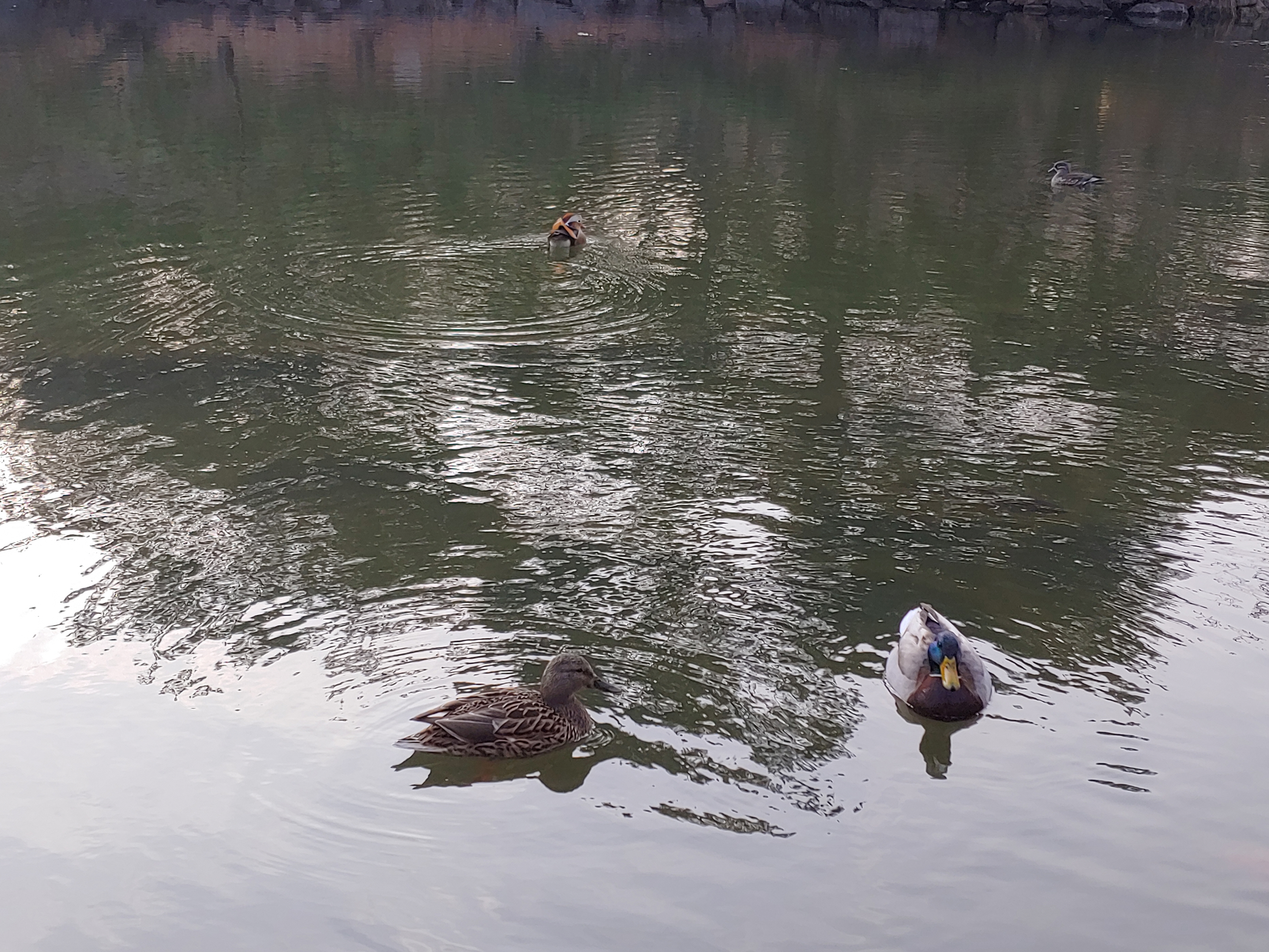 대춘당지에는 청둥오리와 원앙이 유유히 즐기고 있네요.