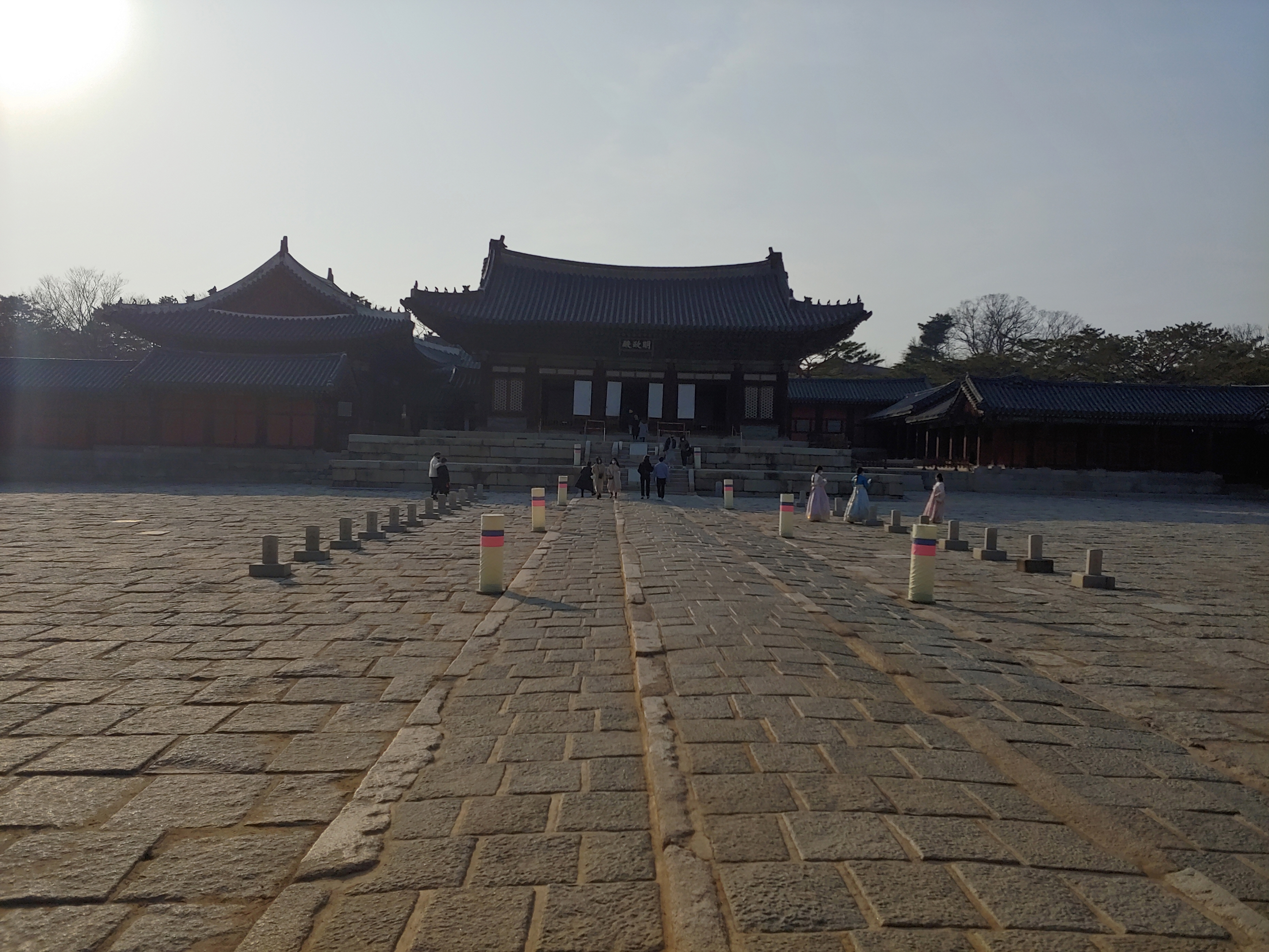 명정전에서 바라본 품계석이 있는 마당 모습입니다.