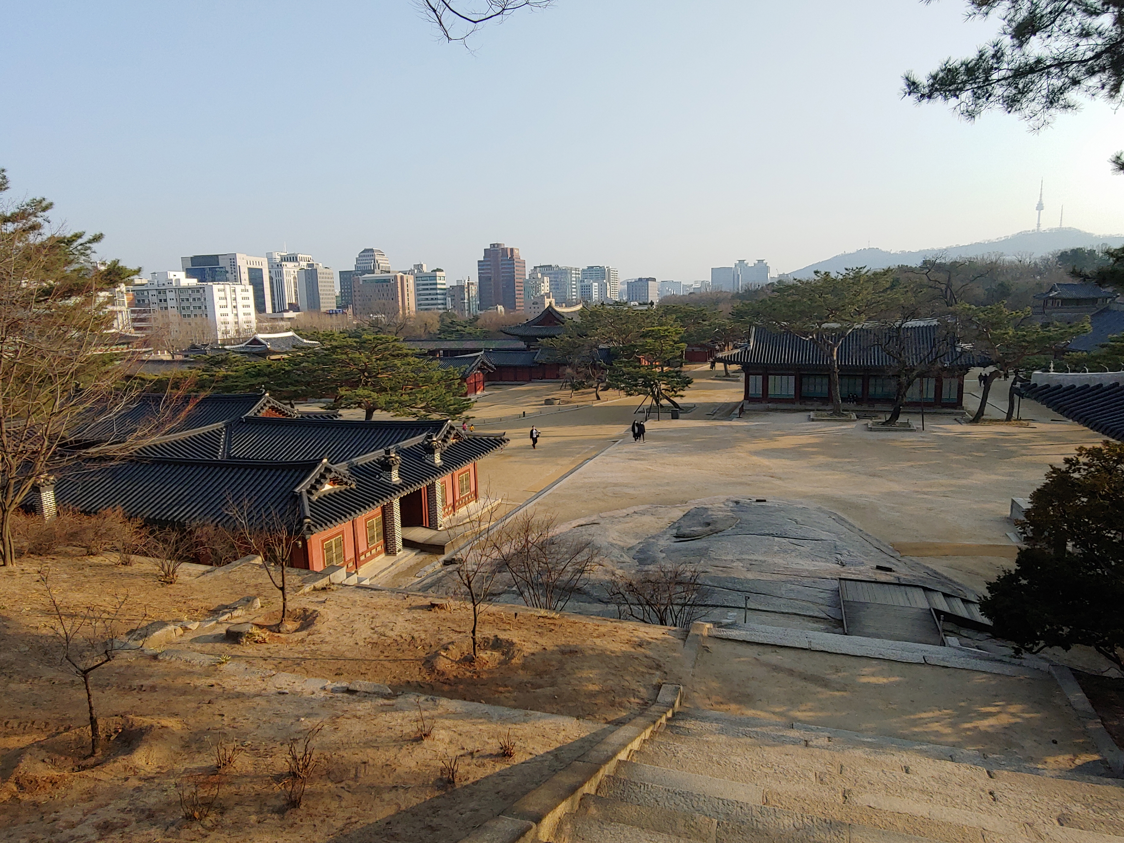 위쪽으로 계단을 따라 올라가면 자경전 터가 나오는데, 이곳에서 바라본 창경궁 모습입니다.
