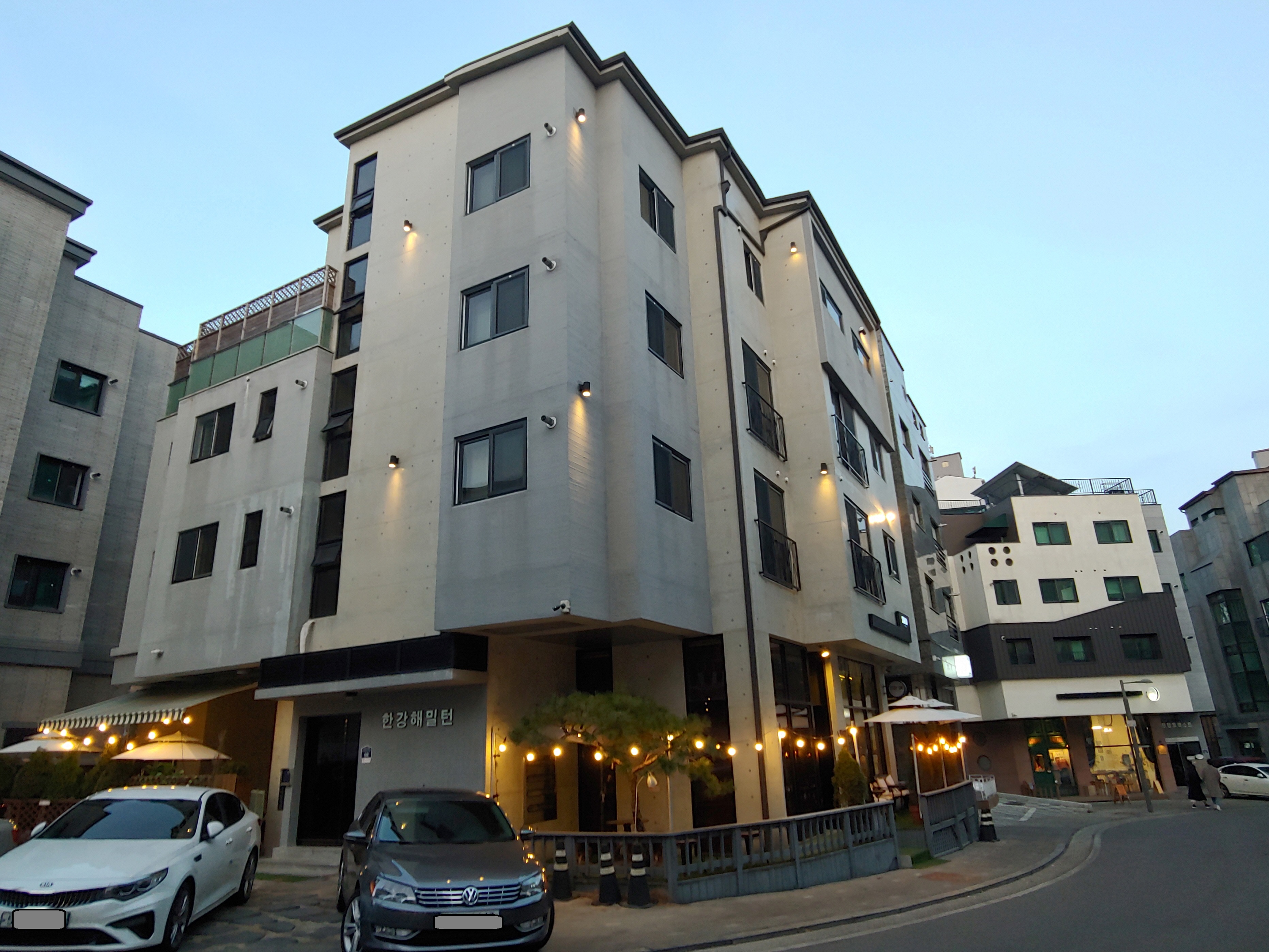 한강해밀턴이라고 적힌 건물 1층에 있는 스테이온(stay on) 카페입니다.