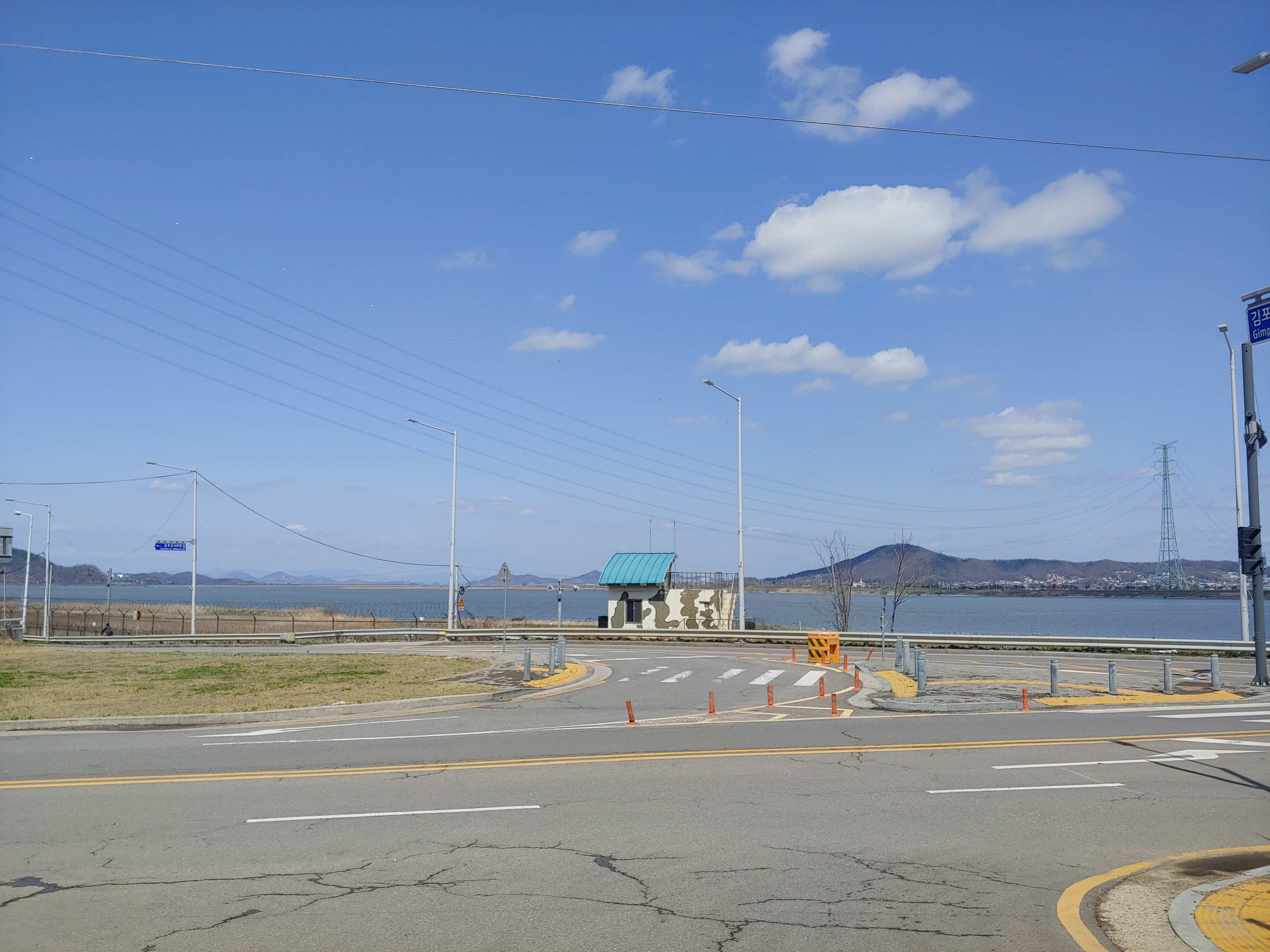 제방도로를 달리다가 강화도 방면으로 가다가 누산리 평야가 시작되는 지점의 좌측에 있습니다.